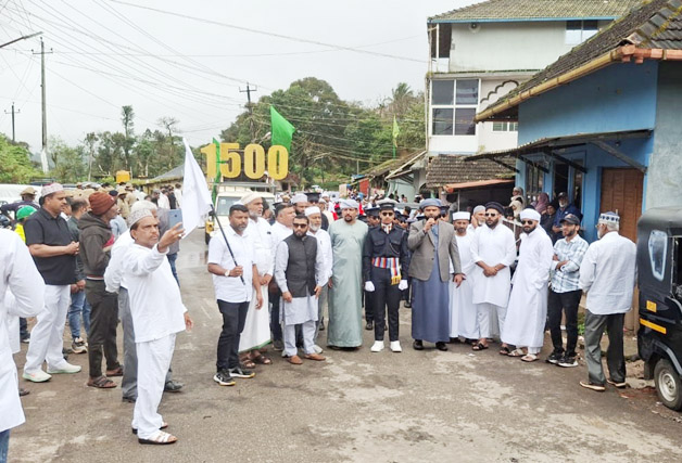 ಮಡಿಕೇರಿ ಸೆ.8 NEWS DESK : ಈದ್ ಮಿಲಾದ್ ಅಂಗವಾಗಿ ಮಡಿಕೇರಿಯ ಬದ್ರಿಯಾ ಜಮಾಅತ್ ಆಶ್ರಯದಲ್ಲಿ ನಗರದಲ್ಲಿ ಬೃಹತ್ ಮಿಲಾದ್ ರ್ಯಾಲಿ ನಡೆಯಿತು. ನಗರದ ಗದ್ದುಗೆ ಬಳಿಯಿಂದ ಆರಂಭಗೊಂಡ ಜಾಥಾ ಹಳೆ ಖಾಸಗಿ ಬಸ್ ನಿಲ್ದಾಣದ ಮಾರ್ಗವಾಗಿ ತೆರಳಿ ಜಮಾಅತ್ ಸಭಾಂಗಣದಲ್ಲಿ ಮುಕ್ತಾಯಗೊಂಡಿತು. ಮೆರವಣಿಗೆಯಲ್ಲಿ ದಫ್ ಪ್ರದರ್ಶನ ನಡೆಯಿತು. ಜಿಲ್ಲೆಯ ವಿವಿಧೆಡೆಗಳಿಂದ ಸಾವಿರಾರು ಮಂದಿ ಭಾಗವಹಿಸಿ ಪ್ರವಾದಿ ಮಹಮ್ಮದ್ ಪೈಗಂಬರ್ ಅವರ ಶಾಂತಿ, ಸಂದೇಶಗಳನ್ನು ಸಾರಿದರು.