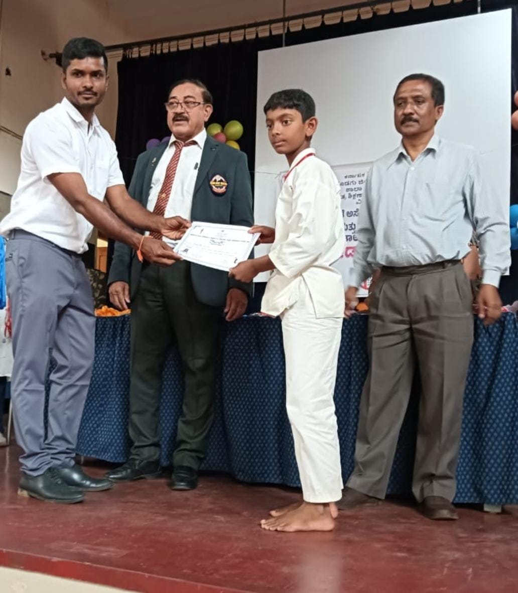 ವಿರಾಜಪೇಟೆ ಸೆ.10 NEWS DESK : ಕೊಡಗು ಜಿಲ್ಲಾ ಕರಾಟೆ ಅಸೋಸಿಯೇಷನ್ನ ಸಹಯೋಗದಲ್ಲಿ ಗೋಣಿಕೊಪ್ಪದ ಲಯನ್ಸ್ ಪ್ರಾಥಮಿಕ ಶಾಲೆಯಲ್ಲಿ ನಡೆದ ಪ್ರಾಥಮಿಕ ಹಾಗೂ ಪ್ರೌಢಶಾಲಾ ವಿದ್ಯಾರ್ಥಿಗಳ ತಾಲ್ಲೂಕು ಮಟ್ಟದ ಕರಾಟೆ ಕ್ರೀಡಾಕೂಟದಲ್ಲಿ ಅಮ್ಮತ್ತಿಯ ನೇತಾಜಿ ಆಂಗ್ಲ ಮಾಧ್ಯಮ ಶಾಲೆಯ 7ನೇ ತರಗತಿ ವಿದ್ಯಾರ್ಥಿ ವಿ.ಆರ್.ಆಯುಷ್ 40 ಕೆ.ಜಿ. ವಿಭಾಗದಲ್ಲಿ ದ್ವಿತೀಯ ಸ್ಥಾನ ಪಡೆದು ಬೆಳ್ಳಿ ಪದಕವನ್ನು ತನ್ನದಾಗಿಸಿಕೊಂಡಿದ್ದಾನೆ. ಸೆನ್ಸಾಯಿ ಕಿಶೋರ್ ಅವರ ಬಳಿ ತರಬೇತಿ ಪಡೆಯುತ್ತಿರುವ ಆಯುಷ್, ಹೊಸಕೋಟೆಯ ವಿ.ಬಿ.ರವಿ ಹಾಗೂ ಸುಮಾ ದಂಪತಿಗಳ ಪುತ್ರ.