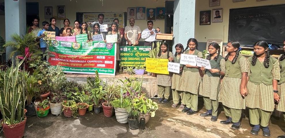 ಕುಶಾಲನಗರ, ಸೆ.22 NEWS DESK : ಕುಶಾಲನಗರ ತಾಲ್ಲೂಕಿನ ಕೂಡುಮಂಗಳೂರು(ಕೂಡ್ಲೂರು) ಸರ್ಕಾರಿ ಪ್ರೌಢಶಾಲೆಯಲ್ಲಿ ಸ್ವಚ್ಛ ಭಾರತ ಅಭಿಯಾನದಡಿ ಕೊಡಗು ಜಿಲ್ಲಾ ಪಂಚಾಯ್ತಿಯ ಸ್ವಚ್ಛತಾ ಅಭಿಯಾನ ಯೋಜನೆ, ಶಾಲಾ ಶಿಕ್ಷಣ ಇಲಾಖೆಯ ಸಹಯೋಗದೊಂದಿಗೆ ಶಾಲೆಯ