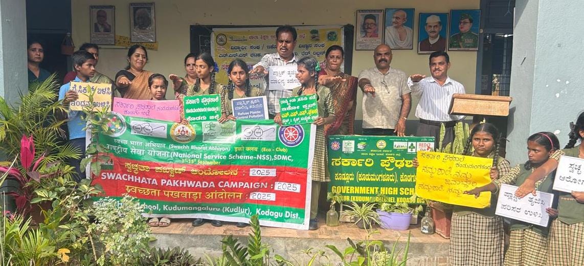 ರಾಷ್ಟ್ರೀಯ ಹಸಿರು ಪಡೆ ಇಕೋ ಕ್ಲಬ್, ರಾಷ್ಟ್ರೀಯ ಸೇವಾ ಯೋಜನೆ ಹಾಗೂ ಭಾರತ್ ಸ್ಕೌಟ್ಸ್ ಮತ್ತು ಗೈಡ್ಸ್ ಘಟಕದ ವತಿಯಿಂದ ಸ್ವಚ್ಚತಾ ಹೀ ಸೇವಾ*ಪಾಕ್ಷಿಕ *ಅಭಿಯಾನ 2025 ಕ್ಕೆ ಶ್ರಮದಾನದ ಮೂಲಕ ಚಾಲನೆ ನೀಡಲಾಯಿತು.  ಸ್ವಚ್ಛತಾ ಹೀ ಸೇವಾ ಅಭಿಯಾನ ಹಾಗೂ ಶ್ರಮದಾನದ ಮಹತ್ವ ಕುರಿತು ವಿದ್ಯಾರ್ಥಿಗಳಿಗೆ ಮಾಹಿತಿ ನೀಡಿ ಪ್ರತಿಜ್ಞಾ ವಿಧಿ ಬೋಧಿಸಿ ಮಾತನಾಡಿದ ಜಿಲ್ಲಾ ಪರಿಸರ ಜಾಗೃತಿ ಆಂದೋಲನದ ಸಂಚಾಲಕರೂ ಆದ ಶಾಲಾ ಮುಖ್ಯ ಶಿಕ್ಷಕ ಟಿ.ಜಿ.ಪ್ರೇಮಕುಮಾರ್ ‘ಸ್ವಚ್ಛ ಭಾರತ್ ಮಿಷನ್ ಮೂಲಕ ದೇಶದ ಜನರಲ್ಲಿ ಸ್ವಚ್ಛತೆ, ಆರೋಗ್ಯ, ನೈರ್ಮಲ್ಯ ಮತ್ತು ನೈರ್ಮಲ್ಯದ ಮಹತ್ವದ ಬಗ್ಗೆ ಅರಿವು ಮೂಡಿಸಲಾಗುತ್ತಿದೆ. ನಾವು ಸ್ವಚ್ಛ , ಸುಂದರ ಮತ್ತು ಹಸಿರು ಪರಿಸರಕ್ಕೆ ಆದ್ಯತೆ ನೀಡುವ ಮೂಲಕ ನಮ್ಮ ಸುತ್ತಲಿನ ಪರಿಸರ