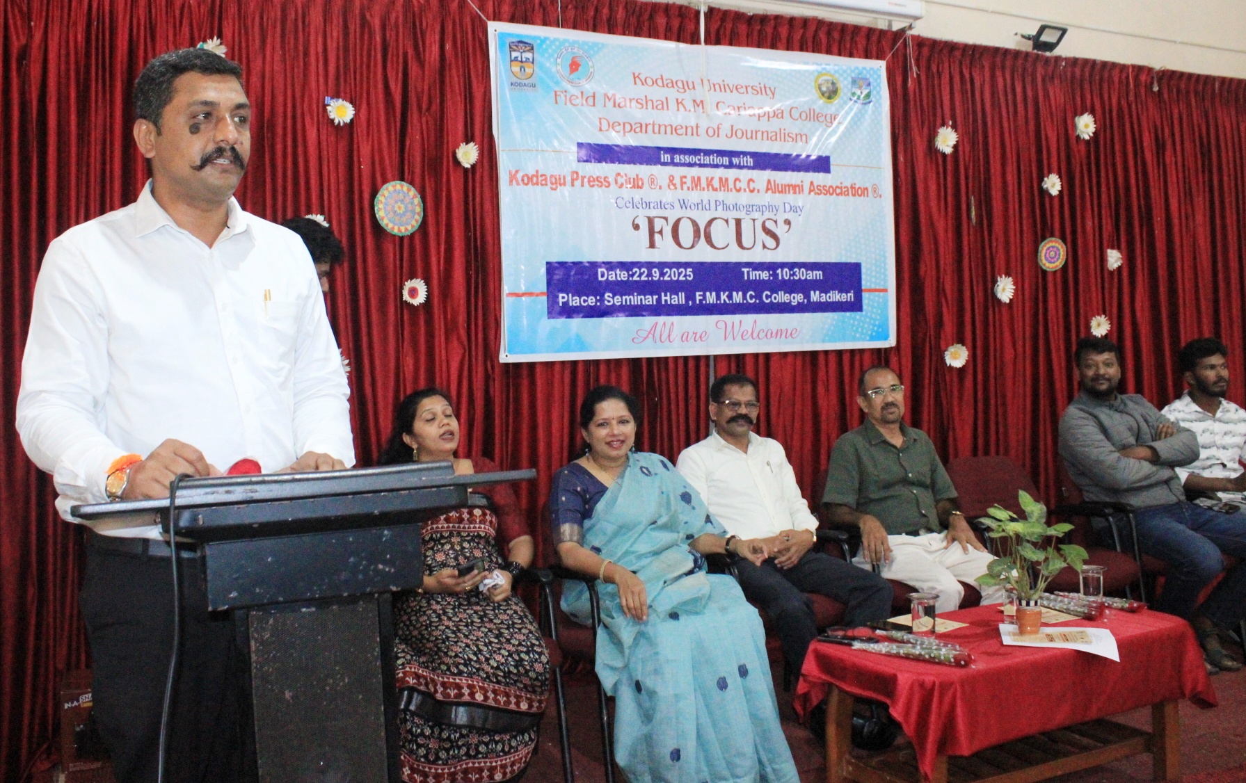 ಮಡಿಕೇರಿ ಸೆ.22 NEWS DESK : ಛಾಯಾಚಿತ್ರ ಎನ್ನುವುದು ಅದ್ಭುತ ಕಲೆ. ಇಂದೊಂದು ಭಾಷೆಯಾಗಿದ್ದು, ಸಾವಿರ ಪದಗಳಿಗೆ ಸಮಾನವಾಗಿದೆ ಎಂದು ಟೈಮ್ಸ್ ಆಫ್ ಇಂಡಿಯಾ ದಿನ ಪತ್ರಿಕೆಯ ಮಂಗಳೂರು ಆವೃತ್ತಿಯ ಖ್ಯಾತ ಛಾಯಾಚಿತ್ರ ಪತ್ರಕರ್ತ ರವಿ ಪೊಸವಣಿಕೆ ಹೇಳಿದರು. ಫೀಲ್ಡ್ ಮಾರ್ಷಲ್ ಕೆ.ಎಂ.ಕಾರ್ಯಪ್ಪ ಕಾಲೇಜು, ಪತ್ರಿಕೋದ್ಯಮ ವಿಭಾಗ, ಕಾಲೇಜಿನ ಹಳೆ ವಿದ್ಯಾರ್ಥಿ ಸಂಘ ಹಾಗೂ ಕೊಡಗು ಪ್ರೆಸ್ ಕ್ಲಬ್ ಸಹಯೋಗದಲ್ಲಿ ನಗರದ ಫೀಲ್ಡ್ ಮಾರ್ಷಲ್ ಕೆ.ಎಂ.ಕಾರ್ಯಪ್ಪ ಕಾಲೇಜಿನ ವಿಚಾರ ಸಂಕಿರಣ ಕೊಠಡಿಯಲ್ಲಿ ನಡೆದ ಛಾಯಾಚಿತ್ರ ಪತ್ರಿಕೋದ್ಯಮದ ವ್ಯಾಪ್ತಿ ಮತ್ತು ಉದ್ಯೋಗಾವಕಾಶ ಕುರಿತು ಉಪನ್ಯಾಸ ಕಾರ್ಯಕ್ರಮವನ್ನು ಉದ್ಘಾಟಿಸಿ, ಉಪನ್ಯಾಸ ನೀಡಿದರು. ಒಂದು ಛಾಯಾಚಿತ್ರದ ಮೂಲಕ ಸಾವಿರ ಕಥೆಯನ್ನು ಹೇಳಬಹುದು. ಇದು ಒಂದು ಕ್ಷಣದಲ್ಲಿ ಭಾವನೆಗಳು, ನೆನಪುಗಳು ಮತ್ತು ಸಂದೇಶಗಳನ್ನು ದೃಶ್ಯ ರೂಪದಲ್ಲಿ ಸೆರೆಹಿಡಿಯುತ್ತದೆ. ಇದು ವಿಜ್ಞಾನ ಮತ್ತು ಸೃಜನಾತ್ಮಕತೆಯನ್ನು ಒಳಗೊಂಡಿದ್ದು, ಪ್ರಕೃತಿ, ಜನರು ಮತ್ತು ಘಟನೆಗಳ ಸೌಂದರ್ಯವನ್ನು ಸೆರೆಹಿಡಿದು ನೋಡುಗರ ಹೃದಯವನ್ನು ಸ್ಪರ್ಶಿಸುತ್ತದೆ ಎಂದು ಹೇಳಿದರು. ಛಾಯಾಗ್ರಹಣವು ಕೇವಲ ಚಿತ್ರಗಳನ್ನು ಸೆರೆಹಿಡಿಯುವುದಲ್ಲ, ಅದು ಛಾಯಾಗ್ರಾಹಕನ ಭಾವನೆಗಳು ಮತ್ತು ಕಥೆಗಳನ್ನು ಒಳಗೊಂಡಿರುತ್ತದೆ. ವಿಜ್ಞಾನದ ತಂತ್ರಗಳನ್ನು ಮತ್ತು ಕಲಾತ್ಮಕ ಸೃಜನಶೀಲತೆಯನ್ನು ಬೆರೆಸಿ ಒಂದು ವಿಭಿನ್ನ ಕಲಾ ಪ್ರಕಾರವನ್ನು ಸೃಷ್ಟಿಸುತ್ತದೆ ಎಂದರು. ಪ್ರಸ್ತುತ ದಿನಗಳಲ್ಲಿ ಛಾಯಾಚಿತ್ರ ತೆಗೆಯುವುದನ್ನು ಪ್ರತಿಯೊಬ್ಬರು ಅರಿತಿರಬೇಕು ಮತ್ತು ಪ್ರತಿಯೊಬ್ಬರು ಛಾಯಾಗ್ರಹಕರಾಗಿದ್ದಾರೆ. ಉತ್ತಮ ಛಾಯಾಗ್ರಹಕರಾಗಬೇಕಾದರೆ ವಿಭಿನ್ನವಾಗಿ ಛಾಯಾಚಿತ್ರವನ್ನು ತೆಗೆಯಬೇಕು. ಆ ಛಾಯಾಚಿತ್ರ ಮಾತನಾಡುವಂತಿರಬೇಕು. ಛಾಯಾಗ್ರಾಹಕರಿಗೆ ಅಗಾಧ ತಾಳ್ಮೆ ಹಾಗೂ ಸಮಯ ಪ್ರಜ್ಞೆಯಿರಬೇಕು ಎಂದು ಸಲಹೆ ನೀಡಿದರು. ಛಾಯಾಗ್ರಹಣವು ಒಂದು ಅದ್ಭುತ ಕಲೆಯಾಗಿದೆ ಏಕೆಂದರೆ ಛಾಯಚಿತ್ರ ಒಂದು ಸಾಕ್ಷ್ಯಚಿತ್ರವಾಗಿ ಉಳಿದುಕೊಳ್ಳುತ್ತದೆ. ಫೋಟೋ ಜರ್ನಲಿಸ್ಟ್ ಗಳು ಇತಿಹಾಸಕಾರರು. ಫೋಟೋಗ್ರಫಿಯಲ್ಲಿ ಹಲವು ವಿಧಾನಗಳಿವೆ. ಹಿಂದಿನ ಕಾಲದಲ್ಲಿ ಕಲಾಕಾರರಿಂದ ಚಿತ್ರ ರಚನೆ ಮಾಡಿಸಲಾಗುತ್ತಿದ್ದು, ಆದರೆ ಇಂದು ಕೆಲವೇ ಕ್ಷಣಗಳಲ್ಲಿ ನೂರು ಚಿತ್ರಗಳನ್ನು ತೆಗೆಯಬಹುದು ಮತ್ತು ಅದನ್ನು ಪ್ರಪಂಚದ ಯಾವುದೇ ಮೂಲೆಗಳಿಗೆ ಬೇಕಾದರೂ ರವಾನೆ ಮಾಡಬಹುದು ಎಂದು ರವಿ ಪೊಸವಣಿಕೆ ಹೇಳಿದರು. ನೆರಳು ಮತ್ತು ಬೆಳಕಿನ ಸಂಯೋಜನೆ ಫೋಟೋಗ್ರಫಿ, ಪ್ರಪಂಚದಲ್ಲಿ ಮನುಷ್ಯನ ಕಣ್ಣುಗಳಿಗಿಂತ ಯಾವ ಕ್ಯಾಮವರವು ಇಲ್ಲ. ಕಣ್ಣುಗಳು ಬಣ್ಣಗಳನ್ನು ಗ್ರಹಿಸುವಷ್ಟು ಶಕ್ತಿಯನ್ನು ಕ್ಯಾಮರಗಳು ಹೊಂದಿಲ್ಲ ಎಂದರು. ಫೋಟೋ ಜರ್ನಲಿಸ್ಟ್ ಗಳಿಗೆ ವಿಫುಲ ಅವಕಾಶಗಳಿದ್ದು, ಕೆಲವು ನೀತಿಗಳನ್ನು ಅನುಸರಿಸುವ ಅಗತ್ಯದೆ. ಪ್ರಪಂಚದಲ್ಲಿ ತಂತ್ರಜ್ಞಾನ ಎಷ್ಟೇ ಮುಂದುವರೆದರೂ ಮನುಷ್ಯನನ್ನು ಬದಲಿ ಮಾಡಲು ಸಾಧ್ಯವಿಲ್ಲ ರವಿ ಪೊಸವಣಿಕೆ ಅಭಿಪ್ರಾಯಪಟ್ಟರು. ಇದೇ ಸಂದರ್ಭ ಛಾಯಾಗ್ರಾಹಣದ ವಿವಿಧ ತಂತ್ರಗಳ ಕುರಿತು ಮಾಹಿತಿಯನ್ನು ಪ್ರಾತ್ಯಕ್ಷಿಕೆಯ ಮೂಲಕ ನೀಡಿದರು. ಅಲ್ಲದೇ ವಿವಿಧ ಕ್ಯಾಮರಗಳಲ್ಲಿ ತಾವು ಸೆರೆ ಹಿಡಿದ ಛಾಯಾಚಿತ್ರಗಳನ್ನು ಪ್ರದರ್ಶಿಸಿದರು. ಕೊಡಗು ಪ್ರೆಸ್ಕ್ಲಬ್ ಮತ್ತು ಎಫ್.ಎಂ.ಕೆ.ಎಂ.ಸಿ ಕಾಲೇಜಿನ ಹಳೆ ವಿದ್ಯಾರ್ಥಿ ಸಂಘದ ಅಧ್ಯಕ್ಷರಾದ 