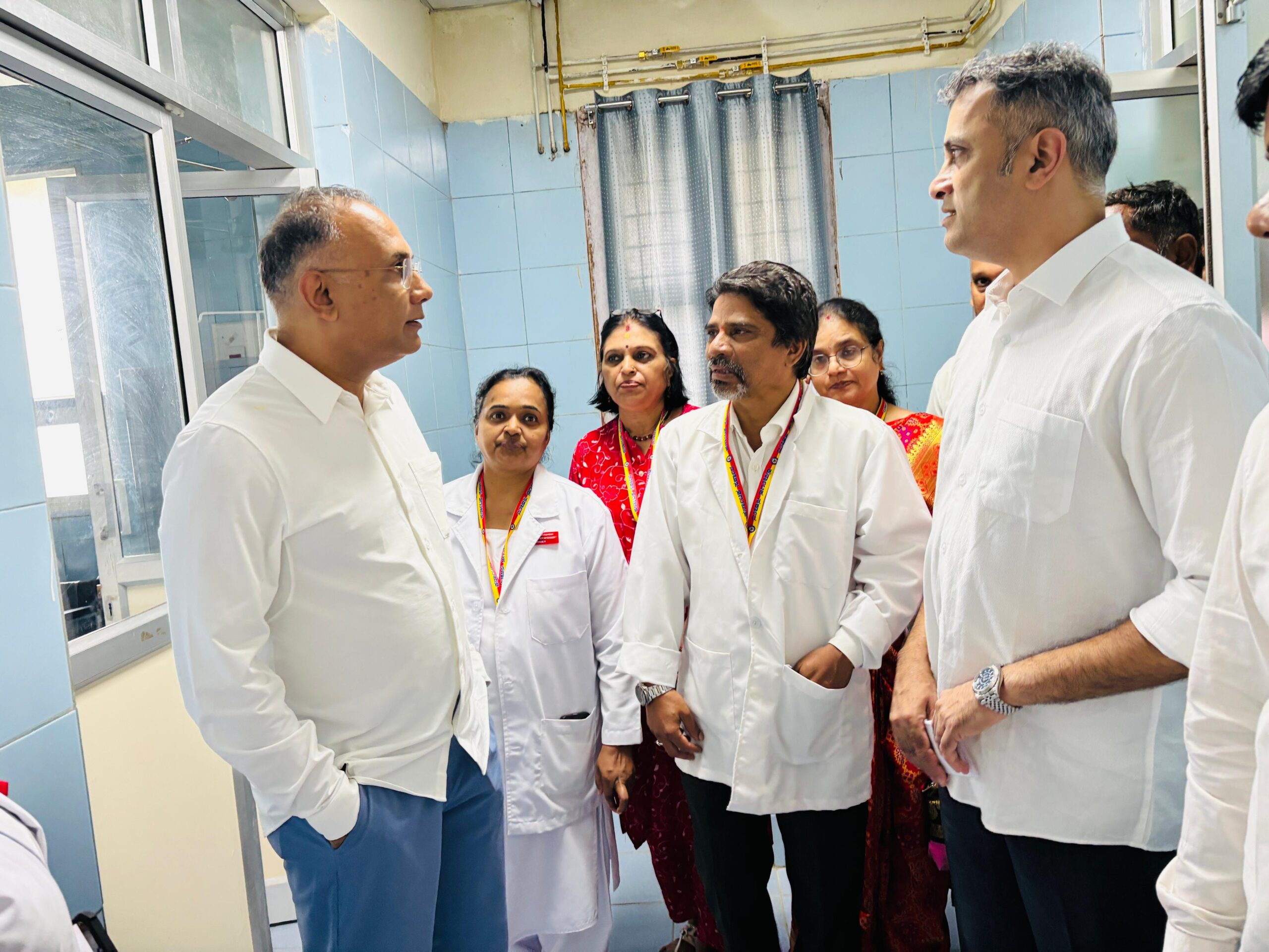 ಮಡಿಕೇರಿ ಸೆ.23 NEWS DESK : ವಿರಾಜಪೇಟೆ ಸಾರ್ವಜನಿಕ ಆಸ್ಪತ್ರೆಗೆ ರಾಜ್ಯ ಆರೋಗ್ಯ ಸಚಿವ ದಿನೇಶ್ ಗುಂಡೂರಾವ್ ಹಾಗೂ ಮುಖ್ಯಮಂತ್ರಿಗಳ ಕಾನೂನು ಸಲಹೆಗಾರರು ಹಾಗೂ ವಿರಾಜಪೇಟೆ ಕ್ಷೇತ್ರದ ಶಾಸಕ ಎ.ಎಸ್ ಪೊನ್ನಣ್ಣ  ಭೇಟಿ ನೀಡಿದರು. ಕಳೆದ ಅಧಿವೇಶನದಲ್ಲಿ ವಿರಾಜಪೇಟೆ ಆಸ್ಪತ್ರೆಯನ್ನು ಮೇಲ್ದರ್ಜೆಗೆ ಏರಿಸಲು ಕರ್ನಾಟಕ ರಾಜ್ಯ ಕಾಂಗ್ರೆಸ್ ಸರಕಾರ ಅನುದಾನವನ್ನು ಒದಗಿಸಿತ್ತು. ಆ ನಿಟ್ಟಿನಲ್ಲಿ ಈಗಾಗಲೇ ಮೇಲು ದರ್ಜೆಗೇರಿಸುವ ಕಾರ್ಯ ಪ್ರಗತಿಯಲ್ಲಿದ್ದು, ಶಾಸಕರು ಹಾಗೂ ಸಚಿವರು ಭೇಟಿ ಸಂದರ್ಭದಲ್ಲಿ ಪರಿಶೀಲಿಸಿದರು. ಆಸ್ಪತ್ರೆ ಬಗೆಗಿನ ಎಲ್ಲಾ ಮಾಹಿತಿಯನ್ನು ಶಾಸಕರು, ಸಚಿವರಿಗೆ ಒದಗಿಸಿದರು. ಜಿಲ್ಲಾ ಆರೋಗ್ಯ ಅಧಿಕಾರಿಗಳಾದ ಸತೀಶ್, ತಾಲೂಕು ಆರೋಗ್ಯ ಅಧಿಕಾರಿಗಳಾದ ಯತೀರಾಜ್, ಬಗರ್ ಹುಕುಂ ತಾಲೂಕು ಅಧ್ಯಕ್ಷರು ಸಲಾಂ, ಪುರಸಭೆ ಅಧ್ಯಕ್ಷೆ ದೇಚಮ್ಮ ಕಾಳಪ್ಪ, ಸದಸ್ಯರು ಮತೀನ್, ಪೃಥ್ವಿನಾಥ್, ರಜಿನಿಕಾಂತ್, ಹಮೀದ್, ಸಾಯಿ ಸಮಿತಿ ಅಧ್ಯಕ್ಷರು ಜಲೀಲ್, ಅರೋಗ್ಯ ರಕ್ಷಾ ಸಮಿತಿ ಸದಸ್ಯರು ಕುಂಡಚೀರ ಮಂಜು ದೇವಯ್ಯ,ಕಿಶೋರ್,ಸಿಬಾ ಪೃಥ್ವಿನಾಥ್, ಅನಿತಾ, ಮಂಡೆಟೀರ ಅನಿಲ್, ಶಬೀರ್, ವಿರಾಜಪೇಟೆ ವಿಧಾನ ಸಭಾ ಕ್ಷೆತ್ರದ ಅಧ್ಯಕ್ಷರು ಪಟ್ಟಡ ರಕ್ಷಿತ್ ಚಂಗಪ್ಪ, ಪಕ್ಷದ ಪ್ರಮುಖರು ಜೋಕಿಮ್, ಭವಿನ್, ಮಂಜುನಾಥ್,ಬಟ್ಟಕಳಂಡ ರಾಜ, ವ್ಯದ್ಯರು, ಸಿಬ್ಬಂದಿಗಳು ಹಾಗೂ ಪ್ರಮುಖರು ಈ ಸಂದರ್ಭ  ಉಪಸ್ಥಿತರಿದ್ದರು.