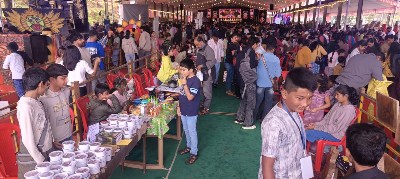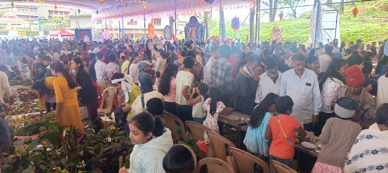 ಮಡಿಕೇರಿ ಸೆ.30 NEWS DESK : ಪುಟಾಣಿ ಮಕ್ಕಳ ಸುಪ್ತ ಪ್ರತಿಭೆಯ ಅನಾವರಣದೊಂದಿಗೆ, ಸಾಮಾಜಿಕ ವ್ಯವಹಾರಗಳ ಕುರಿತು ಅವರಲ್ಲಿ ಅರಿವು ಮೂಡಿಸುವ ಮಕ್ಕಳ ಸಂತೆ ಸೇರಿದಂತೆ ವೈವಿಧ್ಯಮಯ ಕಾರ್ಯಕ್ರಮಗಳೊಂದಿಗೆ ‘ಮಕ್ಕಳ ದಸರಾ ಉತ್ಸವ’ದ ಸಂಭ್ರಮ ಗಾಂಧಿ ಮೈದಾನದ ಉದ್ದಗಲಕ್ಕೂ ವ್ಯಾಪಿಸಿ ಸಂತಸ ಮೂಡಿಸಿತು. ಮಡಿಕೇರಿ ನಗರ ದಸರಾ ಸಮಿತಿ, ದಸರಾ ಜನೋತ್ಸವ ಸಾಂಸ್ಕೃತಿಕ ಸಮಿತಿ ವತಿಯಿಂದ ರೋಟರಿ ಮಿಸ್ಟಿ ಹಿಲ್ಸ್ ಸಹಯೋಗದಲ್ಲಿ ಮಕ್ಕಳ ಸಂತೆ ನಡೆಯಿತು. ನಗರದ ಗಾಂಧಿ ಮೈದಾನದಲ್ಲಿ ನಡೆದ ಮಕ್ಕಳ ಸಂತೆಯಲ್ಲಿ ಮಕ್ಕಳ ವ್ಯಾಪಾರ, ವ್ಯವಹಾರ ವಹಿವಾಟು ಜೋರಾಗಿಯೇ ನಡೆಯಿತು. ಅತ್ಯಧಿಕ ವಿದ್ಯಾರ್ಥಿಗಳ ತಂಡವು ನೋಂದಣಿ ಮಾಡಿಕೊಂಡು ಮಕ್ಕಳ ಸಂತೆಯಲ್ಲಿ ಪಾಲ್ಗೊಂಡಿದ್ದು ವಿಶೇಷವಾಗಿತ್ತು. ಪಾಲಕ್, ಮೆಂತೆ, ಸಬ್ಸಿಗೆ, ದಂಡು, ಕೀರೆ, ಗಣಿಕೆ, ನೊಗ್ಗೆ, ಬಸಳೆ, ಎಲೆಕೋಸು, ವೀಳ್ಯದೆಲೆಯಿಂದ ಹಿಡಿದು ಎಲ್ಲಾ ರೀತಿಯ ಸೊಪ್ಪುಗಳು, ತರಕಾರಿ ವಿಭಾಗದಲ್ಲಿ ಕುಂಬಳ, ಬೂದುಕುಂಬಳ, ಸೌತೆಕಾಯಿ, ಸೋರೆಕಾಯಿ ವಿವಿಧ ರೀತಿಯ ತರಕಾರಿಗಳು, ಹಣ್ಣುಗಳಲ್ಲಿ ಬಾಳೆ, ಕಿತ್ತಳೆ, ಚಕೋತಾ, ಸೇಬು, ಮತ್ತೊಂದು ಬದಿಯಲ್ಲಿ ಪಾನಿಪೂರಿ, ಮಸಾಲಪೂರಿ, ಸೇರಿದಂತೆ ವಿವಿಧ ರೀತಿಯ ತಂಪು ಪಾನೀಯ ಹೀಗೆ ಒಂದು ಬದಿಯಲ್ಲಿ ಸೊಪ್ಪು ತರಕಾರಿ ಇದ್ದರೆ, ಮತ್ತೊಂದು ಬದಿಯಲ್ಲಿ ತಿಂಡಿ ತಿನಿಸು ವ್ಯಾಪಾರ ಎಲ್ಲರನ್ನು ಆಕರ್ಷಣಿಯಗೊಳಿಸಿತು. ಜೊತೆಗೆ ತಿಂಡಿ ತಿನಿಸುಗಳು ಪ್ರತಿಯೊಬ್ಬರ ಬಾಯಲ್ಲಿ ನೀರು ಭರಿಸುವಂತೆ ಮಾಡಿತ್ತು. ಮಕ್ಕಳ ಸಂತೆ ಸಂದರ್ಭದಲ್ಲಿ ಮಡಿಕೇರಿ ದಸರಾ ಮಂಟಪವೇ ಕಣ್ತುಂಬಿಕೊಳ್ಳುವಂತೆ ಕಿರುಮಂಟಪ ಮಾದರಿಯಲ್ಲಿ ಐತಿಹಾಸಿಕ ಸಂದೇಶ ಸಾರಿದ್ದು ವಿಶೇಷವಾಗಿತ್ತು, ಪೌರಾಣಿಕ ಮಂಟಪ ಮೂಲಕ ಚಿತ್ರಣ ಗಮನ ಸೆಳೆಯಿತು. ಕಾರ್ಯಕ್ರಮನ್ನು ಉದ್ಘಾಟಿಸಿ ಮಾತನಾಡಿದ ಜಿಲ್ಲಾಧಿಕಾರಿ ವೆಂಕಟ್ ರಾಜಾ, ಮಕ್ಕಳ ವ್ಯಾಪಾರ ವಹಿವಾಟಿನ ಬಗ್ಗೆ ತಿಳಿದುಕೊಳ್ಳಲು ಮಕ್ಕಳ ಸಂತೆ ಸಹಕಾರಿಯಾಗಿದೆ. ಆ ನಿಟ್ಟಿನಲ್ಲಿ ಮಕ್ಕಳು ಹೆಚ್ಚಿನ ಸಂಖ್ಯೆಯಲ್ಲಿ ಪಾಲ್ಗೊಂಡಿರುವುದು ವಿಶೇಷವಾಗಿದೆ ಎಂದು ಹೇಳಿದರು.