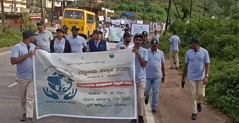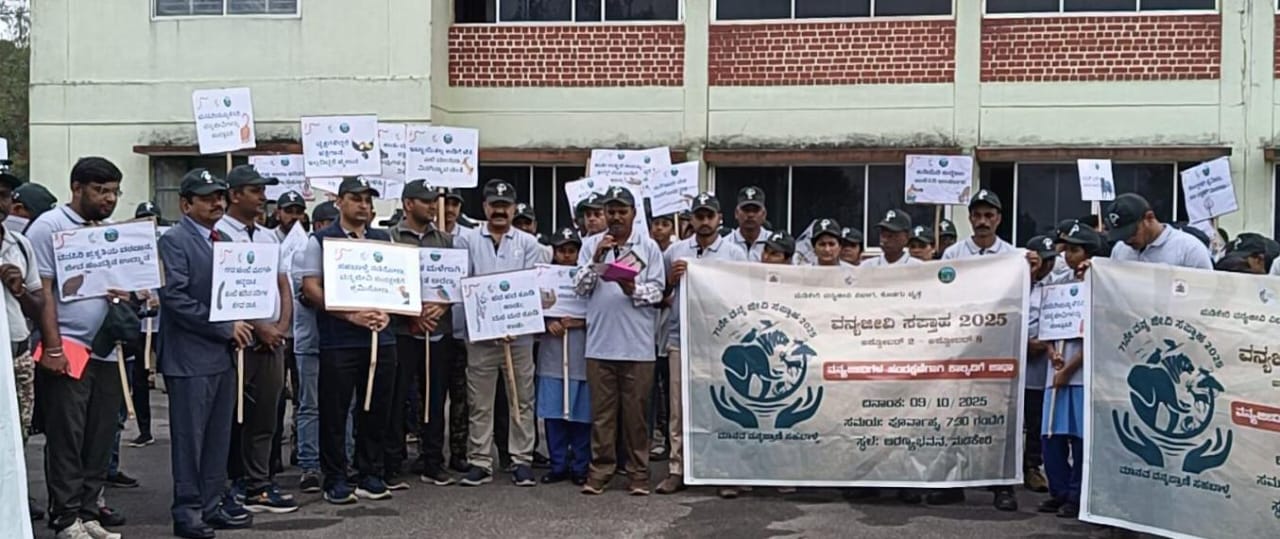 ಮಡಿಕೇರಿ ಅ.9 NEWS DESK : ಪ್ರತಿಯೊಬ್ಬರೂ ವನ್ಯಜೀವಿಗಳೊಂದಿಗೆ ಸಹಬಾಳ್ವೆ ನಡೆಸಿದಾಗ ಮಾತ್ರ ಪ್ರಕೃತಿ, ಪರಿಸರ ಹಾಗೂ ವನ್ಯಜೀವಿಗಳನ್ನು ಉಳಿಸಲು ಸಾಧ್ಯ. ಅರಣ್ಯ ಮತ್ತು ವನ್ಯಜೀವಿಗಳ ಸಂರಕ್ಷಣೆಗೆ ಎಲ್ಲರೂ ಕೈಜೋಡಿಸಬೇಕು ಎಂದು ಜಿಲ್ಲಾಧಿಕಾರಿ ವೆಂಕಟರಾಜಾ ಹೇಳಿದರು. ಕರ್ನಾಟಕ ಅರಣ್ಯ ಇಲಾಖೆಯ ಕೊಡಗು ಅರಣ್ಯ ವೃತ್ತ ಹಾಗೂ ಮಡಿಕೇರಿ ವನ್ಯಜೀವಿ ವಿಭಾಗದ ವತಿಯಿಂದ ಶಾಲಾ ಶಿಕ್ಷಣ ಇಲಾಖೆ, ಕರ್ನಾಟಕ ರಾಜ್ಯ ವಿಜ್ಞಾನ ಪರಿಷತ್ತಿನ (ಕರಾವಿಪ) ಕೊಡಗು ಜಿಲ್ಲಾ ಸಮಿತಿ, ರಾಷ್ಟ್ರೀಯ ಹಸಿರು ಪಡೆ ಇಕೋ ಕ್ಲಬ್ , ಭಾರತ್ ಸ್ಕೌಟ್ಸ್ ಮತ್ತು ಗೈಡ್ಸ್ ಸಂಸ್ಥೆಯ ಜಿಲ್ಲಾ ಘಟಕ ಮತ್ತು ರಾಷ್ಟ್ರೀಯ ಸೇವಾ ಯೋಜನೆ ( ಎನ್ನೆಸ್ಸೆಸ್ ) ಘಟಕಗಳ ಸಂಯುಕ್ತಾಶ್ರಯದಲ್ಲಿ ಮಡಿಕೇರಿ ನಗರದ ಅರಣ್ಯ ಭವನದ ಆವರಣದಲ್ಲಿ “ಮಾನವ ಪ್ರಾಣಿ ಸಹಬಾಳ್ವೆ” ಎಂಬ ಘೋಷವಾಕ್ಯದೊಂದಿಗೆ ಹಮ್ಮಿಕೊಂಡಿದ್ದ 71 ನೇ ವನ್ಯಜೀವಿ ಸಪ್ತಾಹ : 2025 ದ ಅಂಗವಾಗಿ “ಪರಿಸರ ನಡಿಗೆ”ಕಾಲ್ನಡಿಗೆ ಜಾಗೃತಿ ಜಾಥಾ ಕಾರ್ಯಕ್ರಮದ ಉದ್ಘಾಟನಾ ಸಮಾರಂಭದಲ್ಲಿ ಮಾತನಾಡಿದರು. ಪ್ರತಿಯೊಬ್ಬರೂ ಅರಣ್ಯ ಹಾಗೂ ವನ್ಯಜೀವಿಗಳನ್ನು ಸಂರಕ್ಷಿಸುವುದರೊoದಿಗೆ ಜೀವ ವೈವಿಧ್ಯವನ್ನು ಸಂರಕ್ಷಿಸುವ ಮೂಲಕ ಮುಂದಿನ ಪೀಳಿಗೆಗಾಗಿ ಉತ್ತಮ ಪರಿಸರವನ್ನು ಸಂರಕ್ಷಿಸಬೇಕು ಎಂದರು. ಅರಣ್ಯ, ಪರಿಸರ ಮತ್ತು ವನ್ಯಜೀವಿಗಳ ಸಂರಕ್ಷಣೆ ಬಗ್ಗೆ ವಿದ್ಯಾರ್ಥಿಗಳಲ್ಲಿ ಜಾಗೃತಿ ಬೆಳೆಸಬೇಕು. ಇದರಿಂದ ಭವಿಷ್ಯದಲ್ಲಿ ವಿದ್ಯಾರ್ಥಿಗಳು ತಮ್ಮನ್ನು ಇಂತಹ ಪರಿಸರ ಚಟುವಟಿಕೆಗಳಲ್ಲಿ ತೊಡಗಿಸಿಕೊಳ್ಳಲು ಸಹಕಾರಿಯಾಗಿದೆ ಎಂದರು. ಅರಣ್ಯ ಸಂರಕ್ಷಣೆಯು ಕೇವಲ ಅರಣ್ಯ ಇಲಾಖೆಯವರಿಗೆ ಮಾತ್ರ ಸೇರಿದ್ದಲ್ಲ. ಇದು ಪ್ರತಿಯೊಬ್ಬ ಜವಾಬ್ದಾರಿಯುತ ನಾಗರಿಕರ ಕರ್ತವ್ಯವಾಗಿದೆ.ಉತ್ತಮ ಪರಿಸರವನ್ನು ಕಾಪಾಡುವುದು ಎಲ್ಲರ ಜವಾಬ್ದಾರಿಯಾಗಿದೆ. ಪ್ರತಿಯೊಬ್ಬರೂ ಅರಣ್ಯ ಮತ್ತು ವನ್ಯಜೀವಿಗಳ ಸಂರಕ್ಷಣೆಗೆ ತಮ್ಮನ್ನು ತೊಡಗಿಸಿಕೊಳ್ಳಬೇಕು ಎಂದು ಜಿಲ್ಲಾಧಿಕಾರಿ ವೆಂಕಟರಾಜ್ ಹೇಳಿದರು. ಇಂದಿನ ವಿದ್ಯಾರ್ಥಿಗಳಲ್ಲಿ ಅರಣ್ಯ ಮತ್ತು ವನ್ಯಜೀವಿಗಳ ಸಂರಕ್ಷಣೆ ಬಗ್ಗೆ ಹೆಚ್ಚಿನ ಅರಿವು ಮೂಡಿಸುವ ಮೂಲಕ ಅವರಲ್ಲಿ ಪರಿಸರ ಪ್ರಜ್ಞೆ ಬೆಳೆಸಲು ಪ್ರೇರೇಪಿಸಬೇಕು. ಅರಣ್ಯ ಮತ್ತು ಪರಿಸರ ಸಂರಕ್ಷಣೆ ಬಗ್ಗೆ ಹೆಚ್ಚಿನ ಕಾಳಜಿ ಹೊಂದಿರುವ ಕೊಡಗಿನ ಜನತೆಯ ಪರಿಸರ ಪ್ರೇಮ ಮಾದರಿಯಾದುದು ಎಂದರು. ಜಾಗೃತಿ ಜಾಥಾಕ್ಕೆ ಹಸಿರು ನಿಶಾನೆ ನೀಡಿದ ಪ್ರಧಾನ ಜಿಲ್ಲಾ ಮತ್ತು ಸತ್ರ ನ್ಯಾಯಾಧೀಶರಾದ ಹೊಸಮನಿ ಪುಂಡಲೀಕ ಜಾಥಾಕ್ಕೆ ಶುಭ ಕೋರಿದರು. ವನ್ಯಜೀವಿಗಳ ಸಂರಕ್ಷಣೆಯ ಮಹತ್ವ ಕುರಿತು ಮಾಹಿತಿ ನೀಡಿ ಪರಿಸರ ಪ್ರತಿಜ್ಞಾ ವಿಧಿ ಬೋಧಿಸಿದ ಕರ್ನಾಟಕ ರಾಜ್ಯ ವಿಜ್ಞಾನ ಪರಿಷತ್ತಿನ ಜಿಲ್ಲಾ ಸಮಿತಿಯ ಅಧ್ಯಕ್ಷರೂ ಆದ ಜಿಲ್ಲಾ ಪರಿಸರ ಜಾಗೃತಿ ಆಂದೋಲನದ ಸಂಚಾಲಕ ಟಿ.ಜಿ.ಪ್ರೇಮಕುಮಾರ್ ಮಾತನಾಡಿ, ನಾವು ಅರಣ್ಯ, ವನ್ಯಜೀವಿಗಳು, ನದಿ, ಸರೋವರ ಸೇರಿದಂತೆ ನೈಸರ್ಗಿಕ ಪರಿಸರವನ್ನು ಸಂರಕ್ಷಿಸಲು ಪಣ ತೊಡಬೇಕು ಎಂದರು. ಅರಣ್ಯ ಪ್ರದೇಶದಂಚಿನಲ್ಲಿ ದಿನದಿಂದ ದಿನಕ್ಕೆ ಹೆಚ್ಚಾಗುತ್ತಿರುವ ಮಾನವ- ಪ್ರಾಣಿ ಸಂಘರ್ಷದ ನಿಯಂತ್ರಿಸಿ ಮೂಕ ಪ್ರಾಣಿಗಳಿಗೆ ತೊಂದರೆ ಆಗದಂತೆ ನಮ್ಮ ಬದುಕು ರೂಪಿಸಿಕೊಂಡು ವನ್ಯಪ್ರಾಣಿ ಸ್ನೇಹ ಜೀವನ ನಡೆಸಬೇಕಾದ ಅಗತ್ಯವಿದೆ’ ಎಂದರು. ವನ್ಯಜೀವಿಗಳು ಭೂಜಗತ್ತಿನ ಪ್ರಮುಖ ಜೀವಿಗಳಾಗಿವೆ. ವನ್ಯಜೀವಿಗಳ ಜತೆಗೆ ಅವುಗ