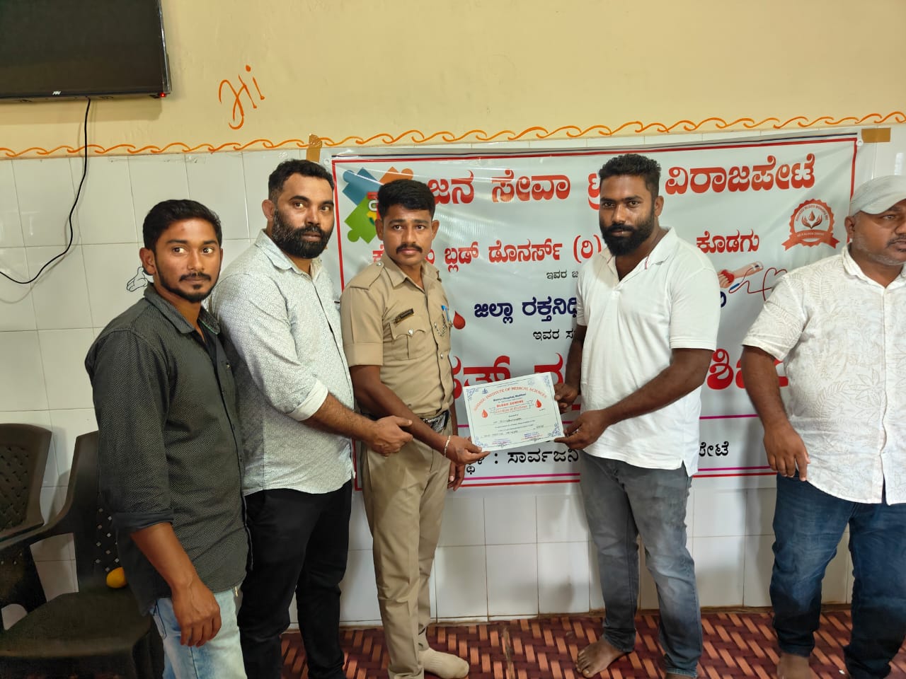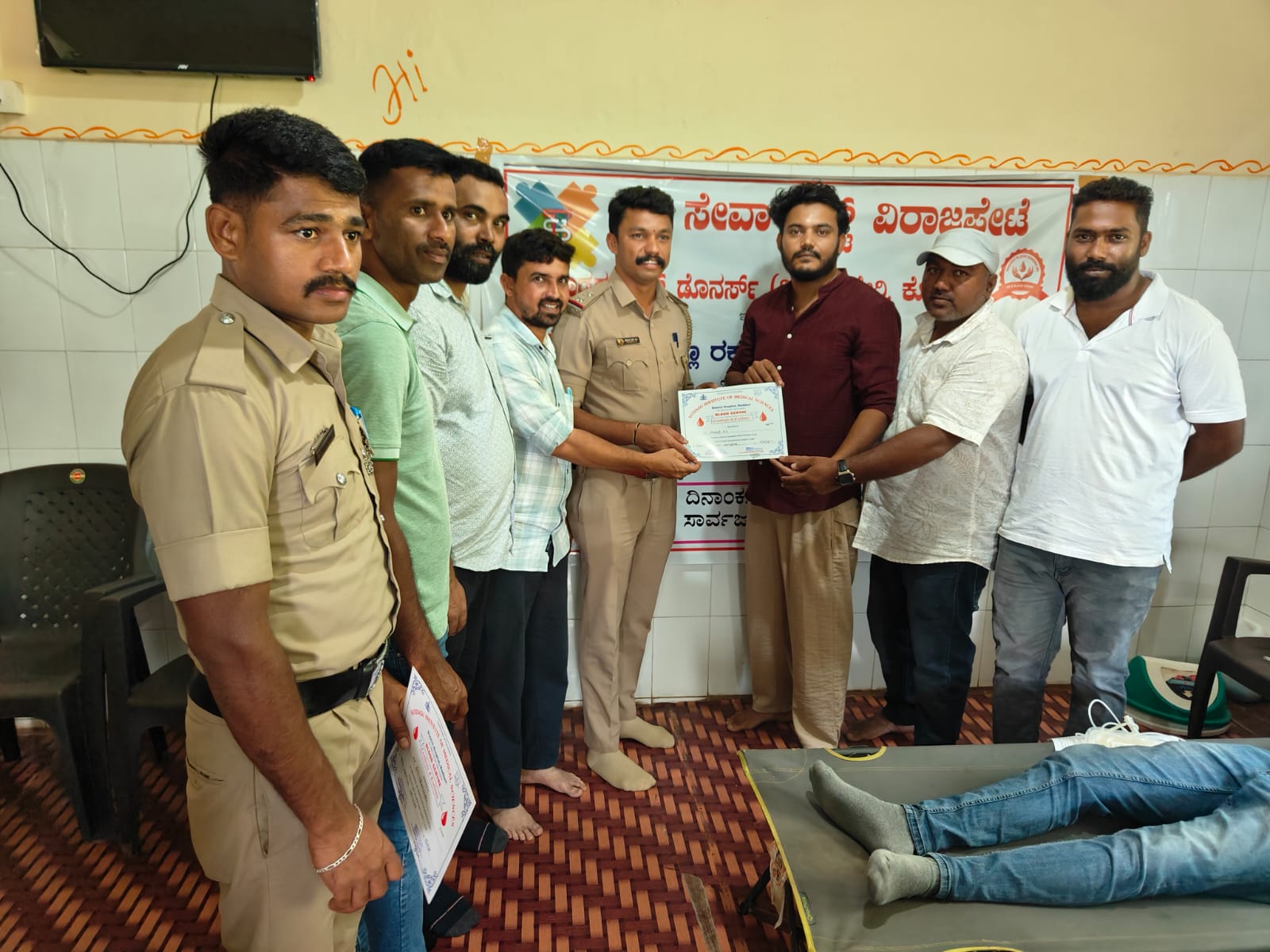 *ವಿರಾಜಪೇಟೆಯಲ್ಲಿ ರಕ್ತದಾನ ಶಿಬಿರ : ಸಾರ್ವಜನಿಕರ ಪ್ರಶಂಸೆಗೆ ಪಾತ್ರರಾದ ಪೊಲೀಸ್ ಸಿಬ್ಬಂದಿಗಳು ಹಾಗೂ ಯುವಕರ ತಂಡ*
