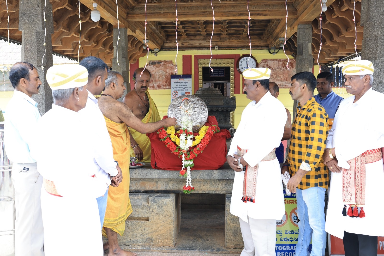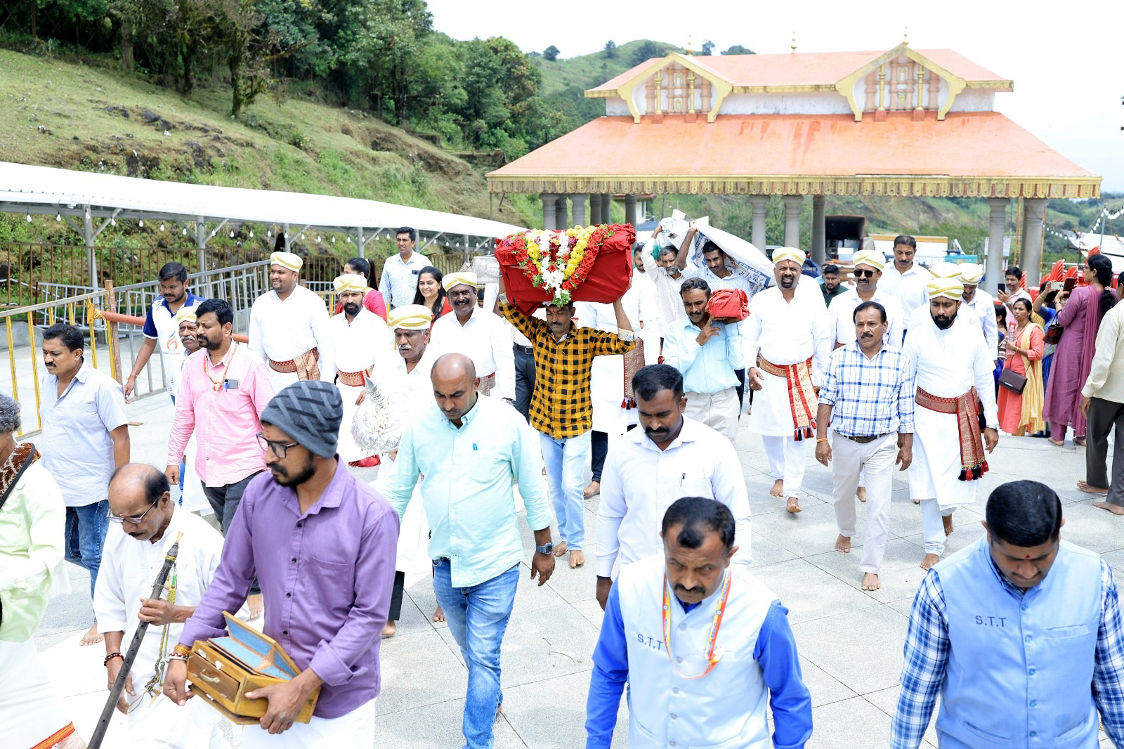 ನಾಪೋಕ್ಲು ಅ.16 NEWS DESK : ಕಾವೇರಿ ತೀರ್ಥೋದ್ಭವದ ಹಿನ್ನೆಲೆಯಲ್ಲಿ ಭಾಗಮಂಡಲ ಶ್ರೀ ಭಗಂಡೇಶ್ವರ ದೇವಾಲಯದಿಂದ ತಲಕಾವೇರಿ ಸನ್ನಿಧಿಗೆ ಚಿನ್ನಾಭರಣಗಳನ್ನು ವಾದ್ಯ ಮೇಳಗಳೊಂದಿಗೆ ಶ್ರದ್ಧಾ ಭಕ್ತಿಯಿಂದ ಕೊಂಡೊಯ್ಯಲಾಯಿತು. ಭಾಗಮಂಡಲದ ಭಗಂಡೇಶ್ವರ ದೇವಾಲಯದಲ್ಲಿ ಕಾರ್ಯನಿರ್ವಹಣಾಧಿಕಾರಿ ಚಂದ್ರಶೇಖರ್ ಅವರಿಂದ ತಲಕಾವೇರಿ ಕ್ಷೇತ್ರದ ತಕ್ಕರಾದ ಕೋಡಿ ಮೋಟಯ್ಯ ಪಡೆದುಕೊಂಡರು. ಬಳಿಕ ದೇವಾಲಯದ ಸುತ್ತ ವಾದ್ಯಗೋಷ್ಠಿಯೊಂದಿಗೆ ಪ್ರದಕ್ಷಿಣೆ ಬರಲಾಯಿತು. ನಂತರ ಚಿನ್ನಾಭರಣಗಳನ್ನು ತಲಕಾವೇರಿಗೆ ಕೊಂಡೊಯ್ದು ಕಾವೇರಿ ಮಾತೆಗೆ ತೊಡಿಸಿ ಪೂಜಾ ವಿಧಿ ವಿಧಾನಗಳನ್ನು ನೆರವೇರಿಸಲಾಯಿತು. ಒಂದು ತಿಂಗಳ ಕಾಲ ತಲಕಾವೇರಿ ತಕ್ಕರಾದ ಕೋಡಿ ಮೊಟ್ಟಯ್ಯ ಅವರ ಸುಪರ್ದಿಯಲ್ಲಿ ಈ ಚಿನ್ನಾಭರಣಗಳಿದ್ದು ಪ್ರತಿ ದಿನ ಕಾವೇರಿ ಮಾತೆಗೆ ತೊಡಿಸಿ ತುಲಾಮಾಸದಲ್ಲಿ ಕಾವೇರಿಮಾತೆ ಕಂಗೊಳಿಸಲಿದ್ದಾಳೆ. ಕಿರು ಸಂಕ್ರಮಣದ ಬಳಿಕ ಚಿನ್ನಾಭರಗಳನ್ನು ಹಿಂತಿರುಗಿಸಿ ತಂದು ಆಡಳಿತಾಧಿಕಾರಿಗೆ ಒಪ್ಪಿಸಲಿದ್ದಾರೆ. ಈ ಸಂದರ್ಭ ಆಡಳಿತಾಧಿಕಾರಿ ಚಂದ್ರಶೇಖರ್, ಪಾರುಪತ್ಯೆಗಾರ ಪೊನ್ನಣ್ಣ, ಭಾಗಮಂಡಲ ತಕ್ಕರಾದ ಬಳ್ಳಡ್ಕ ಅಪ್ಪಾಜಿ, ಕೊಡಗರ ಹರ್ಷ, ಕೊಡಗು ಗೌಡ ಸಮಾಜಗಳ ಒಕ್ಕೂಟದ ಕಾರ್ಯದರ್ಶಿ ಪೇರಿಯನ ಉದಯ, ನಗರಸಭಾ ಸದಸ್ಯ ಶ್ವೇತಪ್ರಾಶತ್, ಕೊಡಗು ಗೌಡ ಯುವ ವೇದಿಕೆಯ ಸೋನಿಯಾ ಶರತ್, ಕೊಡಗು ಗೌಡ ಸಮಾಜದ ಅಧ್ಯಕ್ಷ ಪೇರಿಯನ ಜಯನಂದ, ದಂಬೆಕೊಡಿ ಆನಂದ, ಕುಟ್ಟನ ಸುದೀಪ್, ಪೈಕೆರ ಮನೋಹರ್, ಭಾಗಮಂಡಲ ನಾಡು ಗೌಡ ಯುವ ಒಕ್ಕೂಟದ ಅಧ್ಯಕ್ಷ ಕುದುಕುಳಿ ಕಿಶೋರ್, ಕಾರ್ಯದರ್ಶಿ ಚಲನ್, ಭಾಗಮಂಡಲ ದೇವಸ್ಥಾನದ ನಾಡು ತಕ್ಕರಾದ ಬಾರಿಕೆ ಮತ್ತು ನಂಗಾರು ಕುಟುಂಬಸ್ಥರು, ದೇಶ ತಕ್ಕರಾದ ಕುದುಪಜೆ ಮತ್ತು ಸೂರ್ತಲೆ ಕುಟುಂಬಸ್ಥರು ಭಕ್ತಾದಿಗಳು ಉಪಸ್ಥಿತರಿದ್ದರು.