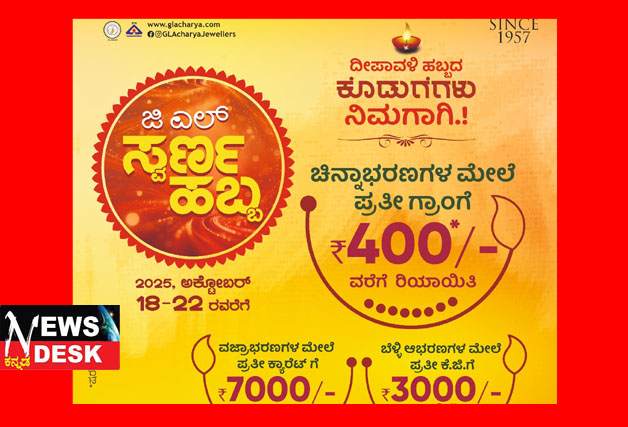 ಮಡಿಕೇರಿ NEWS DESK ಅ.16 : ಕುಶಾಲನಗರ ಮುಖ್ಯರಸ್ತೆಯ ಪ್ರತಿಷ್ಟಿತ ಚಿನ್ನಾಭರಣಗಳ ಮಳಿಗೆ ಜಿ.ಎಲ್. ಆಚಾರ್ಯ ಜ್ಯುವೆಲ್ಲರ್ನಲ್ಲಿ ದೀಪಾವಳಿ ಹಬ್ಬದ ಪ್ರಯುಕ್ತ ಜಿ.ಎಲ್. ಸ್ವರ್ಣ ಹಬ್ಬ ತಾ.18.10.2025 ರಿಂದ 22.10.2025ರ ವರೆಗೆ ನಡೆಯಲಿದೆ. ಗ್ರಾಹಕರಿಗೆ ದೀಪಾವಳಿ ಹಬ್ಬದ ಈ ಸಂದರ್ಭದಲ್ಲಿ ಸ್ವರ್ಣ ಹಬ್ಬದ ಪ್ರಯುಕ್ತ ಆಕರ್ಷಕ ಕೊಡುಗೆಗಳನ್ನು ಸಂಸ್ಥೆಯು ಪ್ರಕಟಿಸಿದೆ. ವಜ್ರದ ಆಭರಣಗಳು, ಚಿನ್ನದ ಆಭರಣಗಳು ಹಾಗೂ ಬೆಳ್ಳಿಯ ಆಭರಣಗಳ ಅದ್ಭುತ ರಿಯಾಯಿತಿಗಳನ್ನು ನೀಡಲಾಗಿದೆ. ಷರತ್ತುಗಳ ಅನ್ವಯದೊಂದಿಗೆ ಚಿನ್ನಾಭರಣ ಖರೀದಿಗೆ ಪ್ರತಿ ಗ್ರಾಂಗೆ ರೂ. 400/ವರೆಗೆ ರಿಯಾಯಿತಿ, ವಜ್ರಾಭರಣಗಳ ಮೇಲೆ ಪ್ರತೀ ಕ್ಯಾರೆಟ್ಗೆ ರೂ.7,000/- ವರೆಗೆ ರಿಯಾಯಿತಿ ಹಾಗೂ ಬೆಳ್ಳಿಯ ಆಭರಣಗಳ ಮೇಲೆ ಪ್ರತೀ ಕೆಜಿಗೆ ರೂ.3000/- ಫ್ಲ್ಯಾಟ್ ಡಿಸ್ಕೌಂಟ್ ನೀಡಲಾಗುವುದು. ರೂ.50,000 ಮೇಲ್ಪಟ್ಟ ಖರೀದಿಗೆ ಖಚಿತ ಉಡುಗೊರೆಯ ಕೂಪನ್ ಹಾಗೂ ಆಕರ್ಷಕ ಚಿನ್ನದ ನಾಣ್ಯ ಗೆಲ್ಲುವ ಸುವರ್ಣವಕಾಶವಿದೆ. 916 ಅಥವಾ ಬೇರೆ ಯಾವುದೇ ಶುದ್ಧತೆಯ ಆಭರಣವನ್ನು ವಿನಿಮಯ ಮಾಡಿಕೊಳ್ಳುವಾಗ, ಚಿನ್ನದ ದರ ಏರಿಕೆಯ ಲಾಭವನ್ನು ಪಡೆಯಿರಿ ಹಾಗೂ ಚಿನ್ನದ ಬೆಲೆ ಏರಿಕೆಯ ಪರಿಣಾಮವನ್ನು ಈ ಆಫರ್ ಮೂಲಕ ಕಡಿಮೆ ಮಾಡಿಕೊಳ್ಳಲು ಇದು ಒಂದು ಸುವರ್ಣಾವಕಾಶವಾಗಿದೆ. ದಿನದಿಂದ ದಿನಕ್ಕೆ ಏರುವ ಚಿನ್ನದ ದರವನ್ನು ಸರಾಸರಿ ಮಾಡುವ ಸ್ವರ್ಣಧಾರ ಚಿನ್ನದ ಹೂಡಿಕೆ ಯೋಜನೆಯಲ್ಲಿ ಈಗ ಸೇರಿದವರಿಗೆ ಬರುವ ವಿಜಯದಶಮಿ/ದೀಪಾವಳಿ ಸಮಯದಲ್ಲಿ ತಮ್ಮ ನೆಚ್ಚಿನ ಆಭರಣವನ್ನು ಕೊಳ್ಳಲು ಈ ಯೋಜನೆಯು ಒಂದು ಸುವರ್ಣಾವಕಾಶ ಮಾಡಿಕೊಡುತ್ತದೆ. ಆಧುನಿಕ ಮತ್ತು ಪಾರಂಪರಿಕ ಚಿನ್ನದ ಆಭರಣಗಳು, ವಜ್ರಾಭರಣಗಳಿಗೆ ಹಾಗೂ ಗುಣಮಟ್ಟದ ಚಿನ್ನಾಭರಣಗಳ ಮಾರಾಟದಲ್ಲಿ ಹೆಸರುವಾಸಿಯಾಗಿರುವ ಸಂಸ್ಥೆಯು ಸುಳ್ಯ, ಮೂಡಬಿದ್ರೆ, ಹಾಸನ ಹಾಗೂ ಕುಶಾಲನಗರದಲ್ಲಿ ತಮ್ಮ ಮಳಿಗೆಗಳನ್ನು ಹೊಂದಿದೆ ಹಾಗೂ ಈ ಜಿ.ಎಲ್. ಸ್ವರ್ಣ ಹಬ್ಬ ಎಲ್ಲಾ ಮಳಿಗೆಗಳಲ್ಲಿ ಲಭ್ಯವಿದೆ ಎಂದು ಸಂಸ್ಥೆಯ ಪ್ರಕಟಣೆ ತಿಳಿಸಿದೆ.