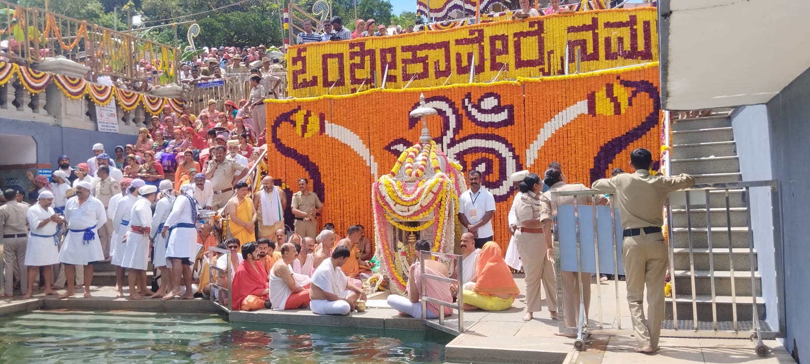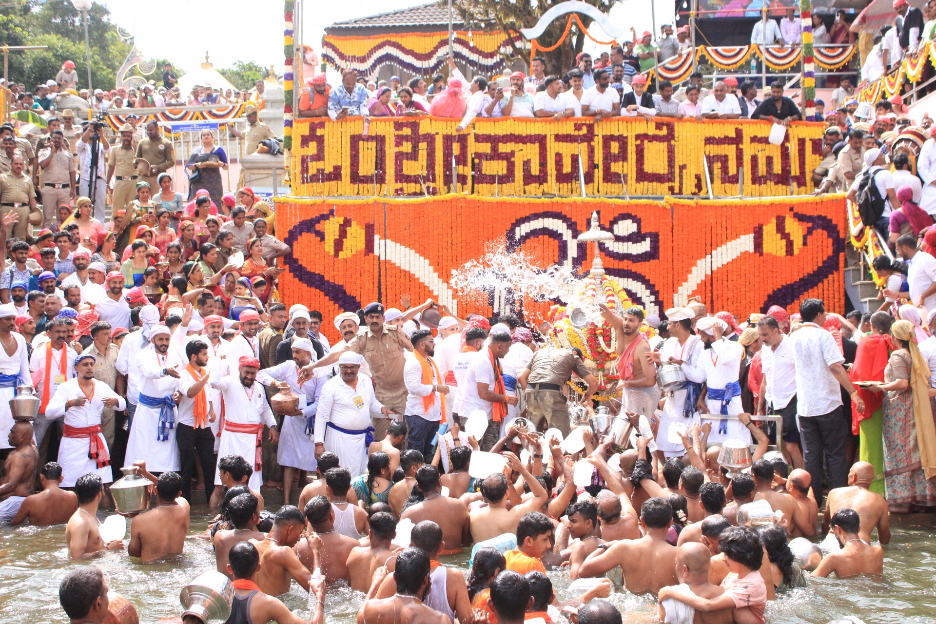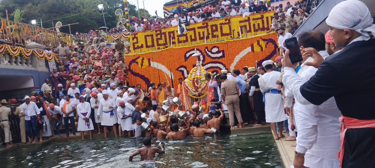 ಮಡಿಕೇರಿ ಅ.17 NEWS DESK : ಜೀವನದಿ ಕಾವೇರಿಯ ಉಗಮ ಸ್ಥಾನ ತಲಕಾವೇರಿಯಲ್ಲಿ ಇಂದು (ಅ.17) ಮಧ್ಯಾಹ್ನ 1 ಗಂಟೆ 44 ನಿಮಿಷಕ್ಕೆ ಸಲ್ಲುವ ಮಕರ ಲಗ್ನದಲ್ಲಿ ಭಕ್ತರ ಹರ್ಷೋದ್ಘಾರದ ನಡುವೆ ಪವಿತ್ರ ತೀರ್ಥೋದ್ಭವವಾಯಿತು. ಭಕ್ತರ ಜಯಘೋಷ, ವಿವಿಧ ಧಾರ್ಮಿಕ ವಿಧಿ ವಿಧಾನಗಳೊಂದಿಗೆ ಕುಂಡಿಕೆಯಲ್ಲಿ ತಾಯಿ ಕಾವೇರಿ ತೀರ್ಥರೂಪಿಣಿಯಾಗಿ ಕಾಣಿಸಿಕೊಂಡಳು. ಪ್ರಧಾನ ಅರ್ಚಕರಾದ ಗುರುರಾಜ್ ಆಚಾರ್ ತಂಡ ಪೂಜಾ ವಿಧಿವಿಧಾನವನ್ನು ನಡೆಸಿದರು. ಸಂಸದ ಯದುವೀರ್ ಒಡೆಯರ್, ಮುಖ್ಯಮಂತ್ರಿಗಳ ಕಾನೂನು ಸಲಹೆಗಾರರು ಹಾಗೂ ಶಾಸಕರಾದ ಎ.ಎಸ್.ಪೊನ್ನಣ್ಣ, ಶಾಸಕರಾದ ಡಾ.ಮಂತರ್ ಗೌಡ, ಜಿಲ್ಲಾಧಿಕಾರಿ ವೆಂಕಟ್ ರಾಜಾ, ಜಿಲ್ಲಾ ಪೊಲೀಸ್ ವರಿಷ್ಠಾಧಿಕಾರಿ ಕೆ.ರಾಮರಾಜನ್, ಹೆಚ್ಚುವರಿ ಜಿಲ್ಲಾಧಿಕಾರಿ ಆರ್.ಐಶ್ವರ್ಯ, ಶ್ರೀ ಭಗಂಡೇಶ್ವರ-ತಲಕಾವೇರಿ ದೇವಾಲಯದ ಹೆಚ್ಚುವರಿ ಕಾರ್ಯನಿರ್ವಾಹಕ ಅಧಿಕಾರಿ ಎನ್.ಜಿ.ಚಂದ್ರಶೇಖರ್, ತಕ್ಕ ಮುಖ್ಯಸ್ಥರಾದ ಕೋಡಿ.ಯು.ಮೋಟಯ್ಯ ಮಠಾಧೀಶರು ಮತ್ತಿತರ ಗಣ್ಯರು ತೀರ್ಥೋದ್ಭವದ ಪವಿತ್ರ ಕ್ಷಣಕ್ಕೆ ಸಾಕ್ಷಿಯಾದರು. ಜಿಲ್ಲೆಯ ವಿವಿಧ ಭಾಗಗಳಿಂದ ಭಕ್ತರು ಭಾಗಮಂಡಲ ಕ್ಷೇತ್ರಕ್ಕೆ ಆಗಮಿಸಿ ಶ್ರೀಭಗಂಡೇಶ್ವರನಿಗೆ ಪೂಜೆ ಸಲ್ಲಿಸಿದರು. ನಂತರ ಕಾಲ್ನಡಿಗೆಯ ಮೂಲಕ ಕಾವೇರಿ ಮಾತೆಯ ಸ್ಮರಣೆಯೊಂದಿಗೆ ತಲಕಾವೇರಿಗೆ ತೆರಳಿದರು.  :: ಬ್ರಿಟಿಷ್  ಏರ್ ವೇಸ್ ನಿಂದ ಕಾವೇರಿ ಸಂಕ್ರಮಣದ ಶುಭಾಷಯಗಳು ::  ಬೆಂಗಳೂರಿನ ಕೆಂಪೇಗೌಡ ಅಂತರರಾಷ್ಟ್ರೀಯ ವಿಮಾನ ನಿಲ್ದಾಣಕ್ಕೆ ಶುಕ್ರವಾರ ಮುಂಜಾನೆ 5.30 ಗಂಟೆಗೆ ಬಂದಿಳಿದ  ಬ್ರಿಟಿಷ್ ಏರ್ ವೇಸ್ ವಿಮಾನ ಪ್ರಯಾಣಿಕರಿಗೆ ಆಶ್ಚಯ೯ ಕಾದಿತ್ತು, ಬೆಂಗಳೂರಿನಲ್ಲಿ ಇನ್ನೇನು ವಿಮಾನ ಇಳಿಯಬೇಕೆಂಬಷ್ಟರಲ್ಲಿ ವಿಮಾನದ ಪೈಲಟ್, ಬ್ರಿಟಿಷ್ ಏರ್ ವೇಸ್ ಪರವಾಗಿ ಎಲ್ಲಾ  ಯಾತ್ರಿಗಳಿಗೆ    ಕನಾ೯ಟಕದ ಜೀವನದಿಯ  ತೀಥೋ೯ದ್ವವ ಮತ್ತು ಕಾವೇರಿ ಸಂಕ್ರಮಣದ ಶುಭಾಷಯ ತಿಳಿಸಿದರು.  ಕೊಡಗಿನ ಮೂಲದ ಪಡಿಯಂಡ ದೀಪಕ್ ಈ ವಿಮಾನದ ಪೈಲಟ್ ಆಗಿದ್ದು, ತನ್ನ ಜಿಲ್ಲೆಯಲ್ಲಿ ಅಂದು ಮಧ್ಯಾಹ್ನ ಸಂಭವಿಸುತ್ತಿದ್ದ ಕಾವೇರಿ ಪವಿತ್ರ ತೀಥೋ೯ದ್ವವದ ಬಗ್ಗೆ ಯಾತ್ರಿಕರಿಗೆ ಮಾಹಿತಿ ನೀಡಿ ಅವರು ಸಂಭ್ರಮ ವಿನಿಮಯ ಮಾಡಿಕೊಂಡರು. :: ಕಾಲ್ನಡಿಗೆಯಲ್ಲಿ ಬಂದ ಹಷಿ೯ಕಾ – ಭುವನ್ ::  ಕಾವೇರಿ ತೀಥೋ೯ದ್ವವದ ಸಂದಭ೯ ಕಲಾವಿದ ದಂಪತಿ ಹಷಿ೯ಕಾ ಪೂಣಚ್ಚ ಮತ್ತು ಭುವನ್ ಪೊನ್ನಣ್ಣ ತಮ್ಮ 1 ವಷ೯ದ ಮಗು ತ್ರಿದೇವಿ ಪೊನ್ನಕ್ಕಳೊಂದಿಗೆ ಭಾಗಮಂಡಲದಿಂದ ತಲಕಾವೇರಿಗೆ 8 ಕಿ.ಮೀ. ದೂರ ಕಾಲ್ನಡಿಗೆಯಲ್ಲಿಯೇ ಬಂದರು.  ತಮಗೆ ಆರೋಗ್ಯವಂತ ಮಗುವಾದರೆ ಕಾಲ್ನಡಿಗೆಯಲ್ಲಿ ಕಾವೇರಿ ಕ್ಷೇತ್ರಕ್ಕೆ ಬರುವುದಾಗಿ ಹರಕೆ ಹೊತ್ತುಕೊಂಡಿದ್ದೆವು. ಅಂತೆಯೇ ಹರಕೆ ತೀರಿಸಲು ಕಾವೇರಿ ತೀಥೋ೯ದ್ವವದಂದು ಕಾಲ್ನಡಿಗೆಯಲ್ಲಿಯೇ ತ್ರಿದೇವಿಯೊಂದಿಗೆ ಬಂದೆವು ಎಂದು ಹಷಿ೯ಕಾ ಹೇಳಿದರು. ಭುವನ್ ಇದೀಗ ಯೋಗರಾಜ ಭಟ್ ಅವರ ನಿದೇ೯ಶನದ ಹೊಸ ಚಿತ್ರದಲ್ಲಿ ನಾಯಕನಾಗಿದ್ದು ಹಷಿ೯ಕಾ ಕೂಡ ಹೊಸ ಚಿತ್ರವೊಂದರಲ್ಲಿ ನಟಿಸುತ್ತಿದ್ದಾರೆ. ಪುತ್ರಿ ಜನಿಸಿದ ಬಳಿಕ ಈ ದಂಪತಿಯ ವೖತ್ತಿ ಜೀವನದಲ್ಲಿ ಹೊಸ ಆಶಾಕಿರಣ ಮೂಡಿದೆ. ಹೀಗಾಗಿಯೇ ದಂಪತಿ  ಕುಲದೈವವಾಗಿರುವ ಕಾವೇರಮ್ಮನ ಸನ್ನಿಧಿಗೆ  ಬಂದು ತೀಥ೯ ಸ್ವೀಕರಿಸಿ ಹರಕೆ ತೀರಿಸಿದರು. :: ರಾಯಲ್ ಲುಕ್ ನಲ್ಲಿ ಮಿಂಚಿದ ಯದುವೀರ್ ::  ಸಂಸದ ಯದುವೀರ್ ಮೈಸೂರು ರಾಜವಂಶಸ್ಥರ ಉಡುಗೆಯಲ್ಲಿ ಕಾವೇರಿ ತೀಥೋ೯ದ್ವವ ಸಂದಭ೯ ಕಂಗೊಳಿಸಿದ್ದು ವಿ