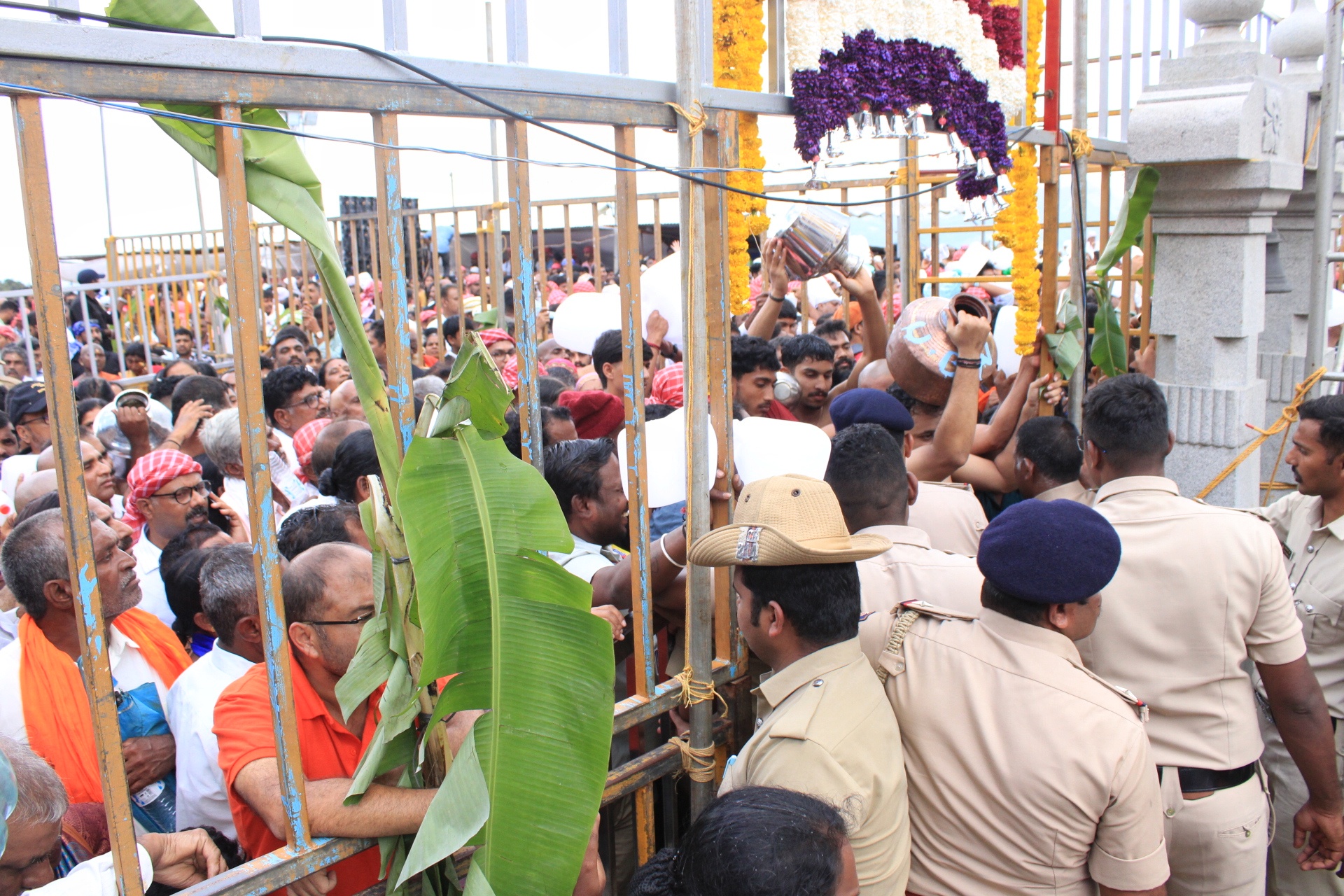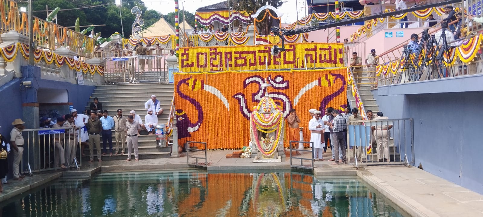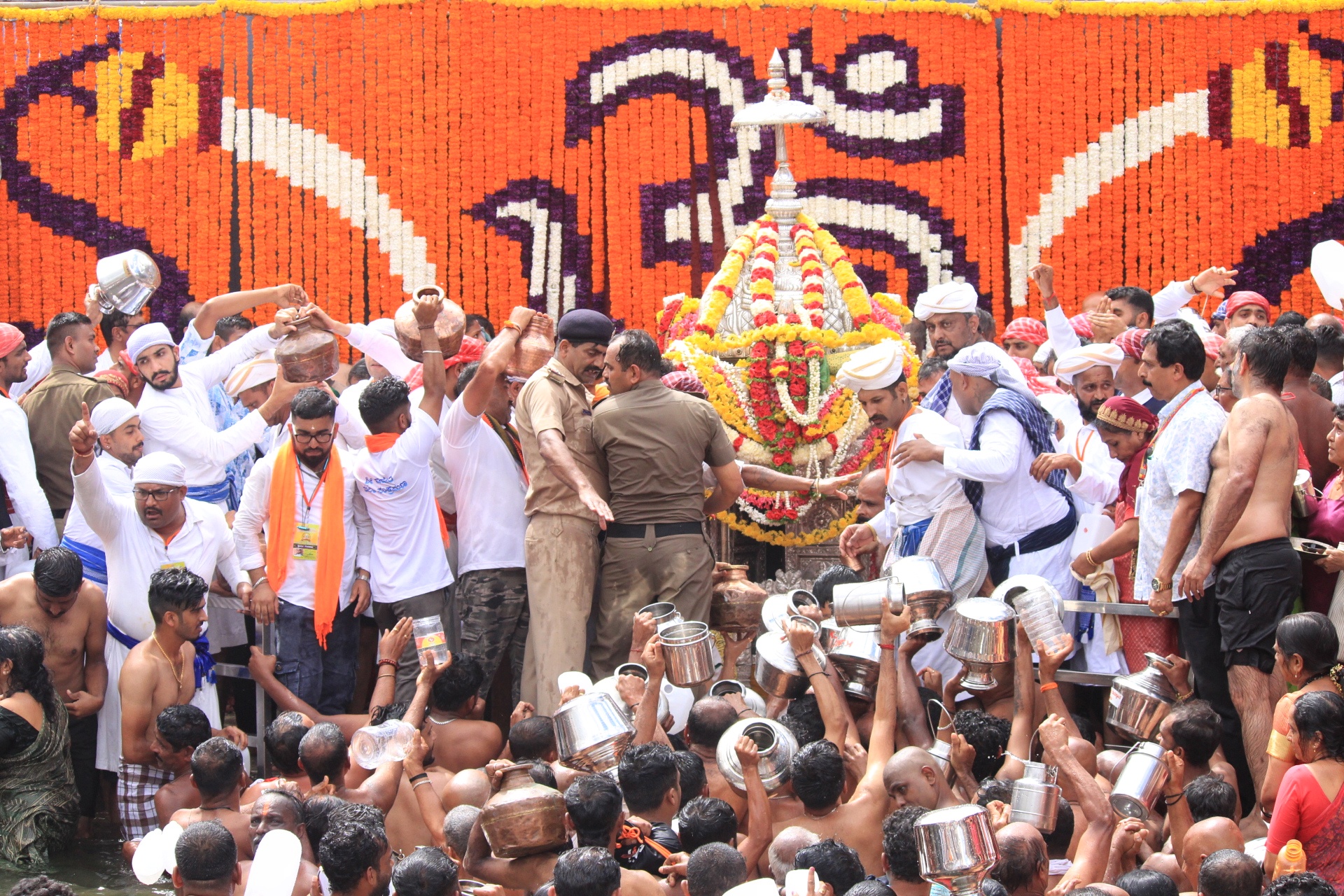 ಮಡಿಕೇರಿ ಅ.17 NEWS DESK : ಜೀವನದಿ ಕಾವೇರಿಯ ಉಗಮ ಸ್ಥಾನ ತಲಕಾವೇರಿಯಲ್ಲಿ ಇಂದು (ಅ.17) ಮಧ್ಯಾಹ್ನ 1 ಗಂಟೆ 44 ನಿಮಿಷಕ್ಕೆ ಸಲ್ಲುವ ಮಕರ ಲಗ್ನದಲ್ಲಿ ಭಕ್ತರ ಹರ್ಷೋದ್ಘಾರದ ನಡುವೆ ಪವಿತ್ರ ತೀರ್ಥೋದ್ಭವವಾಯಿತು. ಭಕ್ತರ ಜಯಘೋಷ, ವಿವಿಧ ಧಾರ್ಮಿಕ ವಿಧಿ ವಿಧಾನಗಳೊಂದಿಗೆ ಕುಂಡಿಕೆಯಲ್ಲಿ ತಾಯಿ ಕಾವೇರಿ ತೀರ್ಥರೂಪಿಣಿಯಾಗಿ ಕಾಣಿಸಿಕೊಂಡಳು. ಪ್ರಧಾನ ಅರ್ಚಕರಾದ ಗುರುರಾಜ್ ಆಚಾರ್ ತಂಡ ಪೂಜಾ ವಿಧಿವಿಧಾನವನ್ನು ನಡೆಸಿದರು. ಸಂಸದ ಯದುವೀರ್ ಒಡೆಯರ್, ಮುಖ್ಯಮಂತ್ರಿಗಳ ಕಾನೂನು ಸಲಹೆಗಾರರು ಹಾಗೂ ಶಾಸಕರಾದ ಎ.ಎಸ್.ಪೊನ್ನಣ್ಣ, ಶಾಸಕರಾದ ಡಾ.ಮಂತರ್ ಗೌಡ, ಜಿಲ್ಲಾಧಿಕಾರಿ ವೆಂಕಟ್ ರಾಜಾ, ಜಿಲ್ಲಾ ಪೊಲೀಸ್ ವರಿಷ್ಠಾಧಿಕಾರಿ ಕೆ.ರಾಮರಾಜನ್, ಹೆಚ್ಚುವರಿ ಜಿಲ್ಲಾಧಿಕಾರಿ ಆರ್.ಐಶ್ವರ್ಯ, ಶ್ರೀ ಭಗಂಡೇಶ್ವರ-ತಲಕಾವೇರಿ ದೇವಾಲಯದ ಹೆಚ್ಚುವರಿ ಕಾರ್ಯನಿರ್ವಾಹಕ ಅಧಿಕಾರಿ ಎನ್.ಜಿ.ಚಂದ್ರಶೇಖರ್, ತಕ್ಕ ಮುಖ್ಯಸ್ಥರಾದ ಕೋಡಿ.ಯು.ಮೋಟಯ್ಯ ಮಠಾಧೀಶರು ಮತ್ತಿತರ ಗಣ್ಯರು ತೀರ್ಥೋದ್ಭವದ ಪವಿತ್ರ ಕ್ಷಣಕ್ಕೆ ಸಾಕ್ಷಿಯಾದರು. ಜಿಲ್ಲೆಯ ವಿವಿಧ ಭಾಗಗಳಿಂದ ಭಕ್ತರು ಭಾಗಮಂಡಲ ಕ್ಷೇತ್ರಕ್ಕೆ ಆಗಮಿಸಿ ಶ್ರೀಭಗಂಡೇಶ್ವರನಿಗೆ ಪೂಜೆ ಸಲ್ಲಿಸಿದರು. ನಂತರ ಕಾಲ್ನಡಿಗೆಯ ಮೂಲಕ ಕಾವೇರಿ ಮಾತೆಯ ಸ್ಮರಣೆಯೊಂದಿಗೆ ತಲಕಾವೇರಿಗೆ ತೆರಳಿದರು.  :: ಬ್ರಿಟಿಷ್  ಏರ್ ವೇಸ್ ನಿಂದ ಕಾವೇರಿ ಸಂಕ್ರಮಣದ ಶುಭಾಷಯಗಳು ::  ಬೆಂಗಳೂರಿನ ಕೆಂಪೇಗೌಡ ಅಂತರರಾಷ್ಟ್ರೀಯ ವಿಮಾನ ನಿಲ್ದಾಣಕ್ಕೆ ಶುಕ್ರವಾರ ಮುಂಜಾನೆ 5.30 ಗಂಟೆಗೆ ಬಂದಿಳಿದ  ಬ್ರಿಟಿಷ್ ಏರ್ ವೇಸ್ ವಿಮಾನ ಪ್ರಯಾಣಿಕರಿಗೆ ಆಶ್ಚಯ೯ ಕಾದಿತ್ತು, ಬೆಂಗಳೂರಿನಲ್ಲಿ ಇನ್ನೇನು ವಿಮಾನ ಇಳಿಯಬೇಕೆಂಬಷ್ಟರಲ್ಲಿ ವಿಮಾನದ ಪೈಲಟ್, ಬ್ರಿಟಿಷ್ ಏರ್ ವೇಸ್ ಪರವಾಗಿ ಎಲ್ಲಾ  ಯಾತ್ರಿಗಳಿಗೆ    ಕನಾ೯ಟಕದ ಜೀವನದಿಯ  ತೀಥೋ೯ದ್ವವ ಮತ್ತು ಕಾವೇರಿ ಸಂಕ್ರಮಣದ ಶುಭಾಷಯ ತಿಳಿಸಿದರು.  ಕೊಡಗಿನ ಮೂಲದ ಪಡಿಯಂಡ ದೀಪಕ್ ಈ ವಿಮಾನದ ಪೈಲಟ್ ಆಗಿದ್ದು, ತನ್ನ ಜಿಲ್ಲೆಯಲ್ಲಿ ಅಂದು ಮಧ್ಯಾಹ್ನ ಸಂಭವಿಸುತ್ತಿದ್ದ ಕಾವೇರಿ ಪವಿತ್ರ ತೀಥೋ೯ದ್ವವದ ಬಗ್ಗೆ ಯಾತ್ರಿಕರಿಗೆ ಮಾಹಿತಿ ನೀಡಿ ಅವರು ಸಂಭ್ರಮ ವಿನಿಮಯ ಮಾಡಿಕೊಂಡರು. :: ಕಾಲ್ನಡಿಗೆಯಲ್ಲಿ ಬಂದ ಹಷಿ೯ಕಾ – ಭುವನ್ ::  ಕಾವೇರಿ ತೀಥೋ೯ದ್ವವದ ಸಂದಭ೯ ಕಲಾವಿದ ದಂಪತಿ ಹಷಿ೯ಕಾ ಪೂಣಚ್ಚ ಮತ್ತು ಭುವನ್ ಪೊನ್ನಣ್ಣ ತಮ್ಮ 1 ವಷ೯ದ ಮಗು ತ್ರಿದೇವಿ ಪೊನ್ನಕ್ಕಳೊಂದಿಗೆ ಭಾಗಮಂಡಲದಿಂದ ತಲಕಾವೇರಿಗೆ 8 ಕಿ.ಮೀ. ದೂರ ಕಾಲ್ನಡಿಗೆಯಲ್ಲಿಯೇ ಬಂದರು.  ತಮಗೆ ಆರೋಗ್ಯವಂತ ಮಗುವಾದರೆ ಕಾಲ್ನಡಿಗೆಯಲ್ಲಿ ಕಾವೇರಿ ಕ್ಷೇತ್ರಕ್ಕೆ ಬರುವುದಾಗಿ ಹರಕೆ ಹೊತ್ತುಕೊಂಡಿದ್ದೆವು. ಅಂತೆಯೇ ಹರಕೆ ತೀರಿಸಲು ಕಾವೇರಿ ತೀಥೋ೯ದ್ವವದಂದು ಕಾಲ್ನಡಿಗೆಯಲ್ಲಿಯೇ ತ್ರಿದೇವಿಯೊಂದಿಗೆ ಬಂದೆವು ಎಂದು ಹಷಿ೯ಕಾ ಹೇಳಿದರು. ಭುವನ್ ಇದೀಗ ಯೋಗರಾಜ ಭಟ್ ಅವರ ನಿದೇ೯ಶನದ ಹೊಸ ಚಿತ್ರದಲ್ಲಿ ನಾಯಕನಾಗಿದ್ದು ಹಷಿ೯ಕಾ ಕೂಡ ಹೊಸ ಚಿತ್ರವೊಂದರಲ್ಲಿ ನಟಿಸುತ್ತಿದ್ದಾರೆ. ಪುತ್ರಿ ಜನಿಸಿದ ಬಳಿಕ ಈ ದಂಪತಿಯ ವೖತ್ತಿ ಜೀವನದಲ್ಲಿ ಹೊಸ ಆಶಾಕಿರಣ ಮೂಡಿದೆ. ಹೀಗಾಗಿಯೇ ದಂಪತಿ  ಕುಲದೈವವಾಗಿರುವ ಕಾವೇರಮ್ಮನ ಸನ್ನಿಧಿಗೆ  ಬಂದು ತೀಥ೯ ಸ್ವೀಕರಿಸಿ ಹರಕೆ ತೀರಿಸಿದರು. :: ರಾಯಲ್ ಲುಕ್ ನಲ್ಲಿ ಮಿಂಚಿದ ಯದುವೀರ್ ::  ಸಂಸದ ಯದುವೀರ್ ಮೈಸೂರು ರಾಜವಂಶಸ್ಥರ ಉಡುಗೆಯಲ್ಲಿ ಕಾವೇರಿ ತೀಥೋ೯ದ್ವವ ಸಂದಭ೯ ಕಂಗೊಳಿಸಿದ್ದು ವಿ