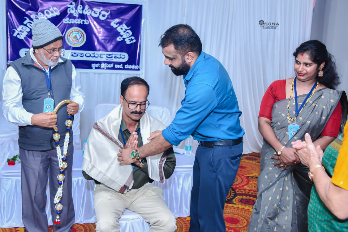 ಮಡಿಕೇರಿ ಅ.28 NEWS DESK : ಮಾನವೀಯ ಸ್ನೇಹಿತರ ಒಕ್ಕೂಟದ ಆಶ್ರಯದಲ್ಲಿ ಮಡಿಕೇರಿಯ ಕ್ರೆಸೆಂಟ್ ಶಾಲೆಯಲ್ಲಿ ಒಕ್ಕೂಟದ ಸಮ್ಮಿಲನ ಕಾರ್ಯಕ್ರಮ ನಡೆಯಿತು. ಒಕ್ಕೂಟದ ಸ್ಥಾಪಕ ಅಡ್ಮಿನ್ ಅನಿಲ್ ರೈ ಅವರ ಅಧ್ಯಕ್ಷತೆಯಲ್ಲಿ ನಡೆದ ಸಮಾರಂಭವನ್ನು ಒಕ್ಕೂಟದ ಸಲಹೆಗಾರ ಡೇವಿಡ್ ವೇಗಸ್ ಉದ್ಘಾಟಿಸಿದರು. ಒಕ್ಕೂಟದ ವಕ್ತಾರರಾದ ಶಶಿಕುಮಾರ್ ಚೆಟ್ಟಳ್ಳಿ ಪ್ರಾಸ್ತಾವಿಕ ಮಾತನಾಡಿದರು. ಒಕ್ಕೂಟದ ಪ್ರತಿನಿಧಿಗಳು ತಮ್ಮ ಪರಿಚಯವನ್ನು ಮಾಡಿಕೊಂಡರು. ಪ್ರತಿನಿಧಿ ಪ್ರವೀಣ್ ರೈ ನಾಪೋಕ್ಲು ಅವರು ಒಕ್ಕೂಟದ ಕಾರ್ಯ ಚಟುವಟಿಕೆಗಳ ಕುರಿತು ತಮ್ಮ ಮೆಚ್ಚುಗೆಯನ್ನು ವ್ಯಕ್ತಪಡಿಸಿದರು. ಪ್ರತಿನಿಧಿಗಳಾದ ಕಡ್ಲೇರ ತುಳಸಿ ಮೋಹನ್ ಹಾಗೂ ಸುನಿತಾ ಬಿಳಿಗೇರಿ ಆರಂಭದಲ್ಲಿ ಧ್ಯೇಯ ಗೀತೆ ಹಾಡಿದರು. ಅಡ್ಮಿನ್ ಗಳಾದ ಬಾಳೆಯಡ ದಿವ್ಯಾ ಮಂದಪ್ಪ ಹಾಗೂ ಅಗ್ನಿ ಚೆನ್ನನಾಯಕ ಕಾರ್ಯಕ್ರಮ ನಿರೂಪಿಸಿದರು. ಅಡ್ಮಿನ್ ಚೀರಂಡಚಂಗಪ್ಪ ಅವರು ಸ್ವಾಗತ ಭಾಷಣ ಮಾಡಿದರು. ಅಡ್ಮಿನ್ ಇಂದಿರಾ ಟೀಚರ್ ವರದಿ ವಾಚಿಸಿದರು, ಅಡ್ಮಿನ್ ಲೀಲಾವತಿ ಲೆಕ್ಕಪತ್ರ ಮಂಡನೆ ಮಾಡಿದರು. ಪುರುಷರು ಹಾಗೂ ಮಹಿಳೆಯರಿಗೆ ವಿವಿಧ ಕ್ರೀಡಾಸ್ಪರ್ಧೆಗಳು ನಡೆಸಿ ವಿಜೇತರಿಗೆ ಬಹುಮಾನ ಹಾಗೂ ಒಕ್ಕೂಟದ ಪ್ರತಿನಿಧಿಗಳಿಗೆ ನೆನಪಿನ ಕಾಣಿಕೆಗಳನ್ನು ವಿತರಿಸಲಾಯಿತು. :: ಶಶಿಕುಮಾರ್ ಅವರಿಗೆ ಒಕ್ಕೂಟದ ಗೌರವ :: ಒಕ್ಕೂಟದ ವಕ್ತಾರರಾದ ಶಶಿಕುಮಾರ್ ಚೆಟ್ಟಳ್ಳಿ ಅವರ ಸೇವೆಯನ್ನು ಪರಿಗಣಿಸಿ ಅವರನ್ನು ಸಮಾರಂಭದಲ್ಲಿ ಸನ್ಮಾನಿಸಲಾಯಿತು. ನೆರೆದವರಿಗೆ ಮಧ್ಯಾಹ್ನ ಭೋಜನದ ವ್ಯವಸ್ಥೆ ಮಾಡಲಾಗಿತ್ತು. ಒಕ್ಕೂಟದ ವಕ್ತಾರ ಎಂ.ಇ. ಮಹಮ್ಮದ್ ವಂದಿಸಿದರು.