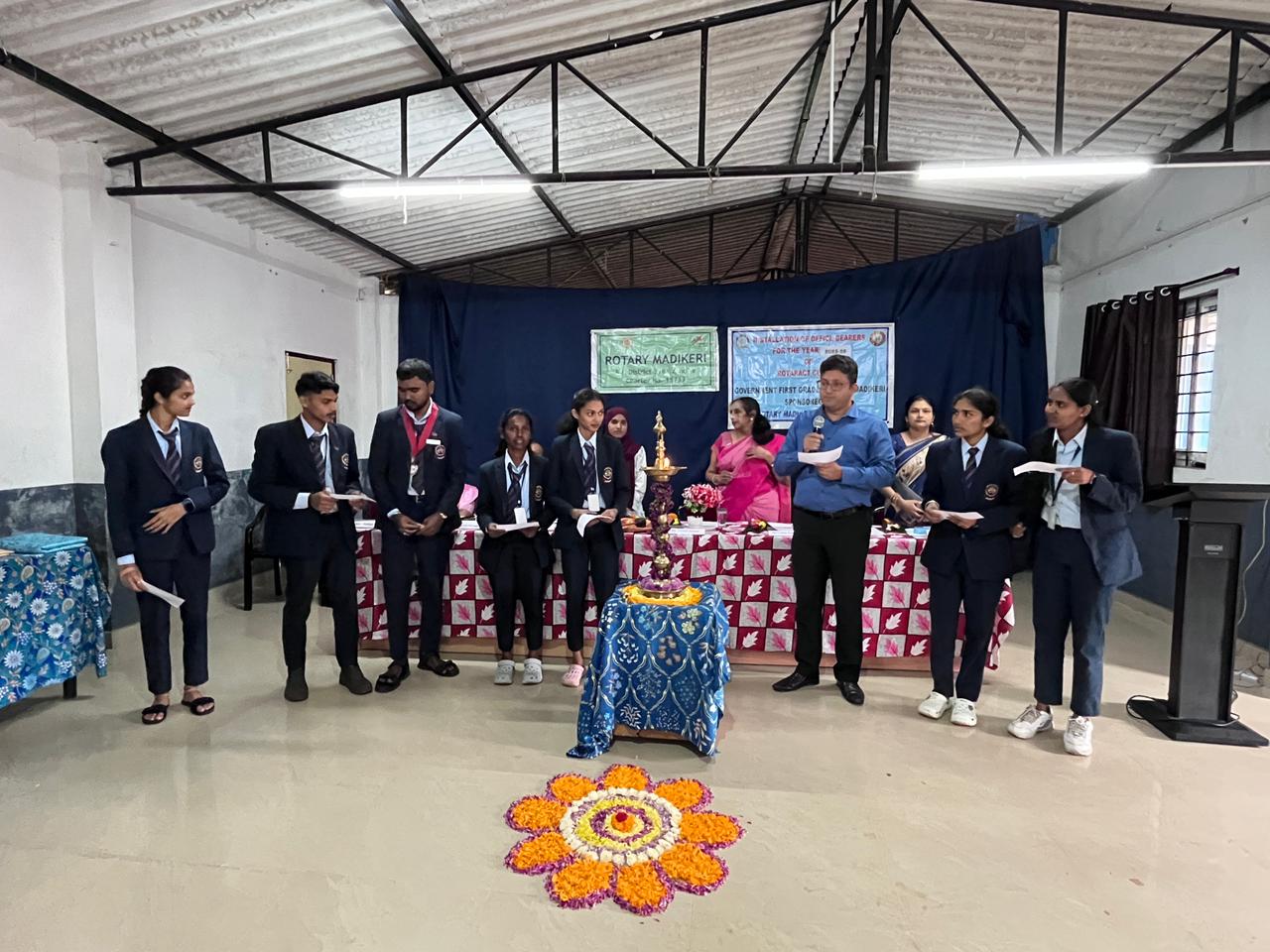 ನಿಷ್ಮ ಮತ್ತು ತಂಡ ಪ್ರಾರ್ಥಿಸಿದರು, ಅಕ್ಷತಾ ಸ್ವಾಗತಿಸಿ, ಮೇಘನಾ ಪೂವಯ್ಯ ನಿರೂಪಿಸಿ, ರಾಹುಲ್ ವಂದಿಸಿದರು. ರಚನಾ ಪದಗ್ರಹಣ ಅಧಿಕಾರಿಗಳ ಕಿರುಪರಿಚಯ ಮಾಡಿದರು. ರಾಷ್ಟ್ರಗೀತೆಯ ನಂತರ ವಿದ್ಯಾರ್ಥಿಗಳಿಗೆ ಸಿಹಿ ಹಂಚಲಾಯಿತು.