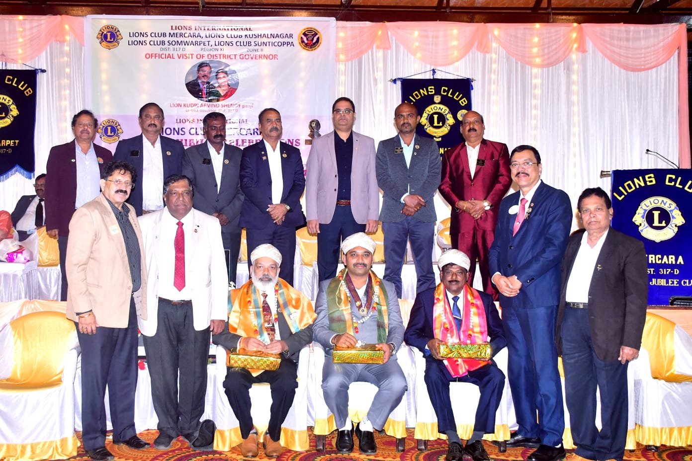 ಮಡಿಕೇರಿ NEWS DESK ಅ.31 : ಕಳೆದ 60 ವರ್ಷಗಳಿಂದ ಸಮಾಜಮುಖಿಯಾಗಿ ನಿರಂತರ ಸೇವೆಯಲ್ಲಿ ತೊಡಗಿಸಿಕೊಂಡಿರುವ ಮಡಿಕೇರಿ ಲಯನ್ಸ್ ಸಂಸ್ಥೆ ವಜ್ರ ಮಹೋತ್ಸವ ಸಮಾರಂಭವನ್ನು ಆಚರಿಸಿಕೊಂಡಿತು. ಲಯನ್ಸ್ ಜಿಲ್ಲಾ ರಾಜ್ಯಪಾಲ ಕುಡುಪಿ ಅರವಿಂದ್  ಶೆಣೈ ಅವರು ಅಧಿಕೃತ ಭೇಟಿ ನೀಡಿ ಸಂಸ್ಥೆಯ ಬೆಳವಣಿಗೆಯ ಕುರಿತು ಮೆಚ್ಚುಗೆ ವ್ಯಕ್ತಪಡಿಸಿದರು. ಮಡಿಕೇರಿ ಕೊಡವ ಸಮಾಜದ ಸಭಾಂಗಣದಲ್ಲಿ ನಡೆದ ಕಾರ್ಯಕ್ರಮದಲ್ಲಿ ಪಾಲ್ಗೊಂಡು ಮಾತನಾಡಿದ ರಾಜ್ಯಪಾಲರು ಲಯನ್ಸ್ ಸಂಸ್ಥೆಯಲ್ಲಿ ಅನುಭವಿಗಳು ಹಾಗೂ ಹಿರಿಯ ಸದಸ್ಯರು ವಿವಿಧ ಸ್ಥಾನಗಳನ್ನು ಅಲಂಕರಿಸಿದ್ದು, ಈ ವಯಸ್ಸಿನಲ್ಲೂ   ಸಮಾಜಮುಖಿ ಕಾರ್ಯಗಳಲ್ಲಿ ತೊಡಗಿಸಿಕೊಂಡಿರುವುದು ಶ್ಲಾಘನೀಯವೆಂದರು.
