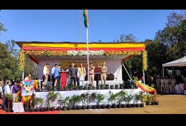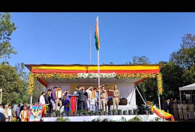 ಮಡಿಕೇರಿ ನ.1 NEWS DESK : ಕೊಡಗು ಜಿಲ್ಲಾಡಳಿತ ವತಿಯಿಂದ 70ನೇ ಕನ್ನಡ ರಾಜ್ಯೋತ್ಸವವನ್ನು ನಗರದ ಜಿಲ್ಲಾ ಪೊಲೀಸ್ ಕವಾಯತು ಮೈದಾನದಲ್ಲಿ ಸಂಭ್ರಮದಿಂದ ಆಚರಿಸಲಾಯಿತು. ಸಣ್ಣ ನೀರಾವರಿ, ವಿಜ್ಞಾನ ಮತ್ತು ತಂತ್ರಜ್ಞಾನ ಹಾಗೂ ಕೊಡಗು ಜಿಲ್ಲಾ ಉಸ್ತುವಾರಿ ಸಚಿವರಾದ ಎನ್.ಎಸ್.ಭೋಸರಾಜು ತ್ರಿವರ್ಣ ಧ್ವಜಾರೋಹಣ ನೆರವೇರಿಸಿದರು. ನಂತರ ಕನ್ನಡಾಂಬೆ ಭುವನೇಶ್ವರಿಗೆ ಪುಷ್ಪಾರ್ಚನೆಯ ಮೂಲಕ ಗೌರವ ಸಲ್ಲಿಸಿ, ನಾಡಿನ ಜನತೆಗೆ ಸಂದೇಶ ನೀಡಿದರು. ಬಳಿಕ ವಿದ್ಯಾರ್ಥಿಗಳಿಂದ ಆಕರ್ಷಕ ಸಾಂಸ್ಕೃತಿಕ ಕಾರ್ಯಕ್ರಮಗಳು ನಡೆದವು. ಕನ್ನಡ ರಾಜ್ಯೋತ್ಸವ ಪ್ರಯುಕ್ತ ಸ್ತಬ್ಧ ಚಿತ್ರಗಳ ಹಾಗೂ ಕಲಾ ತಂಡಗಳ ಮೆರವಣಿಗೆ ನಡೆಯಿತು. ಕಾರ್ಯಕ್ರಮದಲ್ಲಿ ಗ್ಯಾರಂಟಿ ಯೋಜನೆಗಳ ಅನುಷ್ಠಾನ ಸಮಿತಿ ಜಿಲ್ಲಾ ಅಧ್ಯಕ್ಷರಾದ ತೀತಿರ ಧರ್ಮಜ ಉತ್ತಪ್ಪ, ಜಿಲ್ಲಾಧಿಕಾರಿ ವೆಂಕಟ್ ರಾಜಾ, ಜಿಲ್ಲಾ ಪೊಲೀಸ್ ವರಿಷ್ಠಾಧಿಕಾರಿ ಕೆ.ರಾಮರಾಜನ್, ಜಿ.ಪಂ.ಸಿಇಒ ಆನಂದ್ ಪ್ರಕಾಶ್ ಮೀನಾ ಹಾಗೂ ವಿವಿಧ ಇಲಾಖೆಯ ಅಧಿಕಾರಿಗಳು ಹಾಜರಿದ್ದರು. :: ಆಕರ್ಷಕ ಪಥ ಸಂಚಲನ :: ನಗರದ ವವಿಧ ಶಾಲಾ ಕಾಲೇಜುಗಳ ಎನ್ಸಿಸಿ, ಸೇವಾದಳ, ಸ್ಕೌಟ್ಸ್, ಗೈಡ್ಸ್, ಜಿಲ್ಲಾ ಪೊಲೀಸ್ ಸಶಸ್ತ್ರ ದಳ, ನಾಗರಿಕ ಸೇವಾ ಪೊಲೀಸ್, ಗೃಹ ರಕ್ಷಕ ದಳ, ಅರಣ್ಯ ಇಲಾಖೆಯಿಂದ ಆಕರ್ಷಕ ಪಥ ಸಂಚಲನ ನಡೆಯಿತು. ಸಚಿವರು ಪಥ ಸಂಚಲನದ ಗೌರವ ವಂದನೆ ಸ್ವಕರಸಿದರು.
