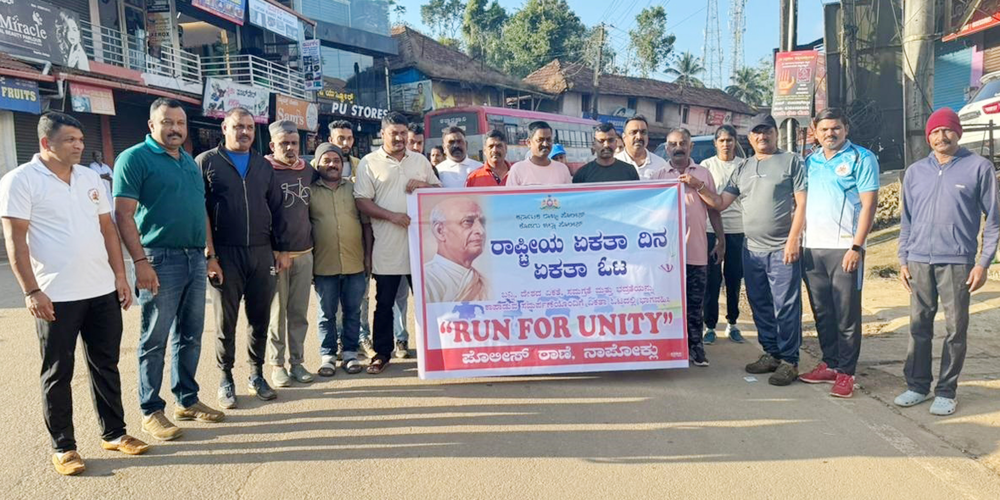ನಾಪೋಕ್ಲು ನ.1 NEWS DESK : ಸರ್ದಾರ್ ವಲ್ಲಭಭಾಯಿ ಪಟೇಲ್ ಅವರ 150ನೇ ಜನ್ಮದಿನದ ಅಂಗವಾಗಿ ನಾಪೋಕ್ಲುವಿನಲ್ಲಿ ರಾಷ್ಟರೀಯ ಏಕತಾ ಓಟ ನಡೆಯಿತು. ನಾಪೋಕ್ಲು ಪೊಲೀಸ್ ಠಾಣೆಯ ಸಹಾಯಕ ಠಾಣಾಧಿಕಾರಿ ಫ್ರಾನ್ಸಿಸ್ ಅವರ ನೇತೃತ್ವದಲ್ಲಿ ಪೊಲೀಸರು ಹಾಗೂ ಗ್ರಾಮ ಪಂಚಾಯತಿ ಸದಸ್ಯರಾದ ಮಾಚೇಟಿರ ಕುಸು ಕುಶಾಲಪ್ಪ, ಅಶ್ರಫ್ ಕೆ.ವೈ., ನಾಪೋಕ್ಲು ಪಟ್ಟಣದ ಬಸ್ ನಿಲ್ದಾಣದಿಂದ ಮಾರುಕಟ್ಟೆ ವರೆಗೆ ಏಕತಾ ಓಟವನ್ನು ನಡೆಸಿ ಏಕತಾ ಸಂದೇಶವನ್ನು ಸಾರಿದರು. ಈ ಸಂದರ್ಭ ಸ್ಥಳೀಯ ಪೊಲೀಸ್ ಠಾಣೆ ಸಿಬ್ಬಂದಿಗಳು, ಸಾರ್ವಜನಿಕರು, ಆಟೋ ಚಾಲಕರು ಉಪಸ್ಥಿತರಿದ್ದರು.