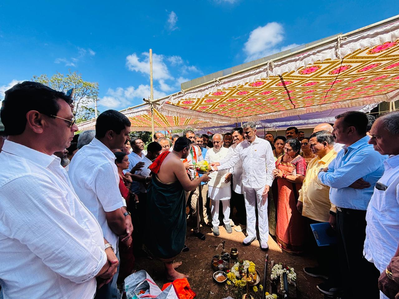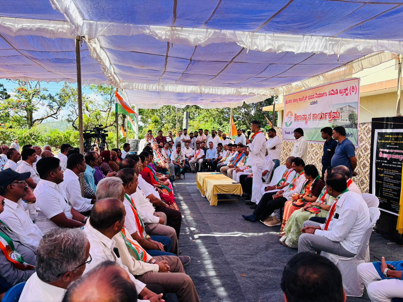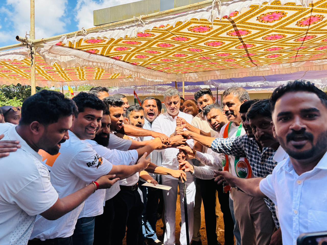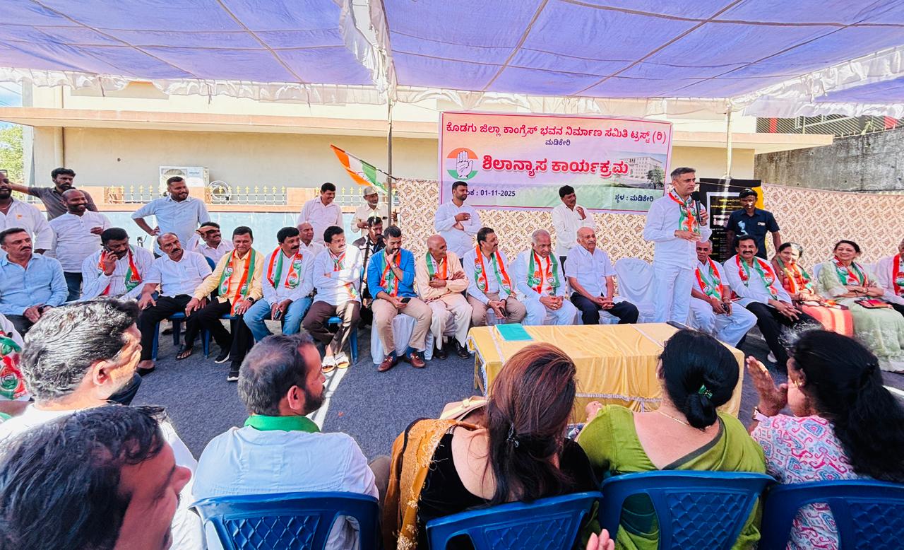 ಮಡಿಕೇರಿ ನ.1 NEWS DESK : ಮಡಿಕೇರಿಯ ಜಿಲ್ಲಾಧಿಕಾರಿ ಕಚೇರಿಗೆ ತೆರಳುವ ರಸ್ತೆಯ ಬಳಿ ನೂತನವಾಗಿ ನಿರ್ಮಿಸಲು ಉದ್ದೇಶಿಸಿರುವ ಕೊಡಗು ಜಿಲ್ಲಾ ಕಾಂಗ್ರೆಸ್ ಭವನ ನಿರ್ಮಾಣಕ್ಕೆ ಉಸ್ತುವಾರಿ ಸಚಿವ ಭೋಸರಾಜು, ಮುಖ್ಯಮಂತ್ರಿಗಳ ಕಾನೂನು ಸಲಹೆಗಾರರು ಹಾಗೂ ವಿರಾಜಪೇಟೆ ಕ್ಷೇತ್ರದ ಶಾಸಕ ಎ.ಎಸ್.ಪೊನ್ನಣ್ಣ, ಶಾಸಕ ಡಾ.ಮಂತರ್ ಗೌಡ ಶಿಲನ್ಯಾಸ ನೆರವೇರಿಸಿದರು. ಕೊಡಗು ಜಿಲ್ಲಾ ಕಾಂಗ್ರೆಸ್ ಅಧ್ಯಕ್ಷರಾದ ಧರ್ಮಜ ಉತ್ತಪ್ಪ ಅವರ ಅಧ್ಯಕ್ಷತೆ ಯಲ್ಲಿ ನಡೆದ ಕಾರ್ಯಕ್ರಮದಲ್ಲಿ ಕಾಂಗ್ರೆಸ್ ಪಕ್ಷದ ಹಿರಿಯ ನಾಯಕರುಗಳು, ಮಾಜಿ ಸಚಿವರುಗಳು, ಮಾಜಿ ಶಾಸಕರುಗಳು ಹಾಗೂ ಆಹ್ವಾನಿತ ಅತಿಥಿ ಗಣ್ಯರು ಉಪಸ್ಥಿತರಿದ್ದರು. ಬಳಿಕ ಶುಭಕೋರಿದ ಶಾಸಕ ಎ.ಎಸ್.ಪೊನ್ನಣ್ಣ, ನಿಗದಿತ ಸಮಯದಲ್ಲಿ ಕಾಂಗ್ರೆಸ್ ಭವನ ಪೂರ್ಣಗೊಳ್ಳಲಿದ್ದು, ಎಲ್ಲರೂ ಕೈಜೋಡಿಸಬೇಕೆಂದು ಕರೆ ನೀಡಿದರು. ಆದಷ್ಟು ಬೇಗ ಈ ನೂತನ ಭವನದಲ್ಲಿ ಪಕ್ಷದ ಕಾರ್ಯ ಚಟುವಟಿಕೆಗಳು ಯಶಸ್ಸು ಕಾಣುವುದರೊಂದಿಗೆ ಕಾಂಗ್ರೆಸ್ ಪಕ್ಷದ ಗತವೈಭವ ಮರುಕಳಿಸುವುದರಲ್ಲಿ ಯಾವುದೇ ಸಂದೇಹವಿಲ್ಲ ಎಂದು ತಿಳಿಸಿದರು. ಮಾಜಿ ಸಚಿವರಾದ ಎಂ.ಸಿ.ನಾಣಯ್ಯ ಮಾತನಾಡಿ, ಶುಭ ಕೋರಿದರು. ವೇದಿಕೆಯಲ್ಲಿ ಕೆಪಿಸಿಸಿ ಸದಸ್ಯರುಗಳು, ಕೆಪಿಸಿಸಿ ಪ್ರಧಾನ ಕಾರ್ಯದರ್ಶಿಗಳಾದ ಲಕ್ಷ್ಮಣ್ ಮೈಸೂರು, ಹಿರಿಯ ನಾಯಕರಾದ ಪಿಕೆ ಪೊನ್ನಪ್ಪ, ಕೆಪಿ ಶಾಂತಪ್ಪ, ಮಾಜಿ ಶಾಸಕಿ ಶ್ರೀಮತಿ ವೀಣಾ ಅಚಯ್ಯ, ಕೆಪಿಸಿಸಿ ಪ್ರಧಾನ ಕಾರ್ಯದರ್ಶಿಗಳಾದ ಎಚ್.ಎಸ್ ಚಂದ್ರ ಮೌಳಿ, ಕೆಪಿ ಚಂದ್ರಕಲಾ, ಮಾಜಿ ಜಿಲ್ಲಾಧ್ಯಕ್ಷರಾದ ಕೆ.ಕೆ ಮಂಜುನಾಥ್ ಕುಮಾರ್, ಪ್ರಚಾರ ಸಮಿತಿ ಜಿಲ್ಲಾಧ್ಯಕ್ಷರಾದ ಟಿಪಿ ರಮೇಶ್, ಹೆಚ್ ಎಂ ನಂದಕುಮಾರ್, ಪಿಸಿ ಹಸೈನಾರ್,, ಜಿಲ್ಲಾ ಕಾಂಗ್ರೆಸ್ ಕಾರ್ಯಕಾರಿ ಸಮಿತಿಯವರು, ಬ್ಲಾಕ್ ಕಾಂಗ್ರೆಸ್ ಅಧ್ಯಕ್ಷರುಗಳು/ಪದಾಧಿಕಾರಿಗಳು, ಮುಂಚೂಣಿ ಘಟಕಗಳ ಅಧ್ಯಕ್ಷರುಗಳು/ಪದಾಧಿಕಾರಿಗಳು, ಚುನಾಯಿತ ಜನಪ್ರತಿನಿಧಿಗಳು, ಸರ್ಕಾರಿ ನಾಮ ನಿರ್ದೇಶಿತ ಅಧ್ಯಕ್ಷರುಗಳು/ಸದಸ್ಯರುಗಳು, ವಲಯ ಹಾಗೂ ಬೂತ್ ಕಾಂಗ್ರೆಸ್ ಅಧ್ಯಕ್ಷರುಗಳು/ಪದಾಧಿಕಾರಿಗಳು, ಯೂತ್ ಕಾಂಗ್ರೆಸ್ ಅಧ್ಯಕ್ಷರು, ಪದಾಧಿಕಾರಿಗಳು, ಪಕ್ಷದ ಕಾರ್ಯಕರ್ತರು ಹಾಗೂ ಅಭಿಮಾನಿಗಳು,ಪಕ್ಷದ ಪದಾಧಿಕಾರಿಗಳು ಹಾಗೂ ಪ್ರಮುಖರು ಉಪಸ್ಥಿತರಿದ್ದರು.