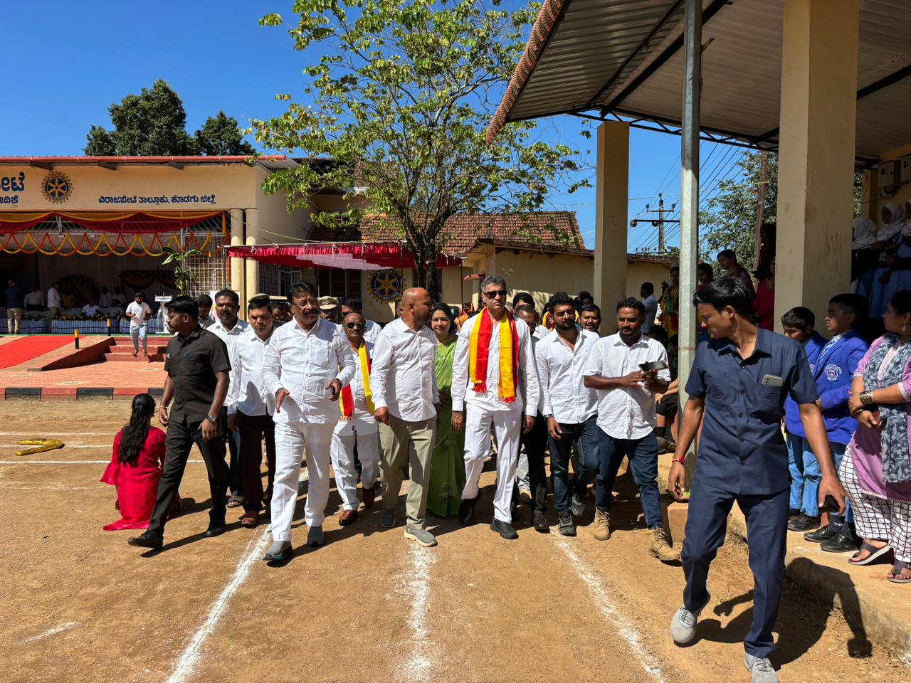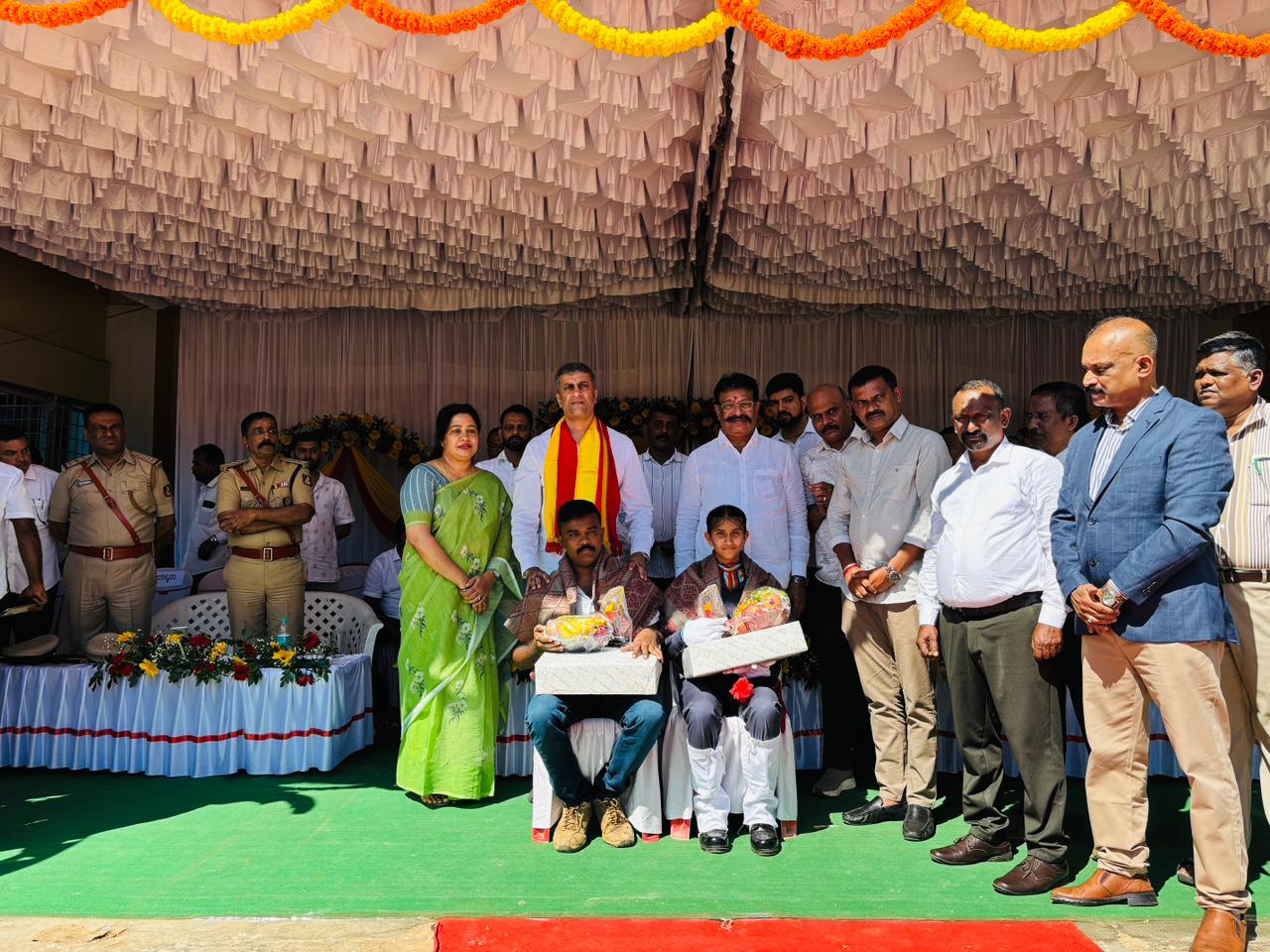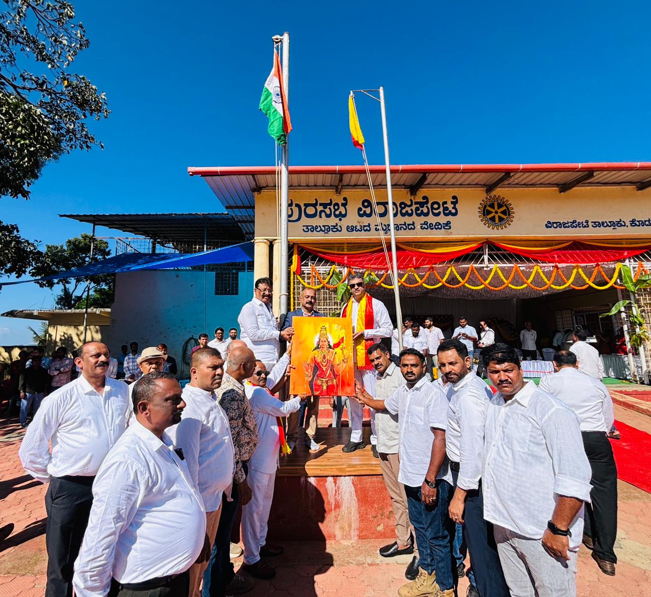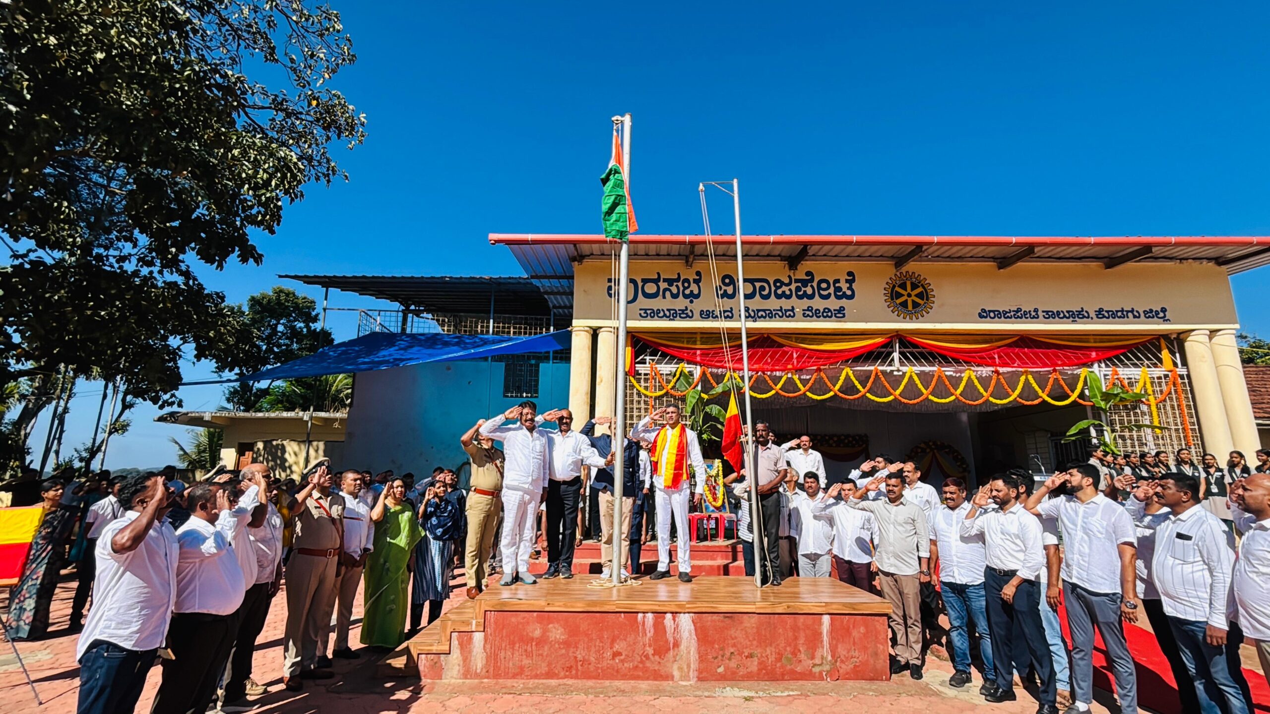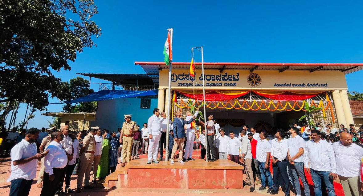 ವಿರಾಜಪೇಟೆ ನ.1 NEW DESK : ವಿರಾಜಪೇಟೆಯಲ್ಲಿ 70ನೇ ಕನ್ನಡ ರಾಜ್ಯೋತ್ಸವವನ್ನು ಸಂಭ್ರಮದಿಂದ ಆಚರಿಸಲಾಯಿತು. ವಿರಾಜಪೇಟೆಯ ತಾಲೂಕು ಮೈದಾನದಲ್ಲಿ ನಡೆದ ಕಾರ್ಯಕ್ರಮದಲ್ಲಿ ಮುಖ್ಯಮಂತ್ರಿಗಳ ಕಾನೂನು ಸಲಹೆಗಾರರು ಹಾಗೂ ವಿರಾಜಪೇಟೆ ಕ್ಷೇತ್ರದ ಶಾಸಕ ಎ.ಎಸ್.ಪೊನ್ನಣ್ಣ ಅವರು, ಕನ್ನಡ ಧ್ವಜಾರೋಹಣ ಮಾಡಿ, ಧ್ವಜ ವಂದನೆ ಸಲ್ಲಿಸಿದರು. ಬಳಿಕ ಗೌರವ ಸ್ವೀಕರಿಸಿ ಮಾತನಾಡಿದ ಶಾಸಕರು, ಸಮಸ್ತ ಕರ್ನಾಟಕದ ಜನತೆ ಇಂದು ಹೆಮ್ಮೆಪಡುವ ದಿನ. ನಮ್ಮ ಭಾಷೆ ನಮ್ಮ ನೆಲ ನಮ್ಮ ಜಲ ಸದಾ ನಮ್ಮೊಂದಿಗಿರುತ್ತದೆ. ನಮ್ಮತನವನ್ನು ಸದಾ ಉಳಿಸಿಕೊಳ್ಳಲು ನಾವು ನಮ್ಮ ಭಾಷೆಗೆ ನೀಡುವ ಗೌರವ, ಅಭಿಮಾನದಿಂದ ಪೋಷಿಸುವ ರೀತಿಯ ಮೇಲೆ ಅವಲಂಬಿತವಾಗಿರುತ್ತದೆ. ಕನ್ನಡ ಭಾಷೆಯ ಬಗ್ಗೆನ ಅಭಿಮಾನ ಕೇವಲ ಒಂದು ದಿನಕ್ಕೆ ಮಾತ್ರ ಸೀಮಿತವಾಗದೆ, ಸದಾ ಕನ್ನಡಾಭಿಮಾನ, ಕನ್ನಡದ ನಾಡು, ಜಲ, ಭಾಷೆಯ ಬಗ್ಗೆ ಪ್ರೇಮವನ್ನು ನಾವೆಲ್ಲರೂ ಬೆಳೆಸಿಕೊಳ್ಳಬೇಕೆಂದು ಕರೆ ನೀಡಿದರು. ಈ ಸಂದರ್ಭದಲ್ಲಿ ವಿಧಾನ ಪರಿಷತ್ ಸದಸ್ಯರು ಸುಜಾ ಕುಶಾಲಪ್ಪ, ತಾಲ್ಲೂಕು ಗ್ಯಾರಂಟಿ ಅನುಷ್ಠಾನ ಸಮಿತಿಯ ಅಧ್ಯಕ್ಷರು ಜಾನ್ಸನ್, ತಹಶೀಲ್ದಾರ್ ಪ್ರವೀಣ್, ಪುರಸಭೆ ಉಪಅಧ್ಯಕ್ಷೆ ಫಸಿಯಾ ತಬ್ಸುಂ, ಪುರಸಭೆ ಸದಸ್ಯರು ರಂಜಿ ಪೂಣಚ್ಚ, ಮತೀನ್, ರಾಫಿ, ರಾಜೇಶ್, ರವಿ, ದಿನೇಶ್, ಬೆನ್ನಿ, ಹಮೀದ್, ಅತಿಫ್, ಪೊಲೀಸ್ ಅಧಿಕಾರಿಗಳು ಹಾಗೂ ವೇದಿಕೆ ಮೇಲೆ ಉಪಸ್ಥಿತರಿರುವ ಎಲ್ಲಾ ಗಣ್ಯರು ಇದ್ದರು.