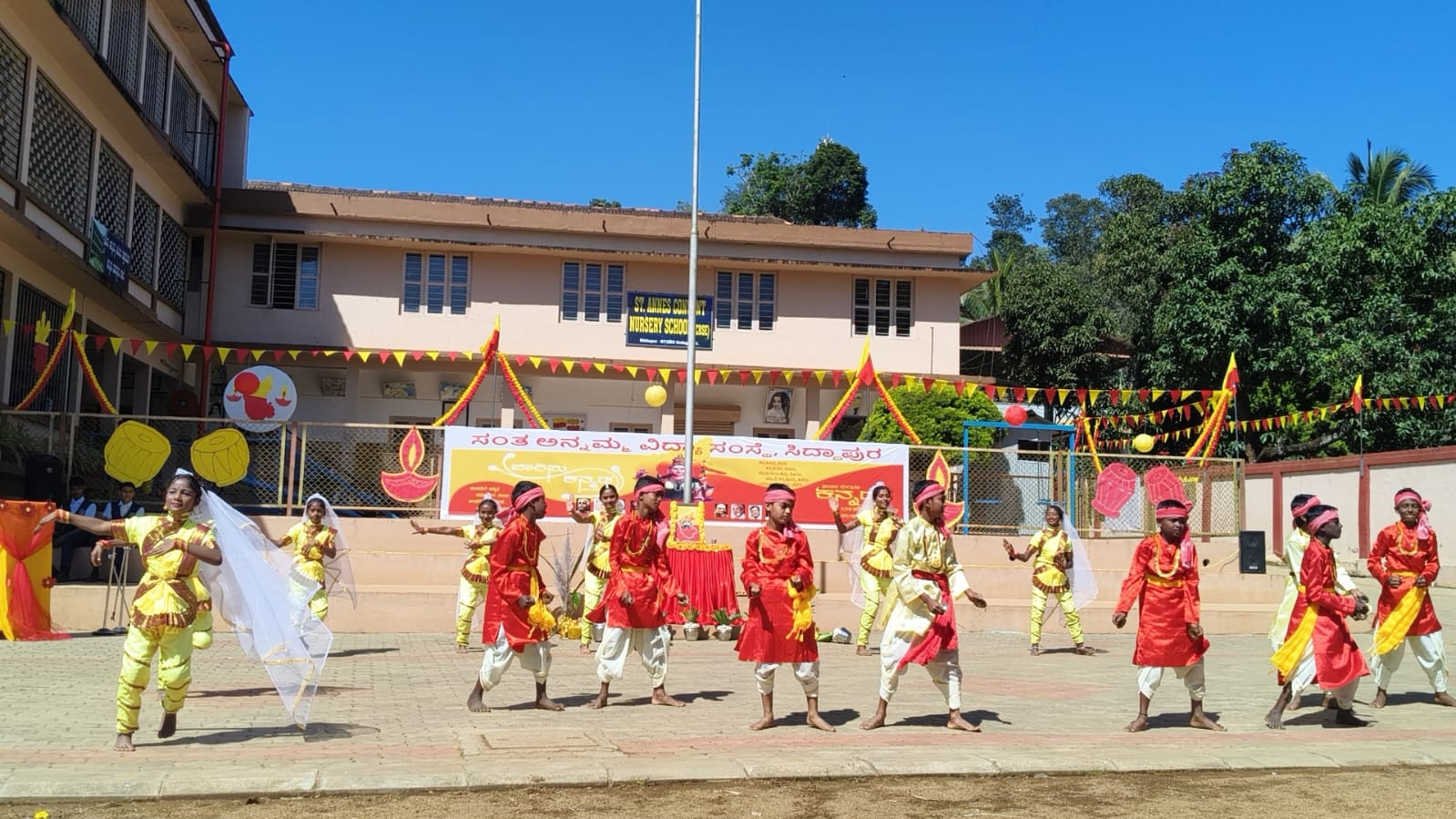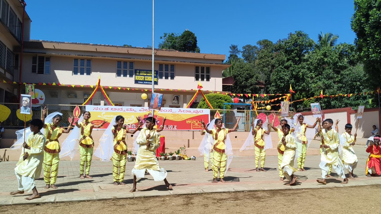 ಮಡಿಕೇರಿ ನ.3 NEWS DESK : ಸಿದ್ದಾಪುರ ಸಂತ ಅನ್ನಮ್ಮ ವಿದ್ಯಾಸಂಸ್ಥೆಯಲ್ಲಿ 70ನೇ ಕನ್ನಡ ರಾಜ್ಯೋತ್ಸವವನ್ನು ಅರ್ಥಪೂರ್ಣವಾಗಿ ಆಚರಿಸಲಾಯಿತು. ಶಾಲಾ ಆವರಣದಲ್ಲಿ ನಡೆದ ಕಾರ್ಯಕ್ರಮದಲ್ಲಿ ಮುಖ್ಯ ಅತಿಥಿಯಾಗಿ ಪಾಲ್ಗೊಂಡ ಕೊಡವ, ಕನ್ನಡ ಭಾಷೆಯ ಸಾಹಿತಿ ಮಂಡೇಪಂಡ ಗೀತಾ ಮಂದಣ್ಣ ಮಾತನಾಡಿ, ಭಾಷಾವಾರು ಪ್ರಾಂತ್ಯದ ಪ್ರಕಾರ ಕನ್ನಡ ನಾಡನ್ನ ಮೈಸೂರು ಸಂಸ್ಥಾನ ಮಾಡಿ ನಂತರ ಕರ್ನಾಟಕ ರಾಜ್ಯ ಎಂದು ಗುರುತು ಮಾಡಿ ಕನ್ನಡ ರಾಜ್ಯೋತ್ಸವವನ್ನು ಆಚರಣೆ ಮಾಡಲಾಗುತ್ತಿದೆ. ನಮ್ಮ ಕರ್ನಾಟಕ ಕನ್ನಡ ಭಾಷೆ, ಸಂಸ್ಕೃತಿ, ಸಿರಿವಂತಿಕೆಯಲ್ಲಿ, ವಿದ್ಯೆಯಲ್ಲಿ, ಸಾಹಿತ್ಯದಲ್ಲಿ, ಉದ್ಯೋಗದಲ್ಲಿ, ಮುಂಚೂಣಿಯಲ್ಲಿದೆ. ಆದರೆ ಇತ್ತೀಚಿನ ವರ್ಷಗಳಲ್ಲಿ ಕನ್ನಡವನ್ನು ಬೆಳೆಸುವುದು ಹಾಗೂ ಕನ್ನಡದಲ್ಲಿ ಮಾತನಾಡುವುದು ತುಂಬ ಕುಂಠಿತವಾಗುತ್ತಿದೆ ಹಾಗೂ ಇಂಗ್ಲೀಷ್ ಪ್ರಭಾವ ಹೆಚ್ಚಾಗುತ್ತಿದ್ದು, ಮುಂದಿನ ದಿನಗಳಲ್ಲಿ ಕನ್ನಡ ಭಾಷೆಯನ್ನು ನಮ್ಮ ದೈನಂದಿನ ಬದುಕಿನಲ್ಲಿ ಬಳಸಬೇಕು ಹಾಗೂ ನಾಡು ನುಡಿಯನ್ನು ಗೌರವಿಸಿ ಪೋಷಿಸುವ ಕೆಲಸವಾಗಬೇಕು ಎಂದರು. ಕಾರ್ಯಕ್ರಮದ ಅಧ್ಯಕ್ಷತೆಯನ್ನು ಅನ್ನಮ್ಮ ಶಾಲೆಯ ವ್ಯವಸ್ಥಾಪಕಿ ಮಾರ್ಜರಿ ವಹಿಸಿದರು. ಸಂತ ಅನ್ನಮ್ಮ ಶಾಲೆಯ ಪ್ರಾಂಶುಪಾಲೆ ಲೆನಿಟ್, ಕಾಲೇಜು ಪ್ರಾಂಶುಪಾಲೆ ರಜಿನ ತೋಮಸ್,