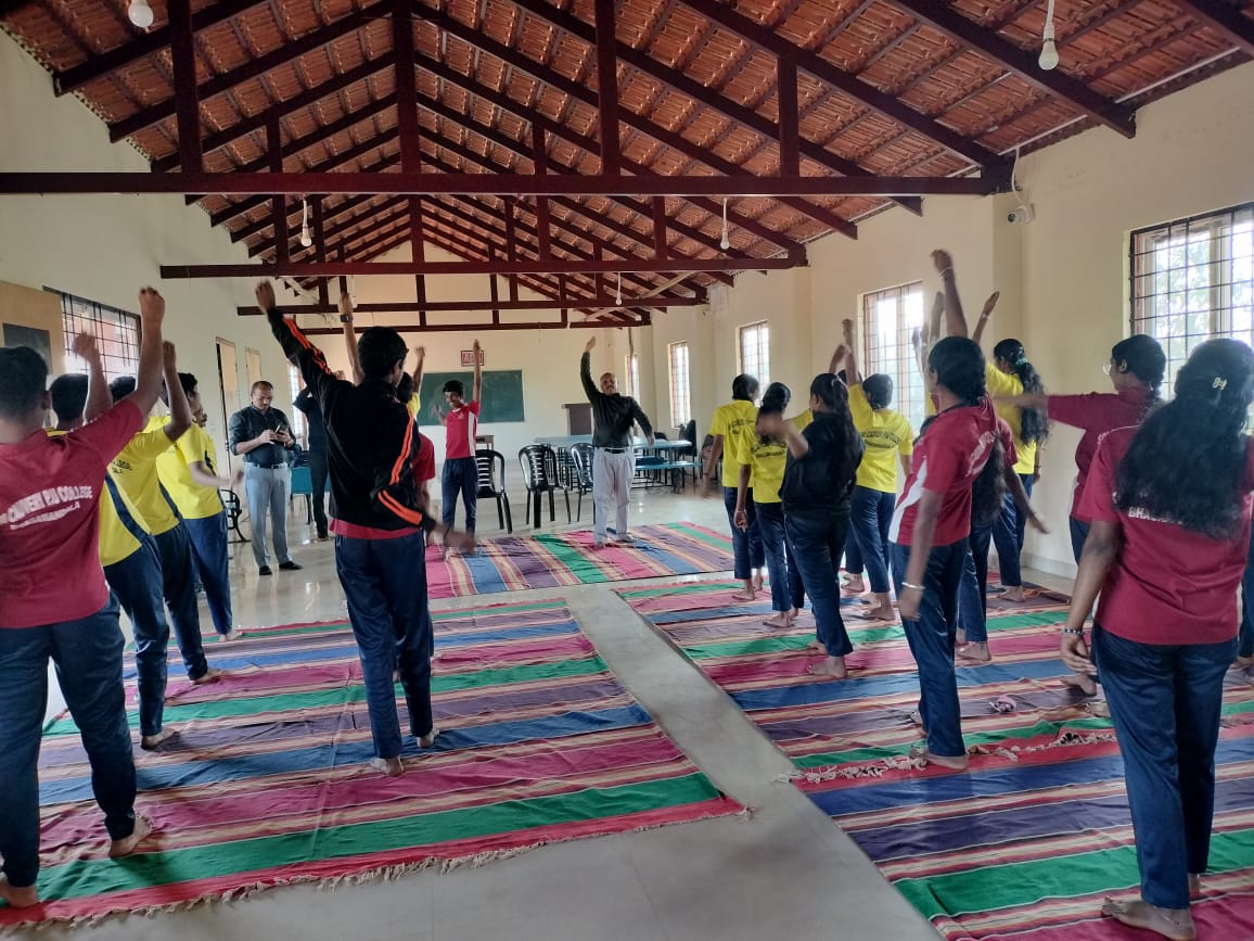 ಮಡಿಕೇರಿ ಡಿ.24 NEWS DESK : ಭಾಗಮಂಡಲದ ಶ್ರೀ ಕಾವೇರಿ ಪದವಿ ಪೂರ್ವ ಕಾಲೇಜಿನಲ್ಲಿ ವಿದ್ಯಾರ್ಥಿಗಳಿಗೆ ವ್ಯಕ್ತಿತ್ವದ ವಿಕಸನ ಕುರಿತಾಗಿ ಸರಳ ಶಾರೀರಿಕ ವ್ಯಾಯಾಮದ ಶಿಬಿರ ನಡೆಯಿತು. ಗೋಣಿಕೊಪ್ಪಲಿನ ಹೊಳೆಕರೆ ಚಂಗಪ್ಪ ಅವರು ವಿದ್ಯಾರ್ಥಿಗಳಿಗೆ ವ್ಯಾಯಾಮದ ಆಯಾಮಗಳನ್ನು ಹೇಳಿಕೊಟ್ಟರು. ಅಲ್ಲದೇ ವಿದ್ಯಾರ್ಥಿಗಳಿಗೆ ಚಂಗಪ್ಪ ಅವರು ಬರೆದ “ಬದಕ್ ನ ಸಿನ್ಮಲಿ ಒಂದು ಒಳ್ಳ ಪಾರ್ಟ್” ಎಂಬ ಪುಸ್ತಕವನ್ನು ಉಚಿತವಾಗಿ ವಿತರಿಸಿದರು. ಕಾಲೇಜಿನ ಪ್ರಾಂಶುಪಾಲರಾದ ಕೆ.ಜೆ.ದಿವಾಕರ್ ಮತ್ತು ರಾಜ್ಯಶಾಸ್ತ್ರ ಉಪನ್ಯಾಸಕರಾದ ದಾಮೋದರ್ ನಾಯಕ್  ಉಪಸ್ಥಿತರಿದ್ದರು.
