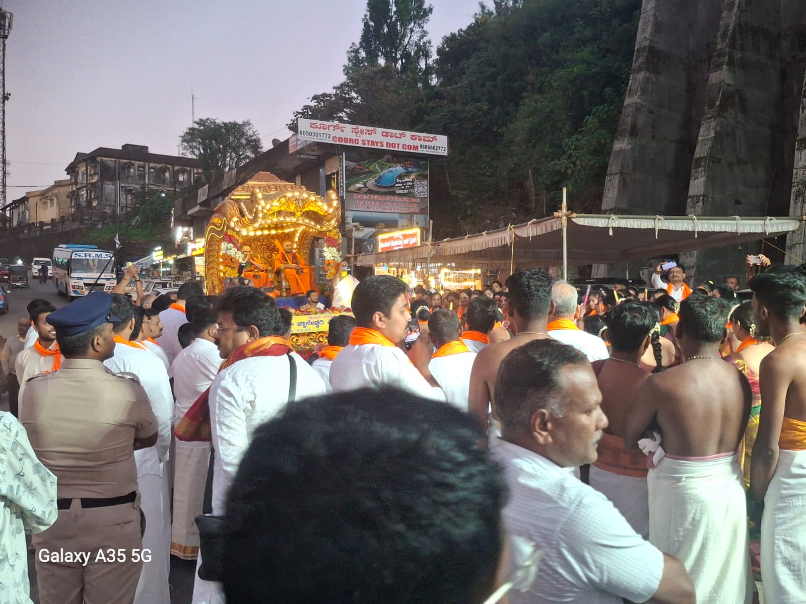 ಮಡಿಕೇರಿ ಜ.10 NEWS DESK : ದೈವಜ್ಞ ಬ್ರಾಹ್ಮಣ ಸಮಾಜದ ವತಿಯಿಂದ ಮಡಿಕೇರಿಯಲ್ಲಿ ಜಗದ್ಗುರು ಶಂಕರಾಚಾರ್ಯ ಸಂಸ್ಥಾನ ದೈವಜ್ಞ ಬ್ರಾಹ್ಮಣ ಮಠಾಧೀಶರಾದ ಶ್ರೀ ಶ್ರೀ ಸಚ್ಚಿದಾನಂದ ಜ್ಞಾನೇಶ್ವರ ಭಾರತೀ ಮಹಾಸ್ವಾಮೀಜಿ ಹಾಗೂ ಶ್ರೀಶ್ರೀ ಸುಜ್ಞಾನೇಶ್ವರ ಭಾರತೀ ಸ್ವಾಮೀಜಿಗಳ ದೈವಜ್ಞ ದರ್ಶನ ಕಾರ್ಯಕ್ರಮ ನಡೆಯಿತು. ಶ್ರೀಗಳ ಪುರಪ್ರವೇಶದ ನಂತರ ಪೂರ್ಣ ಕುಂಭ ಮೆರವಣಿಗೆ ನಗರದ ಹಳೇ ಖಾಸಗಿ ಬಸ್ ನಿಲ್ದಾಣದಿಂದ ಚೌಡೇಶ್ವರಿ ದೇವಾಲಯದವರೆಗೆ ಸಾಗಿತು. ನಂತರ ಶ್ರೀಗಳ ಪಾದುಕಾ ಪೂಜೆ, ಶ್ರೀಗಳಿಂದ ಆಶೀರ್ವಚನ, ಫುಲಪುಷ್ಪ ಸಮರ್ಪಣೆ, ಫಲ ಮಂತ್ರಾಕ್ಷತೆ ನೆರವೇರಿತು. ಸ್ವಾಮೀಜಿಗಳ ಭವ್ಯ ಸ್ವಾಗತಕ್ಕಾಗಿ ನಗರದ ಮಹದೇವಪೇಟೆ ಹಾಗೂ ಶ್ರೀಚೌಡೇಶ್ವರಿ ದೇವಾಲಯವನ್ನು ತಳಿರು ತೋರಣ, ವಿದ್ಯುತ್ ದೀಪಗಳಿಂದ ಆಕರ್ಷಣೀಯವಾಗಿ ಅಲಂಕಾರಗೊಳಿಸಲಾಗಿತ್ತು. ದೈವಜ್ಞ ಬ್ರಾಹ್ಮಣ ಸಮಾಜದ ಬಂಧುಗಳು ಹಾಗೂ ಭಕ್ತರು ಹೆಚ್ಚಿನ ಸಂಖ್ಯೆಯಲ್ಲಿ ಪಾಲ್ಗೊಂಡಿದ್ದರು.
