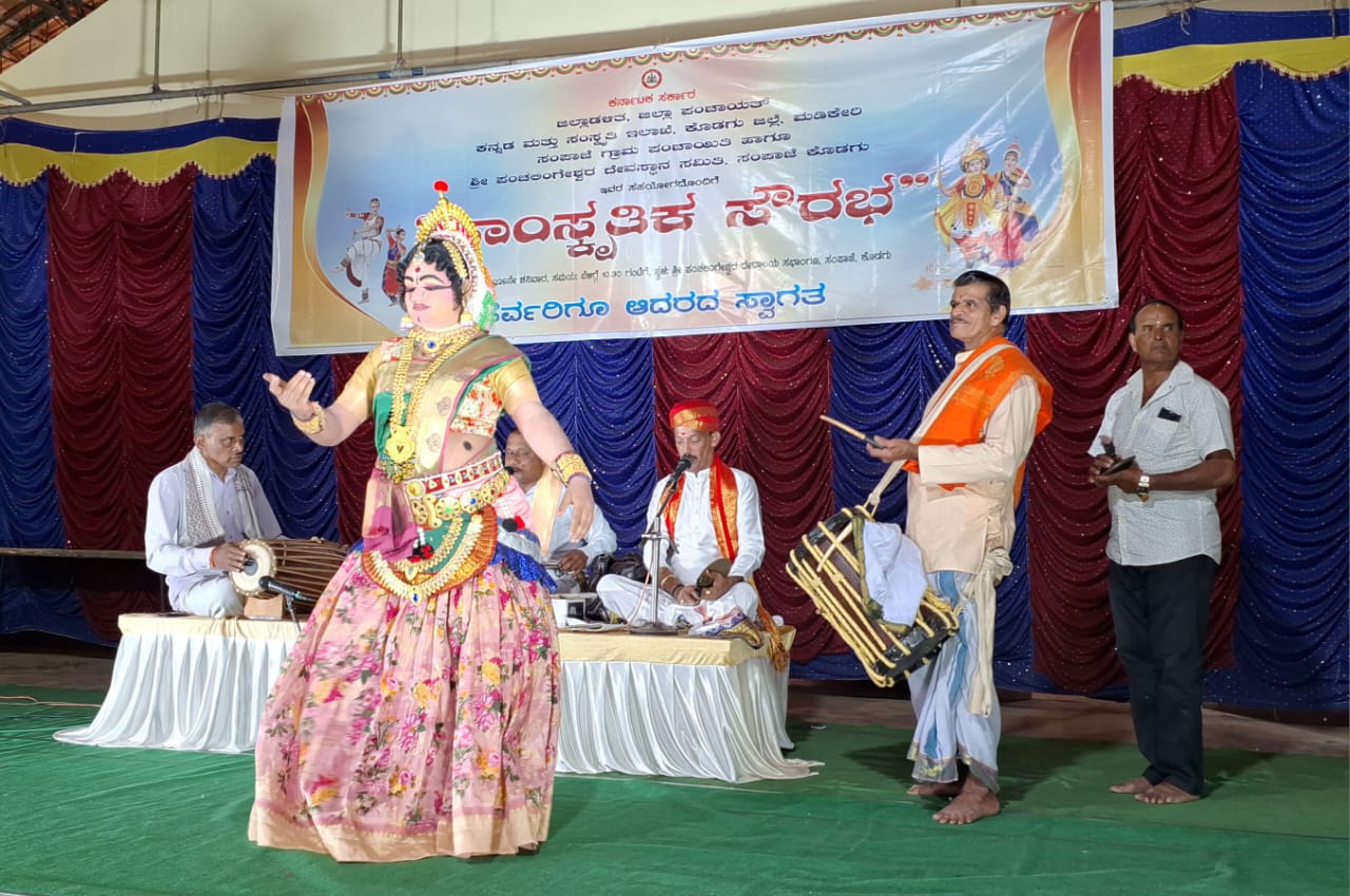 ಮಡಿಕೇರಿ ಜ.17 NEWS DESK : ಯಕ್ಷಗಾನ, ಡೊಳ್ಳುಕುಣಿತ, ಪೂಜಾಕುಣಿತ, ಜಾನಪದ ಗಾಯನ, ಭರತನಾಟ್ಯ, ಸುಗಮ ಸಂಗೀತ ಹೀಗೆ ಹಲವು ಕಲೆಗಳು ನಾಡನ್ನು ಪ್ರತಿಬಿಂಭಿಸುತ್ತಿದ್ದು, ಅವುಗಳನ್ನು ಉಳಿಸಿ ಬೆಳೆಸುವಂತಾಗಬೇಕು. ಜೊತೆಗೆ ಕಲೆಗೆ ಹೆಚ್ಚಿನ ಪ್ರೋತ್ಸಾಹ ನೀಡುವಂತಾಗಬೇಕು ಎಂದು ಸಂಪಾಜೆ ಗ್ರಾ.ಪಂ ಅಧ್ಯಕ್ಷರಾದ ರಮಾದೇವಿ ಕಳಗಿ ಅವರು ತಿಳಿಸಿದ್ದಾರೆ. ಜಿಲ್ಲಾಡಳಿತ, ಜಿಲ್ಲಾ ಪಂಚಾಯತ್, ಕನ್ನಡ ಮತ್ತು ಸಂಸ್ಕೃತಿ ಇಲಾಖೆ, ಸಂಪಾಜೆ ಗ್ರಾಮ ಪಂಚಾಯಿತಿ ಹಾಗೂ ಸಂಪಾಜೆ ಶ್ರೀ ಪಂಚಲಿಂಗೇಶ್ವರ ದೇವಸ್ಥಾನ ಸಮಿತಿ ಇವರ ಸಹಯೋಗದೊಂದಿಗೆ ಸಂಪಾಜೆ ಶ್ರೀ ಪಂಚಲಿಂಗೇಶ್ವರ ದೇವಾಲಯದ ಸಭಾಂಗಣದಲ್ಲಿ ಶನಿವಾರ ನಡೆದ ‘ಸಾಂಸ್ಕøತಿಕ ಸೌರಭ’ ಕಾರ್ಯಕ್ರಮಕ್ಕೆ ಚಾಲನೆ ನೀಡಿ ಅವರು ಮಾತನಾಡಿದರು. ಸಾಂಸ್ಕøತಿಕ ಹಾಗೂ ಜಾನಪದ ಕಲೆಗಳು ನಾಡಿನ ಅಸ್ಮಿತೆಯನ್ನು ಪ್ರತಿಬಿಂಭಿಸುತ್ತಿದ್ದು, ಕಲೆಗಳಿಗೆ ಹೆಚ್ಚಿನ ಪ್ರೋತ್ಸಾಹ ನೀಡಿದ್ದಲ್ಲಿ ಯುವಜನರು ತೊಡಗಿಸಿಕೊಳ್ಳಲು ಸಹಕಾರಿಯಾಗಲಿದೆ ಎಂದು ಅವರು ಅಭಿಪ್ರಾಯಪಟ್ಟರು. ಯಕ್ಷಗಾನ, ಜಾನಪದ ಸೋಭಾನೆ ಸೇರಿದಂತೆ ಜಾನಪದ ಕಲೆಗಳು ಹಿಂದಿನ ಐತಿಹಾಸಿಕವಾಗಿ ಮಹತ್ವದ ಪರಂಪರೆಯನ್ನು ಹೊಂದಿದ್ದು, ಗ್ರಾಮೀಣ ಪ್ರದೇಶದ ಸೊಗಡನ್ನು ತಿಳಿಸುತ್ತವೆ. ಆ ನಿಟ್ಟಿನಲ್ಲಿ ನಾಡಿನ ವಿವಿಧ ಕಲಾ ಪ್ರಕಾರಗಳಿಗೆ ಉತ್ತೇಜನ ನೀಡುವಂತಾಗಬೇಕು ಎಂದು ಹೇಳಿದರು. ಕನ್ನಡ ಜಾಗೃತಿ ಸಮಿತಿ ಸದಸ್ಯರಾದ ಬಿ.ಎಸ್.ಲೋಕೇಶ್ ಸಾಗರ್ ಅವರು ಮಾತನಾಡಿ ಕೊಡಗು ಜಿಲ್ಲೆ ಸಾಂಸ್ಕøತಿಕವಾಗಿ ಶ್ರೀಮಂತಿಕೆಯನ್ನು ಹೊಂದಿದ್ದು, ಹಲವು ಜನಪದ ಹಾಗೂ ಸಾಂಸ್ಕøತಿಕ ಕಲಾ ಪ್ರಕಾರಗಳನ್ನು ಕಾಣಬಹುದಾಗಿದೆ ಎಂದು ಹೇಳಿದರು. ಸಾಂಸ್ಕøತಿಕ ಮತ್ತು ಜಾನಪದ ಕಲೆಗಳು ಉಳಿದಲ್ಲಿ ನಾಡಿನ ಸಂಸ್ಕøತಿಯನ್ನು ಉಳಿಸಲು ಸಾಧ್ಯ. ಆ ದಿಸೆಯಲ್ಲಿ ಗ್ರಾಮೀಣ ಪ್ರದೇಶದಲ್ಲಿಯೂ ಕಲೆಗಳ ಮಹತ್ವ ಸಾರುವಲ್ಲಿ ಸಾಂಸ್ಕೃತಿಕ ಸೌರಭ ಸಹಕಾರಿಯಾಗಿದೆ ಎಂದು ಅವರು ಅಭಿಪ್ರಾಯಪಟ್ಟರು. ಗಮಕ ಕಲಾವಿದರಾದ ಗಣೇಶ್ ಉಡುಪ ಅವರು ಮಾತನಾಡಿ, ಗಮಕ ಸೇರಿದಂತೆ ಹಲವು ಜಾನಪದ ಕಲೆಗಳು ಅಪರೂಪದಲ್ಲಿ ಅಪರೂಪವಾಗಿದ್ದು, ಸಂಗೀತ ಮತ್ತು ವ್ಯಾಖ್ಯಾನದ ಮೂಲಕ ಗಮಕವನ್ನು ವಾಚಿಸಲಾಗುತ್ತದೆ. ಇದೊಂದು ಅದ್ಭುತ ಎಂದು ವಿವರಿಸಿದರು. ಸಂಪಾಜೆ ಶ್ರೀ ಪಂಚಲಿಂಗೇಶ್ವರ ದೇವಸ್ಥಾನದ ಅಧ್ಯಕ್ಷರಾದ ಜಯಕುಮಾರ್ ಚಿದ್ಕಾರು ಅವರು ಮಾತನಾಡಿದರು. ಬಿ.ಎಸ್.ಲೋಕೇಶ್ ಸಾಗರ್ ನಾಡಗೀತೆ ಹಾಡಿದರು. ಕನ್ನಡ ಮತ್ತು ಸಂಸ್ಕøತಿ ಇಲಾಖೆಯ ಸಹಾಯಕ ನಿರ್ದೇಶಕರಾದ ಕುಮಾರ ಸ್ವಾಗತಿಸಿದರು. ಎಚ್.ಜಿ.ಕುಮಾರ ನಿರೂಪಿಸಿದರು. ಮಣಜೂರು ಮಂಜುನಾಥ್ ವಂದಿಸಿದರು. ಕನ್ನಡ ಶಾಸ್ತ್ರೀಯ ಸಂಗೀತವನ್ನು ವಿರಾಜಪೇಟೆಯ ಸ್ವರ್ಣ ಸಂಗೀತ ಶಾಲೆಯ ದಿಲೀಪ್ ಕುಮಾರ್ ತಂಡದವರು ಕರ್ನಾಟಕ ಶಾಸ್ತ್ರೀಯ ಸಂಗೀತ ಹಾಡಿದರು. ಕುಶಾಲನಗರದ ಕನ್ನಡ ಸಿರಿ ಕಲಾ ವೃಂದದ ಬಿ.ಎಸ್.ಲೋಕೇಶ್ ಸಾಗರ್ ಸುಗಮ ಸಂಗೀತ ಹಾಡಿದರು. ಸೋಮವಾರಪೇಟೆಯ ಹಿರಿಯ ಆಕಾಶವಾಣಿ ಕಲಾವಿದ ಬಿ.ಎ.ಗಣೇಶ್ ಶಾಂತಳ್ಳಿ ಮತ್ತು ತಂಡದವರು ಜಾನಪದ ಗಾಯನ ಹಾಡಿದರು. ಸುಂಟಿಕೊಪ್ಪದ ಕುಮಾರಿ ವಿಧುಷಿ ಸ್ನೇಹಾ ಮತ್ತು ತಂಡದವರು ಭರತನಾಟ್ಯ ನೃತ್ಯ ಪ್ರದರ್ಶಿಸಿದರು. ಮಂಡ್ಯ ಜಿಲ್ಲೆಯ ವೀರಗಾಸೆ ಕುಣಿತದ ಪ್ರದೀಪ್ ಮತ್ತು ತಂಡದವರು ಡೊಳ್ಳು ಕುಣಿತ ಪ್ರದರ್ಶಿಸಿದರು. ಮಂಡ್ಯ ಜಿಲ್ಲೆಯ ಸಂತೋಷ್ ಕೆ.ಪಿ. ಮತ್ತು ತಂಡದವರು ವೀರಗಾಸೆ ಕುಣಿತ ಪ್ರದರ್ಶಿಸಿದರು. ಸುಳ್ಯ ತಾಲ್ಲೂಕಿನ ಯು