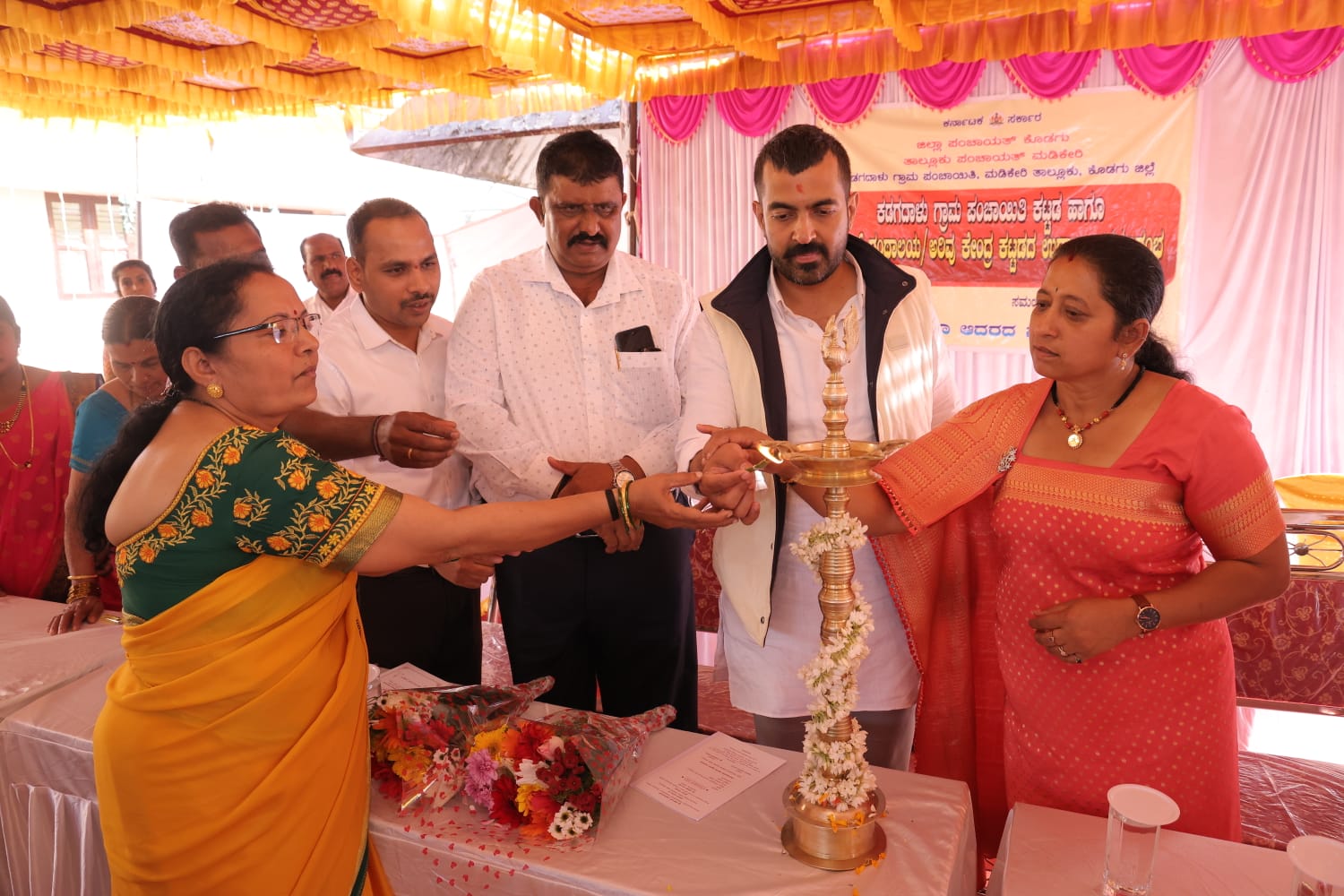 ಮಡಿಕೇರಿ ಜ.27 NEWS DESK : ಕಡಗದಳು ಗ್ರಾಮ ಪಂಚಾಯಿತಿಯ ನೂತನ ಕಟ್ಟಡವನ್ನು ಮಡಿಕೇರಿ ವಿಧಾನಸಭಾ ಕ್ಷೇತ್ರದ ಶಾಸಕ ಡಾ.ಮಂತರ್ ಗೌಡ ಅವರು ಉದ್ಘಾಟಿಸಿದರು. ಕಾರ್ಯಕ್ರಮದ ಅಧ್ಯಕ್ಷತೆಯನ್ನು ಗ್ರಾ.ಪಂ ಅಧ್ಯಕ್ಷರಾದ ನಂದಿನಿರವಂಡ ನಿರ್ಮಲ ವಹಿಸಿದ್ದರು, ವೇದಿಕೆಯಲ್ಲಿ ಉಪಾಧ್ಯಕ್ಷರಾದ ಯೋಗೇಶ್, ಶಕ್ತಿ ದಿನಪತ್ರಿಕೆ ಸಂಪಾದಕರಾದ ಅನಂತಶಯನ, ತಾಲ್ಲೂಕು ಗ್ಯಾರಂಟಿ ಅನುಷ್ಠಾನ ಸಮಿತಿಯ ಅಧ್ಯಕ್ಷ ಮಂಡೀರ ಮೋಹನ್ದಾಸ್, ಮಡಿಕೇರಿ ತಾಲೂಕು ಕಾರ್ಯ ನಿರ್ವಹಣಾ ಅಧಿಕಾರಿ ಶೇಖರ್, ಹೊದ್ದೂರು ಗ್ರಾಮ ಪಂಚಾಯಿತಿ ಹಾಗೂ ಮಡಿಕೇರಿ ಬ್ಲಾಕ್ ಕಾಂಗ್ರೆಸ್ ಅಧ್ಯಕ್ಷ ಹೆಚ್.ಎ.ಹಂಸ, ಮಡಿಕೇರಿ ಬ್ಲಾಕ್ ಕಾಂಗ್ರೆಸ್ ಪ್ರಧಾನ ಕಾರ್ಯದರ್ಶಿ ಹಾಗೂ ಕಟ್ಟಡ ಗುತ್ತಿಗೆದಾರ ಎಂ.ಎನ್.ರವೂಫ್, ಗ್ರಾ.ಪಂ ಮಾಜಿ ಅಧ್ಯಕ್ಷ ಶಂಭಯ್ಯ, ಜಯಣ್ಣ ಹಾಗೂ ಭಾರತಿ, ಪಂಚಾಯಿತಿ ಸದಸ್ಯರಾದ ಪುಷ್ಪವತಿ ರೈ, ರೋಹಿಣಿ, ಗೀತಾ, ಆನಂದ, ಪ್ರಭಾ, ರಜಿನಾ ಕಾರ್ಯಪಾಲಕ ಇಂಜಿನಿಯರ್ ಜಯಣ್ಣ ಮತ್ತು ಕಿರಿಯ ಅಭಿಯಂತರರುಗಳಾದ ರಘುಕುಮಾರ್, ಯಶಸ್ವಿನಿ ಉಪಸ್ಥಿತರಿದ್ದರು. ಆಡಳಿತ ಅಧಿಕಾರಿ ಅನಿತಾ ಸ್ವಾಗತಿಸಿದರು.