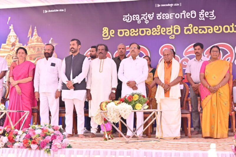 ಮಡಿಕೇರಿ NEWS DESK ಫೆ.16 : ಮಡಿಕೇರಿಯ ಕರ್ಣಂಗೇರಿ ಕ್ಷೇತ್ರದ ಶ್ರೀ ರಾಜರಾಜೇಶ್ವರಿ ದೇವಾಲಯದಲ್ಲಿ ಮಹಾಶಿವರಾತ್ರಿ ಸಂಭ್ರಮ ಅದ್ದೂರಿಯಾಗಿ ನಡೆಯಿತು. ಶ್ರೀ ರಾಜರಾಜೇಶ್ವರಿ ಕ್ಷೇತ್ರದಲ್ಲಿರುವ ಕಾಶಿಲಿಂಗಕ್ಕೆ ಕ್ಷೀರಾಭಿಷೇಕ ಹಾಗೂ ಪಂಚಾಮೃತ ಅಭಿಷೇಕ ಶ್ರದ್ಧಾಭಕ್ತಿಯಿಂದ ಜರುಗಿತು. ದೇವಾಲಯದಲ್ಲಿ ಸ್ಥಾಪಿಸಲಾಗಿರುವ 52 ಅಡಿ ಎತ್ತರದ ಶಿವನ ವಿಗ್ರಹದ ಸುತ್ತ ಇರುವ ಪಂಚಲಿಂಗಗಳು ಮತ್ತು 109 ಲಿಂಗಗಳಿಗೆ ವಿಶೇಷ ಅಭಿಷೇಕ, ಅಲಂಕಾರ ಮತ್ತು ಪೂಜೆ ನೆರವೇರಿತು.