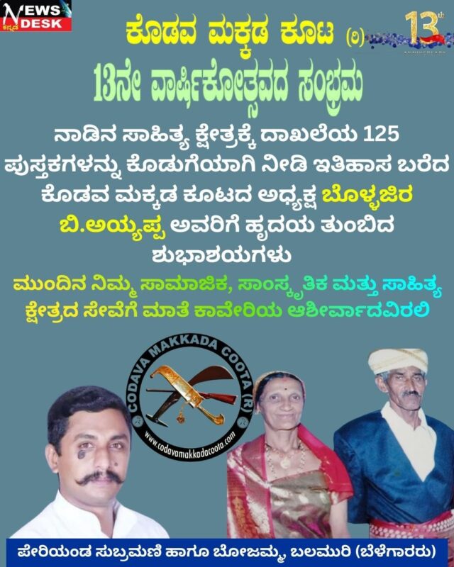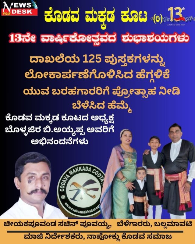 ಮಡಿಕೇರಿ, NEWS DESK ಫೆ.17: ಕರ್ನಾಟಕ ಬ್ಯಾರಿ ಸಾಹಿತ್ಯ ಅಕಾಡೆಮಿಯ ಆಶ್ರಯದಲ್ಲಿ ಕೊಡಗು ಜಿಲ್ಲಾ ಬ್ಯಾರಿ ವೆಲ್ಫೇರ್ ಟ್ರಸ್ಟ್ನ ಸಹಯೋಗದೊಂದಿಗೆ ಎಪ್ರಿಲ್ 28ರಂದು ಮಡಿಕೇರಿಯಲ್ಲಿ ಕೊಡಗು ಜಿಲ್ಲಾ ಬ್ಯಾರಿ ಸಾಹಿತ್ಯ ಸಮ್ಮೇಳನ ನಡೆಯಲಿದೆ. ಮೊನ್ನೆ ಮಡಿಕೇರಿಯಲ್ಲಿ ನಡೆದ ಕೊಡಗು ಜಿಲ್ಲಾ ಬ್ಯಾರಿ ವೆಲ್ಫೇರ್ ಟ್ರಸ್ಟ್ನ ಸಭೆಯಲ್ಲಿ ಈ ನಿರ್ಣಯ ಕೈಗೊಳ್ಳಲಾಗಿದ್ದು, ಸಮ್ಮೇಳನದ ಅಂಗವಾಗಿ ಮಹಿಳೆಯರು, ಪುರುಷರು ಮತ್ತು ಮಕ್ಕಳಿಗೆ ವಿವಿಧ ಸ್ಪರ್ಧೆಗಳನ್ನು ಏರ್ಪಡಿಸಲಾಗುವುದು.