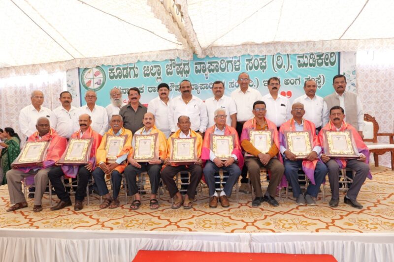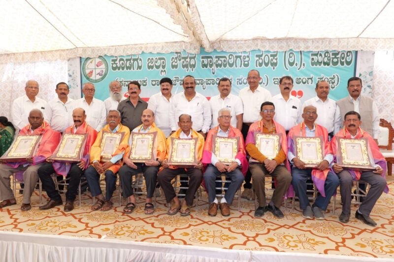 ಕೊಡಗು ಜಿಲ್ಲಾ ಔಷಧ ವ್ಯಾಪಾರಿಗಳ ಸಂಘದಿಂದ ನಿಮಿ೯ಸಲಾದ ಫಾಮಾ೯ ಭವನದ ಉದ್ಘಾಟನೆ ಸಂದಭ೯ ಹಿರಿಯ ಔಷಧ ವ್ಯಾಪಾರಸ್ಥರನ್ನು ಸನ್ಮಾನಿಸಿ ಗೌರವಿಸಲಾಯಿತು