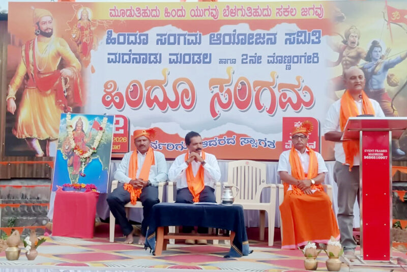 ನಾಪೋಕ್ಲು ಫೆ.23 NEWS DESK : ಹಿಂದೂ ಸಂಘಟನೆಯ ಮೂಲಕ ರಾಷ್ಟ್ರವನ್ನು ಕಟ್ಟುವ ಕೆಲಸವನ್ನು ಮಾಡುತ್ತಿದೆ ಎಂದು ರಾಷ್ಟ್ರೀಯ ಸ್ವಯಂಸೇವಕ ಸಂಘದ ಜಿಲ್ಲಾ ಸಹ ಕಾರ್ಯವಾಹಕ ಮಿರನ್ ಕುಟ್ಟಪ್ಪ ಹೇಳಿದರು. ಮದೆನಾಡಿನಲ್ಲಿ ಆಯೋಜಿಸಲಾಗಿದ್ದ ಹಿಂದೂ ಸಮಾವೇಶದಲ್ಲಿ ಮುಖ್ಯ ಭಾಷಣಕಾರರಾಗಿ ಪಾಲ್ಗೊಂಡು ಅವರು ಮಾತನಾಡಿದರು. ರಾಷ್ಟ್ರದ ಅನೇಕ ಸವಾಲು ಮತ್ತು ಸಮಸ್ಯೆಗಳಿಗೆ ಉತ್ತರವನ್ನು ನೀಡುತ್ತಾ ನೂರು ವರ್ಷಗಳು ತುಂಬುವ ಸಂದರ್ಭದಲ್ಲಿ ವಿಶ್ವವೇ ಭಾರತವನ್ನು ತಿರುಗಿ ನೋಡುವಂತೆ ಬಲಾಢ್ಯ ಭಾರತವನ್ನು ಕಟ್ಟಿದೆ. ಭವಿಷ್ಯದಲ್ಲಿ ವಸುದೈವ ಕುಟುಂಬ ಎನ್ನುವ ಕಲ್ಪನೆಯನ್ನು ಸಾಕಾರಗೊಳಿಸುವ ಸಲುವಾಗಿ ಜಗತ್ತೇ ಒಂದು ಕುಟುಂಬ ಇದು ಹಿಂದುತ್ವದ ಪರಿಕಲ್ಪನೆ ಕೇವಲ ಒಂದು ಸಂಘಟನೆ ಒಂದು ರಾಷ್ಟ್ರವನ್ನು ಕಟ್ಟಲು ಸಾಧ್ಯವಿಲ್ಲ ಎಂದರು. ಸಮಾಜದ ಪ್ರತಿಯೊಬ್ಬ ವ್ಯಕ್ತಿಯು ಭಾರತವನ್ನು ಪ್ರೀತಿಸಬೇಕು ಆ ಮೂಲಕ ರಾಷ್ಟ್ರಕಟ್ಟುವ ಕಾರ್ಯದಲ್ಲಿ ತಮ್ಮಿಂದಾಗುವ ಕೆಲಸವನ್ನು ಕೈಗೊಳ್ಳಬೇಕು ಸಂಘಕ್ಕೆ ನೂರು ವರ್ಷ ತುಂಬಿರುವ ಈ ಸಂದರ್ಭದಲ್ಲಿ ಪಂಚ ವಿಷಯಗಳಲ್ಲಿ ಪರಿವರ್ತನೆಯನ್ನು ಸಂಗ್ರಹಿಸಿದೆ ಕುಟುಂಬ ಪ್ರಬೋಧನ, ಸಾಮಾಜಿಕ ಪರಿವರ್ತನೆ, ಸ್ವದೇಶಿ ಭಾವನೆ, ಪರಿಸರ ಕಾಳಜಿ, ನಾಗರಿಕ ಶಿಷ್ಟಾಚಾರ ದೇಶದ ಪ್ರತಿಯೊಂದು ಮನೆಯೂ ಕುಟುಂಬ ವ್ಯವಸ್ಥೆಯನ್ನು ಉಳಿಸಿಕೊಳ್ಳಬೇಕು ಮನೆಯ ಮಕ್ಕಳು ದೇಶದ ಸಂಸ್ಕೃತಿ ಸನಾತನ ಪರಂಪರೆಯ ಬಗ್ಗೆ ಗೌರವ ಭಾವನೆಯನ್ನು ಬೆಳೆಸಿಕೊಳ್ಳಬೇಕು. ನಮ್ಮೆಲ್ಲ ಜಾತಿ ಮತ ಪಕ್ಷ ಪಂತಗಳನ್ನು ಮರೆತು ನಾವೆಲ್ಲ ಒಂದು, ನಾವೆಲ್ಲ ಹಿಂದೂ ಎನ್ನುವ ಭಾವನೆಯನ್ನು ಮೈಗೂಡಿಸಿಕೊಳ್ಳಬೇಕು ಎಂದರು. ನಾಗರೀಕರಾಗಿ ಸಮಾಜದಲ್ಲಿ ಶಿಷ್ಟಾಚಾರದಲ್ಲಿ ತೊಡೆದುಕೊಳ್ಳಬೇಕು ಪ್ರಕೃತಿ ಇದ್ದರೆ ಮಾತ್ರ ನಾವು ನಮ್ಮಿಂದ ಪ್ರಕೃತಿಯಲ್ಲ ಪರಿಸರವನ್ನು ಉಳಿಸುವುದು ನಮ್ಮೆಲ್ಲರ ಜವಾಬ್ದಾರಿ ಅದೇ ರೀತಿಯಲ್ಲಿ ಸ್ವದೇಶಿ ಭಾವನೆ ಸ್ವದೇಶಿ ಉಡುಪು, ಸ್ವದೇಶಿ ಭಾಷೆ ಬಳಸುವುದರ ಮೂಲಕ ದೇಶದವನು ಕಟ್ಟುವ ಪಂಚ ಪರಿವರ್ತನೆಯಲ್ಲಿ ಪ್ರತಿಯೊಬ್ಬ ಹಿಂದೂ ಪಾಲ್ಗೊಳ್ಳಬೇಕೆಂಬ ಕರೆಯನ್ನು ನೀಡಿದರು. ಪ್ರಸ್ತಾವಿಕವಾಗಿ ಮಾತನಾಡಿದ ನಿವೃತ್ತ ಮುಖ್ಯ ಶಿಕ್ಷಕ ಶಿವ ರಾವ್ ಮದನಾಡಿನಲ್ಲಿ ಹಲವಾರು ವರ್ಷಗಳಿಂದ ಹಿಂದೂ ಸಂಘಟನೆಯ ಕೆಲಸಗಳು ಸಕ್ರಿಯವಾಗಿ ನಡೆಯುತ್ಹಿಂದೂ ಸಂಘಟನೆಯ ಕೆಲಸಗಳು ಸಕ್ರಿಯವಾಗಿ ನಡೆಯುತ್ತಿದೆ. ಒಳ್ಳೆಯ ರೀತಿಯ ಬೆಂಬಲವನ್ನು ಹಿಂದುಗಳು ನೀಡಿದ್ದಾರೆ. ರಾಷ್ಟ್ರದ ಉಳಿವಿಗಾಗಿ ಸಂಘಟಿತ ಹಿಂದೂ ಶಕ್ತಿ ಅನಿವಾರ್ಯ ಎಂದರು. ಕಾರ್ಯಕ್ರಮದಲ್ಲಿ ಅತಿಥಿಗಳಾಗಿದ್ದ ನಿವೃತ್ತ ಸೇನಾಧಿಕಾರಿ ಕ್ಯಾಪ್ಟನ್ ಬಟ್ಯನ ಉತ್ತಪ್ಪ ರಾಷ್ಟ್ರ ಕಟ್ಟುವ ಕಾರ್ಯದಲ್ಲಿ ಯುವ ಜನತೆ ಪಾಲ್ಗೊಳ್ಳಬೇಕು. ಮದನಾಡಿನಂತ ಸಣ್ಣ ಗ್ರಾಮದಲ್ಲೂ ಎಲ್ಲರೂ ಪಾಲ್ಗೊಂಡಿರುವುದು ಸಂತೋಷ ಎಂದರು. ಕಾರ್ಯಕ್ರಮದ ಅಧ್ಯಕ್ಷತೆಯನ್ನು ವಹಿಸಿದ್ದ ಗಿರೀಶ್ ತಾಳ್ತಮನೆ ಮಾತನಾಡಿ, ಮನೆಯಲ್ಲಿರುವ ಮಕ್ಕಳು ದೇಶದ ಹಿರಿಯರ ಬಗ್ಗೆ ಸನಾತನ ಸಂಸ್ಕೃತಿಯ ಬಗ್ಗೆ ಹಿಂದುತ್ವದ ಬಗ್ಗೆ ತಿಳಿದುಕೊಳ್ಳಬೇಕು. ಹಿರಿಯರು ಇವರಿಗೆ ತಿಳಿಸಿ ಹೇಳಬೇಕು ಪ್ರತಿ ಮನೆಯಲ್ಲೂ ಈ ಕಾರ್ಯ ನಡೆಯಲೇಬೇಕು ಹಾಗಿದ್ದರೆ ಮಾತ್ರ ಭವಿಷ್ಯದ ಭಾರತ ಸುಭದ್ರವಾಗಿರಲು ಸಾಧ್ಯ ಎಂದರು. ಕಾರ್ಯಕ್ರಮದಲ್ಲಿ ಸುರೇಶ್ ಸ್ವಾಗತಿಸಿದರು. ಧನಂಜಯ ಅಗೋಳಿಕಜೆ ವಂದಿಸಿದರು. ಯೋಗೇಶ್ ಬಿಂದು ಹುಲಿ ಮನೆ 