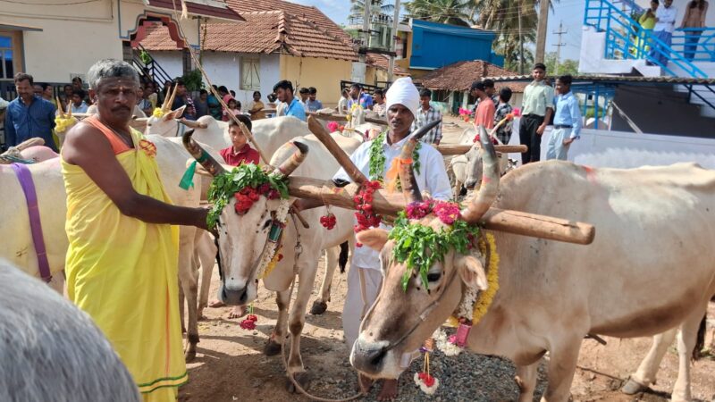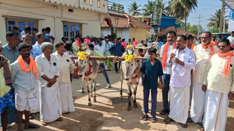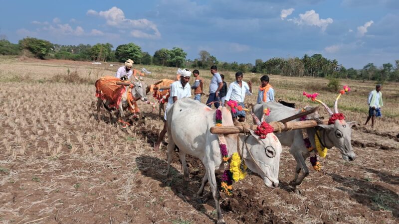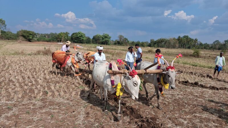 ಕುಶಾಲನಗರ, ಮಾ.19 NEWS DESK : ತೊರೆನೂರಿನಲ್ಲಿ ಯುಗಾದಿಯ ಅಂಗವಾಗಿ ಕೃಷಿಕರಿಂದ ಹೊನ್ನಾರು ಉತ್ಸವ ಸಂಭ್ರಮದಿಂದ ನಡೆಯಿತು. ಗ್ರಾಮದ ಬಸವೇಶ್ವರ ದೇವಾಲಯದ ಬಳಿ ಆಕಳುಗಳೊಂದಿಗೆ ಆಗಮಿಸಿದ ಅನ್ನದಾತರು ಗ್ರಾಮದ ದೈವ ಬಸವೇಶ್ವರ ಸನ್ನಿಧಿಯಲ್ಲಿ ಸಾಮೂಹಿಕವಾಗಿ ಪೂಜೆ ನೆರವೇರಿಸಿದರು. ಬಳಿಕ ಗ್ರಾಮದ ದೇವರ ಭೂಮಿಗೆ ತೆರಳಿ ಎತ್ತು ಹಾಗೂ ನೇಗಿಲು ಗಳಿಗೆ ಪೂಜೆ ಸಲ್ಲಿಸಿದ ನಂತರ ವರ್ಷದ ಮೊದಲ ಉಳುಮೆಯನ್ನು ಆರಂಭಿಸಿದರು. ಬಳಿಕ ಗ್ರಾಮದ ಮುಖ್ಯ ಬೀದಿಗಳಲ್ಲಿ ಹೊನ್ನಾರಿನೊಂದಿಗೆ ಮೆರವಣಿಗೆಯಲ್ಲಿ ಧಾವಿಸಿ ಗ್ರಾಮದ ಹೊರಬದಿಯ ಮುಖ್ಯ ರಸ್ತೆಯ ಬಸವೇಶ್ವರ ದೇವಾಲಯದಿಂದ ತಮ್ಮ ಮನೆಗಳಿಗೆ ಮರಳಿದರು. ಅಲಂಕೃತ ಉಳುಮೆಯ ಎತ್ತುಗಳ ಹೊನ್ನಾರು ಉತ್ಸವ ಕಣ್ತುಂಬಿಕೊಳ್ಳಲು ಗ್ರಾಮದ ಮಹಿಳೆಯರು ಮಕ್ಕಳಾದಿಯಾಗಿ ಇಡೀ ಗ್ರಾಮಸ್ಥರು ಒಂದೆಡೆ ಸೇರಿ ಸಂಭ್ರಮಿಸಿದರು. ದೇವಾಲಯ ಸಮಿತಿ ಅಧ್ಯಕ್ಷ ಟಿ.ಬಿ.ಜಗದೀಶ್, ಕಾರ್ಯದರ್ಶಿ ಟಿ.ಎಲ್.ಮಹೇಶ್, ಕಾರ್ಯಾಧ್ಯಕ್ಷ ಟಿ.ಜಿ.ಶಿವಣ್ಣ, ಗೌರವ ಅಧ್ಯಕ್ಷ ಟಿ.ಡಿ.ಈಶ್ವರ್, ಪ್ರಮುಖರಾದ ಟಿ.ಜಿ.ಪ್ರೇಮಕುಮಾರ್, ಚಿದಾನಂದ, ಗ್ರಾಪಂ ಮಾಜಿ ಸದಸ್ಯ ಟಿ.ಸಿ.ಶಿವಕುಮಾರ್, ಶಿಕ್ಷಕ ರಮೇಶ್, ಸಣ್ಣಪ್ಪ, ಸೋಮಣ್ಣ, ತ್ರಿಣೇಶ್, ಸುನಿಲ್, ಮೊದಲಾದವರಿದ್ದರು.