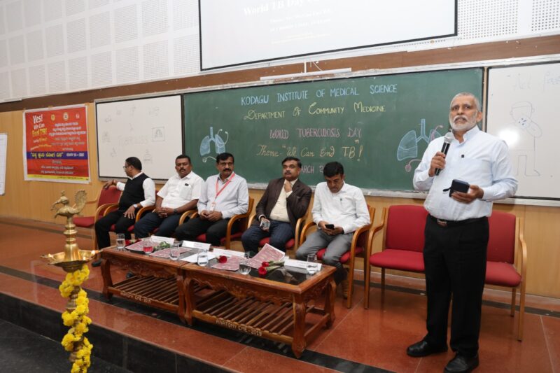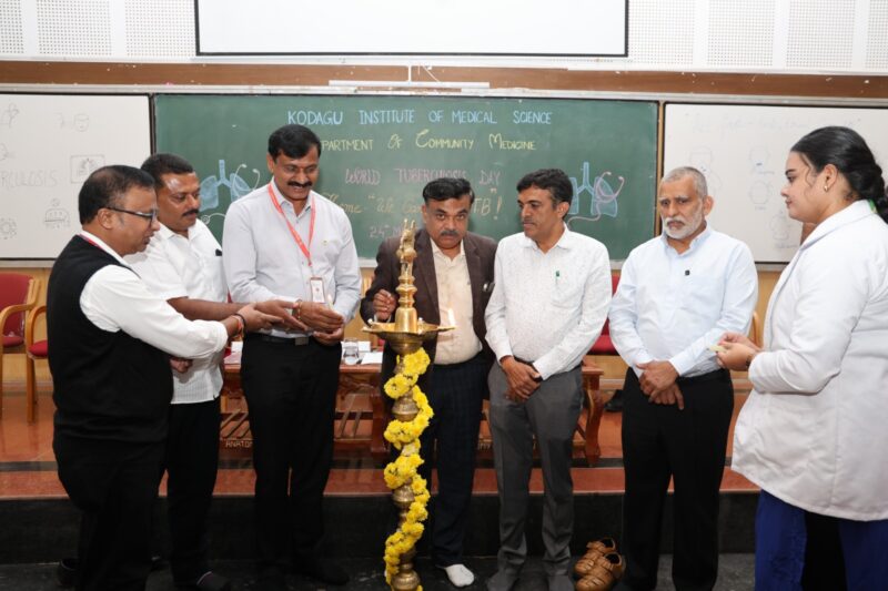 ನಗರದ ಕೊಡಗು ವೈದ್ಯಕೀಯ ವಿಜ್ಞಾನ ಸಂಸ್ಥೆಯ ಕಾಲೇಜು ಸಭಾಂಗಣದಲ್ಲಿ ಜಿಲ್ಲಾಡಳಿತ, ಕೊಡಗು ವೈದ್ಯಕೀಯ ವಿಜ್ಞಾನ ಸಂಸ್ಥೆ ಹಾಗೂ ಆರೋಗ್ಯ ಮತ್ತು ಕುಟುಂಬ ಕಲ್ಯಾಣ ಇಲಾಖೆ ವತಿಯಿಂದ ನಡೆದ ವಿಶ್ವ ಕ್ಷಯರೋಗ ನಿರ್ಮೂಲನಾ ದಿನಾಚರಣೆ ಕಾರ್ಯಕ್ರಮದಲ್ಲಿ ಪಾಲ್ಗೊಂಡು ಅವರು ಮಾತನಾಡಿದರು. ಮುಂದಿನ ಒಂದು ವರ್ಷದಲ್ಲಿ ಒಂದು ಲಕ್ಷ ಜನರಿಗೆ ನಲ್ವತ್ತಕ್ಕಿಂತ ಕಡಿಮೆ ಕ್ಷಯ ರೋಗಿಗಳು ಕಂಡುಬರಲಿದ್ದು, ಸಂಪೂರ್ಣವಾಗಿ ಕ್ಷಯಮುಕ್ತ ಜಿಲ್ಲೆಯನ್ನಾಗಿ ಮಾಡಲು ಎಲ್ಲರೂ ಸಂಕಲ್ಪ ಮಾಡಬೇಕು ಎಂದು ಅವರು ಕೋರಿದರು. ಕ್ಷಯರೋಗವನ್ನು ತಡೆಯುವಲ್ಲಿ 6 ರಿಂದ 7 ಲಕ್ಷ ರೂ. ವರೆಗೆ ಒಬ್ಬ ರೋಗಿಗೆ ಸರ್ಕಾರ ಭರಿಸಿ ಅತ್ಯುತ್ತಮ ಚಿಕಿತ್ಸೆ ನೀಡಲಿದೆ ಎಂದು ಡಾ.ಸನತ್ ಕುಮಾರ್ ಅವರು ಹೇಳಿದರು. ಮುಂದಿನ ಪೀಳಿಗೆ ಕ್ಷಯ ರೋಗದಿಂದ ಬಳಲಬಾರದು, ಮೊಬೈಲ್ ಎಕ್ಸೆರೆ ಮೂಲಕವೂ ಕ್ಷಯವನ್ನು ಪತ್ತೆ ಹಚ್ಚಲಾಗುತ್ತಿದೆ, ಕಫ ಪರೀಕ್ಷೆ ಮಾಡಲಾಗುತ್ತಿದೆ ಎಂದು ಜಿಲ್ಲಾ ಕ್ಷಯರೋಗ ನಿಯಂತ್ರಣಾಧಿಕಾರಿ ಅವರು ಹೇಳಿದರು. ‘ಜಿಲ್ಲೆಯ ಸೂಕ್ಷ್ಮ ಪ್ರದೇಶಗಳ ಮನೆ ಮನೆಗೆ ಭೇಟಿ ನೀಡಿ ಕ್ಷಯರೋಗ ಪತ್ತೆ ಹಚ್ಚುವ ಕಾರ್ಯಕ್ರಮವು ಮಂಗಳವಾರದಿಂದ 100 ದಿನಗಳ ಕಾಲ ಹಮ್ಮಿಕೊಳ್ಳಲಾಗಿದ್ದು, ಕ್ಷಯರೋಗ ಪತ್ತೆ ಹಚ್ಚುವುದರ ಜತೆಗೆ ಚಿಕಿತ್ಸೆಯನ್ನು ನೀಡಲಾಗುತ್ತದೆ ಎಂದು ಜಿಲ್ಲಾ ಕ್ಷಯರೋಗ ನಿಯಂತ್ರಣಾಧಿಕಾರಿ ಅವರು ತಿಳಿಸಿದರು.’ ಕೊಡಗು ವೈದ್ಯಕೀಯ ವಿಜ್ಞಾನ ಸಂಸ್ಥೆಯ ಸಮುದಾಯ ವೈದ್ಯಕೀಯ ವಿಭಾಗದ ಮುಖ್ಯಸ್ಥರಾದ ಡಾ.ರಾಮಚಂದ್ರ ಕಾಮತ್ ಅವರು ಮಾತನಾಡಿ, ಕ್ಷಯರೋಗವನ್ನು ನಿಯಂತ್ರಿಸುವಲ್ಲಿ ಹಾಗೆಯೇ ಮತ್ತೊಬ್ಬರಿಗೆ ಕ್ಷಯ ರೋಗ ಹರಡದಂತೆ ಮುನ್ನೆಚ್ಚರ ವಹಿಸುವಲ್ಲಿ ಮಾಹಿತಿ, ಶಿಕ್ಷಣ ನೀಡಲಾಗುತ್ತಿದೆ ಎಂದರು. ರಸಪ್ರಶ್ನೆ ಹಾಗೂ ರಂಗೋಲಿ ಸ್ಪರ್ಧೆ ಮೂಲಕ ಕ್ಷಯರೋಗ ನಿಯಂತ್ರಣ ಸಂಬಂಧ ಜಾಗೃತಿ ಮೂಡಿಸಲು ಪ್ರಯತ್ನಿಸಲಾಗಿದೆ ಎಂದು ಡಾ.ರಾಮಚಂದ್ರ ಕಾಮತ್ ಅವರು ವಿವರಿಸಿದರು. ಜಿಲ್ಲಾ ಆರೋಗ್ಯ ಮತ್ತು ಕುಟುಂಬ ಕಲ್ಯಾಣಾಧಿಕಾರಿ ಡಾ.ಸತೀಶ್ ಕುಮಾರ್ ಅವರು ಮಾತನಾಡಿ, ಜಿಲ್ಲೆಯಲ್ಲಿ ಕ್ಷಯರೋಗ ಪತ್ತೆಗೆ ನೂತನ ವಿಧಾನವನ್ನು ಅಳವಡಿಸಿಕೊಂಡು ಕ್ಷಯರೋಗ ನಿಯಂತ್ರಣಕ್ಕೆ ಶ್ರಮಿಸಲಾಗುತ್ತಿದೆ ಎಂದರು. ಕ್ಷಯರೋಗ ನಿರ್ಮೂಲನೆ ಮಾಡುವಲ್ಲಿ ಅನೇಕ ನೂತನ ರೂಪುರೇಷೆಗಳನ್ನು ಹಾಕಿಕೊಂಡು ಸಮರೋಪಾದಿಯಲ್ಲಿ ಕಾರ್ಯಗತ ಮಾಡಲಾಗುತ್ತಿದೆ ಎಂದು ಜಿಲ್ಲಾ ಆರೋಗ್ಯ ಮತ್ತು ಕುಟುಂಬ ಕಲ್ಯಾಣಾಧಿಕಾರಿ ಅವರು ನುಡಿದರು. ರೆಡ್ಕ್ರಾಸ್ ಸಂಸ್ಥೆ ಜಿಲ್ಲಾ ಸಭಾಪತಿ ರವೀಂದ್ರ ರೈ ಅವರು ಮಾತನಾಡಿ, ರೆಡ್ಕ್ರಾಸ್ ಸಂಸ್ಥೆಯು ಆರೋಗ್ಯ ಸೇರಿದಂತೆ ವಿವಿಧ ಸಾಮಾಜಿಕ ಚಟುವಟಿಕೆಯಲ್ಲಿ ತೊಡಗಿಸಿಕೊಂಡು ಜಾಗೃತಿ ಮೂಡಿಸುತ್ತಿದೆ ಎಂದು ಹೇಳಿದರು. ಯುದ್ಧ, ಕೋವಿಡ್ ಮತ್ತಿತರ ಸಂದರ್ಭದಲ್ಲಿ ನಾಗರಿಕರಿಗೆ ಸಾಧ್ಯವಾದಷ್ಟು ಸಹಕಾರ ನೀಡುತ್ತ ರೆಡ್ಕ್ರಾಸ್ ಸಂಸ್ಥೆ ಮುಂದೆ ಬಂದಿದೆ ಎಂದು ಅವರು ವಿವರಿಸಿದರು. ಕೊಡಗು ವೈದ್ಯಕೀಯ ವಿಜ್ಞಾನ ಸಂಸ್ಥೆಯ ನಿರ್ದೇಶಕರಾದ ಡಾ.ಲೋಕೇಶ್ ಅವರು ಮಾತನಾಡಿ, ಕ್ಷಯರೋಗ ಮುಕ್ತಗೊಳಿಸುವಲ್ಲಿ ಪ್ರತಿಯೊಬ್ಬರ ಜವಾಬ್ದಾರಿ ಹೆಚ್ಚಿನದ್ದಾಗಿದೆ. ಆರೋಗ್ಯಯುತ ಸಮಾಜ ನಿರ್ಮಾಣ ಮಾಡುವಲ್ಲಿ ತಂಡವಾಗಿ ಕೆಲಸ ಮಾಡಬೇಕಿದೆ ಎಂದು ಸಲಹೆ ಮಾಡಿದರು. ಕ್ಷಯರೋಗವು ಸಾಂಕ್ರಾಮಿಕ ರೋಗವಾಗಿದ್ದು, ಒಬ್ಬರಿಂದ ಮತ್ತೊಬ್ಬರಿಗೆ ಹರಡುವ ಸಾಧ್ಯತೆ ಇದೆ. ಆದ್ದರಿಂದ ಈ ಬಗ್ಗೆ