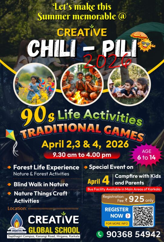 ಕಾರ್ಕಳ ಏ.31 NEWS DESK : ಪ್ರಸ್ತುತ ದಿನಮಾನದಲ್ಲಿ ರಜಾ ಸಮಯವನ್ನು ಮಕ್ಕಳು ಕೇವಲ ಮೊಬೈಲ್ ಗೆ ದಾಸರಾಗಿ ದೈಹಿಕ ಮತ್ತು ಮಾನಸಿಕ ಚಟುವಟಿಕೆಗಳಲ್ಲಿ ತಮ್ಮನ್ನು ತೊಡಗಿಸಿಕೊಳ್ಳದೆ ತಮ್ಮ ಅಮೂಲ್ಯ ಬಾಲ್ಯದ ಕ್ಷಣಗಳನ್ನು ವ್ಯರ್ಥವಾಗಿ ಕಳೆಯುತ್ತಿದ್ದಾರೆ. ಇದು ಪ್ರಸ್ತುತ ಹೆತ್ತ ತಂದೆ ತಾಯಿಯರಿಗೂ ಮಕ್ಕಳ ಈ ವರ್ತನೆ ನುಂಗಲಾರದ, ಅರಗಿಸಿಕೊಳ್ಳಲಾಗದ ನೋವಿನ ಕ್ಷಣಗಳು ಹೌದು. ಈ ನಿಟ್ಟಿನಲ್ಲಿ ಕ್ರಿಯೇಟಿವ್ ಶಿಕ್ಷಣ ಪ್ರತಿಷ್ಠಾನದ ವತಿಯಿಂದ ಆರಂಭಗೊಳ್ಳಲಿರುವ ಕ್ರಿಯೇಟಿವ್ ಗ್ಲೋಬಲ್ ಸ್ಕೂಲ್ ನಲ್ಲಿ ಮಕ್ಕಳು ತಮ್ಮ ರಜಾ ದಿನಗಳನ್ನು ಸದುಪಯೋಗ ಪಡಿಸಿಕೊಳ್ಳಬೇಕೆಂಬ ಧ್ಯೇಯವನ್ನು ಇಟ್ಟುಕೊಂಡು ಇದೇ ಬರುವ ಏ.2, 3 ಮತ್ತು 4 ರಂದು ಮಕ್ಕಳ ವಿಶೇಷ ಶಿಬಿರ ಚಿಲಿಪಿಲಿ-2026* ನಡೆಯಲಿದೆ. ಇಂದಿನ ಸ್ಕ್ರೀನ್ ಟೈಮ್ ಯುಗದಲ್ಲಿ ಮಕ್ಕಳು ತಮ್ಮ ಬಾಲ್ಯವನ್ನು ವ್ಯರ್ಥ ಮಾಡಿಕೊಳ್ಳುತ್ತಿರುವಾಗ ಈ ಶಿಬಿರವು ನೆನಪುಗಳನ್ನು ಸೃಷ್ಟಿಸಲು, ಸೃಜನಶೀಲತೆಯನ್ನು ಹೆಚ್ಚಿಸಲು, ಸ್ನೇಹಿತರನ್ನು ಮಾಡಿಕೊಳ್ಳಲು , ಹೊಸ ಆಸಕ್ತಿಗಳನ್ನು ಕಂಡುಕೊಳ್ಳಲು ಒಟ್ಟಾರೆಯಾಗಿ ಮಕ್ಕಳ ಸರ್ವತೋಮುಖ ಬೆಳವಣಿಗೆಯನ್ನು ಗಮನದಲ್ಲಿಟ್ಟುಕೊಂಡು ಈ ಶಿಬಿರವು ಮಕ್ಕಳಿಗೆ ಅತ್ಯಂತ ಮಹತ್ವವುಳ್ಳದ್ದಾಗಿದೆ. ಮಾತ್ರವಲ್ಲದೆ 90 ರ ದಶಕದ ಜೀವನ ಕೌಶಲ್ಯ ಚಟುವಟಿಕೆಗಳು ಮಕ್ಕಳಿಗೆ ಅಂಕಗಳ ಭಯವಿಲ್ಲದೆ ಹೊಸ ವಿಷಯಗಳನ್ನು ಪ್ರಯತ್ನಿಸಲು ಅವಕಾಶ ನೀಡುತ್ತದೆ. ಆದ್ದರಿಂದ ಪೋಷಕರು ತಮ್ಮ ಮಕ್ಕಳನ್ನು ಈ ಶಿಬಿರಕ್ಕೆ ನೋಂದಾಯಿಸಲು ಕೋರಲಾಗಿದೆ. ‘ಇದು ಕೇವಲ ಶಿಬಿರವಲ್ಲ ಮುಗ್ಧ ಮನಸುಗಳ ಸೃಜನಶೀಲತೆಯನ್ನು ಬೆಳೆಸುವ ಸುಂದರ ತೋಟ’ ಹೆಚ್ಚಿನ ಮಾಹಿತಿಗಾಗಿ ಸಂಪರ್ಕಿಸಿ: +919036854942