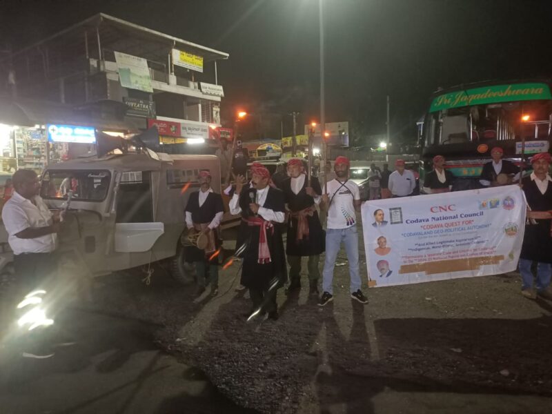 ಮಡಿಕೇರಿ NEWS DESK ಏ.15 : ಕೊಡವರ ಹೊಸ ವರ್ಷಾಚರಣೆ ಎಡ್ಮಾö್ಯರ್ 1 ರ ಪ್ರಯುಕ್ತ ಕೊಡವ ನ್ಯಾಷನಲ್ ಕೌನ್ಸಿಲ್ ಸಂಘಟನೆ ವತಿಯಿಂದ ಗೋಣಿಕೊಪ್ಪಲಿನಲ್ಲಿ ಪಂಜಿನ ಮೆರವಣಿಗೆ ಮತ್ತು ಮಾನವ ಸರಪಳಿ ನಡೆಯಿತು. ಕಾರ್ಯಕ್ರಮದ ನೇತೃತ್ವ ವಹಿಸಿದ್ದ ಸಿಎನ್‌ಸಿ ಅಧ್ಯಕ್ಷ ಎನ್.ಯು.ನಾಚಪ್ಪ ಅವರು ಕೊಡವರ ಹಕ್ಕುಗಳನ್ನು ಪ್ರತಿಪಾದಿಸಿದರು. 32ನೇ ವರ್ಷದ ಎಡ್ಮ್ಯಾರ್ 1 ರ ಪ್ರಯುಕ್ತ ಸಿಎನ್‌ಸಿಯಿಂದ ಗೋಣಿಕೊಪ್ಪಲಿನಲ್ಲಿ ಪಂಜಿನ ಮೆರವಣಿಗೆ ಮತ್ತು ಮಾನವ ಸರಪಳಿ 1 ನ್ನು ಆಚರಿಸಿದ ಸಿಎನ್‌ಸಿ ಸಂಘಟನೆಯ ಪ್ರಮುಖರು ಹಾಗೂ ಕೊಡವ, ಕೊಡವತಿಯರು ಕೊಡವ ಸಾಂಪ್ರದಾಯಿಕ ಉಡುಪಿನಲ್ಲಿ ದುಡಿಕೊಟ್ಟ್ ಪಾಟ್ ನೊಂದಿಗೆ ಗೋಣಿಕೊಪ್ಪಲಿನ ಆರ್‌ಎಂಸಿ ಯಾರ್ಡ್ ಬಳಿಯಿಂದ ಮುಖ್ಯ ಬೀದಿಯಲ್ಲಿ ಪೊಂಬೊಳ್ಕ್ ಮೆರವಣಿಗೆ ನಡೆಸಿದರು. ಮಾನವ ಸರಪಳಿ ರಚಿಸಿದ ನಂತರ ರಾಜ್ಯಾಂಗದತ್ತ ಹಕ್ಕೊತ್ತಾಯಗಳನ್ನು ಮಂಡಿಸಿ ಪ್ರತಿಜ್ಞಾ ವಿಧಿ ಸ್ವೀಕರಿಸಿದರು. ಈ ಸಂದರ್ಭ ಮಾತನಾಡಿದ ಎನ್.ಯು.ನಾಚಪ್ಪ ಅವರು ಕೊಡವರು ಪ್ರತ್ಯೇಕ ಮೂಲವಂಶಸ್ಥ ಜನಾಂಗವಾಗಿದ್ದು, ಸಂವಿಧಾನದ ಮೂಲಭೂತ ಹಕ್ಕುಗಳ 32ನೇ ವಿಧಿ ಪ್ರಕಾರ ಭಾರತ ಸರ್ಕಾರ ಸಂವಿಧಾನಿಕ ಪರಿಹಾರವಾಗಿ ಕೊಡವರ ಈ ಕೆಳಗಿನ ಹಕ್ಕುಗಳನ್ನು ಮಾನ್ಯ ಮಾಡಬೇಕೆಂದು ಒತ್ತಾಯಿಸಿದರು. ಸಂವಿಧಾನದ ಆರ್ಟಿಕಲ್ 244 ಮತ್ತು 371 ವಿಧಿ & 6ನೇ ಶೆಡ್ಯೂಲ್ ರಡಿಯಲ್ಲಿ ಕೊಡವ ಲ್ಯಾಂಡ್ ಭೂ-ರಾಜಕೀಯ ಸ್ವಾಯತ್ತತೆ ಮತ್ತು ಸ್ವಯಂ ನಿರ್ಣಯದ ಹಕ್ಕು ನೀಡಬೇಕು. ಸಂವಿಧಾನದ 340 ಮತ್ತು 342ನೇ ವಿಧಿಯಡಿಯಲ್ಲಿ ವರ್ಗೀಕರಿಸಿ ಅತಿಸೂಕ್ಷö್ಮ ಕೊಡವ ಜನಾಂಗದ ರಕ್ಷಣೆಯಾಗಬೇಕು. ಸಂವಿಧಾನದ 25, 26 ರ ವಿಧಿಯಡಿ ಕೊಡವರ ಧಾರ್ಮಿಕ ಸಂಸ್ಕಾರ ತೋಕ್ -ಗನ್ ನ್ನು ಸೇರ್ಪಡೆಗೊಳಿಸಿ ದೈನಂದಿನ, ಧಾರ್ಮಿಕ ಕ್ರಿಯೆಯಾಗಿ ಕೋವಿ ಹೊಂದುವ ಹಕ್ಕನ್ನು ಆಭಾದಿತಗೊಳಿಸಬೇಕು. ಕೊಡವ ಭಾಷೆಯನ್ನು ಸಂವಿಧಾನದ 8ನೇ ಶೆಡ್ಯೂಲ್ ಗೆ ಸೇರಿಸಬೇಕು ಮತ್ತು ಆದಿಮಸಂಜಾತ ಕೊಡವ ಜನಾಂಗೀಯ ಸಮುದಾಯಕ್ಕೆ “ಪ್ರಾಚೀನ ಆದಿಮಸಂಜಾತ ಏಕಜನಾಂಗೀಯ ಬುಡಕಟ್ಟು ಕುಲ” ಎಂದು ವರ್ಗಿಕರಿಸಬೇಕು. ವಿಶ್ವ ರಾಷ್ಟç ಸಂಸ್ಥೆಯ ಇಂಡಿಜಿನಸ್ ರೈಟ್ಸ್ ಪ್ರಕಾರ ಅಂತರಾಷ್ಟಿçÃಯ ಕಾನೂನಿನಡಿ ರಕ್ಷಣೆ ದೊರಕಬೇಕು. ಆದಿಮಸಂಜಾತ ಕೊಡವರು ಕಳೆದುಕೊಂಡ ಪೂರ್ವಾರ್ಜಿತ ಆಸ್ತಿಗಳನ್ನು ವಿಶ್ವ ರಾಷ್ಟç ಸಂಸ್ಥೆಯ ಇಂಡಿಜಿನಸ್ ಲ್ಯಾಂಡ್ ರಿಕ್ಲೆಮಿಂಗ್ ಕಾನೂನಿನಡಿ ಮರು ಪಡೆಯವಂತಾಗಬೇಕು. ಪಾರ್ಲಿಮೆಂಟ್ ಮತ್ತು ಅಸೆಂಬ್ಲಿಯಲ್ಲಿ ಕೊಡವ ಸಮುದಾಯಕ್ಕೆ ಸಿಕ್ಕಿಂನ ಬೌದ್ಧ ಬಿಕ್ಷುಗಳಿಗಾಗಿ “ಸಂಘ” ಮತಕ್ಷೇತ್ರವನ್ನ ಮೀಸಲಿಟ್ಟಂತೆ ಕೊಡವ ಸಮುದಾಯಕ್ಕೆ ವಿಶೇಷವಾದ ಅಮೂರ್ತ-ಅಗೋಚರ ಮತ ಕ್ಷೇತ್ರಗಳನ್ನು ರಚಿಸಬೇಕು.