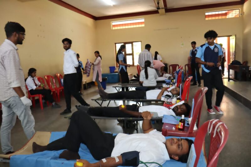 ವಿರಾಜಪೇಟೆ ಏ.17 NEWS DESK : ಪ್ರತಿಯೊಬ್ಬರು ರಕ್ತದಾನವನ್ನು ಸಾಮಾಜಿಕ ಜವಾಬ್ದಾರಿ ಎಂದು ಅರಿತುಕೊಳ್ಳಬೇಕು ಎಂದು ಮಡಿಕೇರಿಯ ಜಿಲ್ಲಾ ಆಸ್ಪತ್ರೆಯ ರಕ್ತ ನಿಧಿ ಕೇಂದ್ರದ ಮುಖ್ಯಸ್ಥರಾದ ಡಾ.ಕರುಂಬಯ್ಯ ಅಭಿಪ್ರಾಯಪಟ್ಟರು. ವಿರಾಜಪೇಟೆ ಪಟ್ಟಣದ ಸೆಂಟ್ ಆನ್ಸ್ ಪದವಿ ಕಾಲೇಜಿನಲ್ಲಿ ಕಾಲೇಜಿನ ಯುವ ರೆಡ್ ಕ್ರಾಸ್ ಘಟಕ, ಎನ್.ಎಸ್.ಎಸ್ ಘಟಕ, ರೆಡ್ ರಿಬ್ಬನ್ ಕ್ಲಬ್ ಹಾಗೂ ಮಡಿಕೇರಿಯ ಕೊಡಗು ವೈದ್ಯಕೀಯ ವಿಜ್ಞಾನಗಳ ಸಂಸ್ಥೆ ಜಿಲ್ಲಾಸ್ಪತ್ರೆ ಗಳ ಸಹಯೋಗದಲ್ಲಿ ಕಾಲೇಜಿನಲ್ಲಿ ಆಯೋಜಿಸಲಾಗಿದ್ದ ರಕ್ತದಾನ ಶಿಬಿರ ಹಾಗೂ ಉಚಿತ ಆರೋಗ್ಯ ತಪಾಸಣಾ ಶಿಬಿರವನ್ನು ಉದ್ಘಾಟಿಸಿ ಮಾತನಾಡಿದರು. ಸಾಮಾಜಿಕ ಜವಾಬ್ದಾರಿ ಹಾಗೂ ಆರೋಗ್ಯ ಜಾಗೃತಿ ಅತೀ ಮುಖ್ಯವಾಗಿದ್ದು, ವಿದ್ಯಾರ್ಥಿ ಹಂತದಿಂದಲೇ ಆರೋಗ್ಯವಂತ ಸಮಾಜವನ್ನು ನಿರ್ಮಿಸಲು ಯುವಜನರು ಪಣ ತೊಡಬೇಕು ಎಂದರು. ಇಂದು ವಿಶ್ವ ಹಿಮೋಫಿಲಿಯ ದಿನವಾಗಿದ್ದು, ಹಿಮೋಫಿಲಿಯ ಪೀಡಿತರಿಗೆ ಚುಚ್ಚು ಮದ್ದನ್ನು ನೀಡುವ ಕಾರ್ಯವು ನಡೆಯುತಿದೆ. ಜನರು ಆರೋಗ್ಯ ಜಾಗೃತಿಯನ್ನು ವಹಿಸಬೇಕು. ರಕ್ತದಾನವನ್ನು ಮಾಡುವುದರಿಂದ ಹೃದಯ ಸಂಬಂಧಿ ಕಾಯಿಲೆಗಳು, ರಕ್ತ ಡೊತ್ತಡ ಇನ್ನೂ ಮುಂತಾದ ಸಮಸ್ಯೆಗಳನ್ನು ತಡೆಗಟ್ಟು ಸಾಧ್ಯವಾಗುತ್ತದೆ ಎಂದು ಹೇಳಿ ರಕ್ತದಾನ ಮಾಡುವ ಹಂತಗಳು ಹಾಗೂ ಮಹತ್ವವನ್ನು ವಿವರಿಸಿದರು. ಇಂದು ವಿದ್ಯಾರ್ಥಿಗಳು ಹೆಚ್ಚಿನ ಸಂಖ್ಯೆಯಲ್ಲಿ ರಕ್ತದಾನ ಮಾಡಲು ಮುಂದಾಗಿರುವುದು ಅಭಿನಂದನಾರ್ಹ ಎಂದು ಹೇಳಿದರು. ಸೆಂಟ್ ಆನ್ಸ್ ಪದವಿ ಕಾಲೇಜಿನ ಪ್ರಾಂಶುಪಾಲೆ ತೃಪ್ತಿ ಬೋಪಣ್ಣ ರವರು ರಕ್ತದಾನದ ಮಹತ್ವದ ಕುರಿತು ಮಾತನಾಡಿದರು. ಕಾರ್ಯಕ್ರಮದ ಅಧ್ಯಕ್ಷತೆಯನ್ನು ವಹಿಸಿದ್ದ ಸೆಂಟ್ ಆನ್ಸ್ ಪದವಿ ಕಾಲೇಜಿನ ವ್ಯವಸ್ಥಾಪಕ ರೆ. ಫಾ.ಮದಲೈ ಮುತ್ತು ಮಾತನಾಡಿ, ರಕ್ತದಾನವು ಅತೀ ಶ್ರೇಷ್ಠ ದಾನವಾಗಿದ್ದು ಒಬ್ಬರ ಜೀವವನ್ನು ಉಳಿಸುವಲ್ಲಿ ಪ್ರಮುಖ ಪಾತ್ರವನ್ನು ವಹಿಸುತ್ತದೆ. ಪ್ರತಿಯೊಬ್ಬರು ತಮ್ಮ ಸಾಮಾಜಿಕ ಹೊಣೆ ಹಾಗೂ ಸಮಾಜದ ಕುರಿತು ಕಾಳಜಿಯನ್ನು ಹೊಂದುವುದರ ಮೂಲಕ ರಕ್ತದಾನವನ್ನು ಮಾಡಿ ಎಂದು ಹೇಳಿದರು. ನಮ್ಮ ವಿದ್ಯಾಸಂಸ್ಥೆಯಲ್ಲಿ ಪ್ರತಿವರ್ಷವೂ ರಕ್ತದಾನ ಹಾಗೂ ಉಚಿತ ಆರೋಗ್ಯ ತಪಾಸಣಾ ಶಿಬಿರವನ್ನು ಆಯೋಜಿಸಿಕೊಂಡು ಬರುತ್ತಿದ್ದು, ಮುಂದಿನ ದಿನಗಳಲ್ಲಿ ಸಾರ್ವಜನಿಕರನ್ನು ಒಳಗೊಂಡಂತೆ ರಕ್ತದಾನ ಶಿಬಿರವನ್ನು ಕಾಲೇಜಿನಲ್ಲಿ ಆಯೋಜಿಸಲಾಗುವುದು ಎಂದು ಹೇಳಿದರು. ಕಾಲೇಜಿನ ಎನ್.ಎಸ್.ಎಸ್ ಘಟಕದ ಅಧಿಕಾರಿ ಬಿ.ಎನ್.ಶಾಂತಿಭೂಷಣ್ ಕಾರ್ಯಕ್ರಮದ ಸ್ವರೂಪದ ಕುರಿತು ಪ್ರಾಸ್ತಾವಿಕವಾಗಿ ಮಾತನಾಡಿದರು. ಈ ಸಂದರ್ಭದಲ್ಲಿ ಕಾಲೇಜಿನ ಐಕ್ಯೂಎಸಿ ಸಂಚಾಲಕಿ ಹೇಮ ಬಿ.ಡಿ, ರೆಡ್ ಕ್ರಾಸ್ ಘಟಕದ ಅಧಿಕಾರಿ ವಿಲೀನ ಗೋನ್ಸಾಲ್ವೆಸ್, ಉಪನ್ಯಾಸಕರು, ಕಾಕೋಟುಪರಂಬು ಸರ್ಕಾರಿ ಆರೋಗ್ಯ ಕೇಂದ್ರದ ಸಿಬ್ಬಂದಿಗಳು, ಮಡಿಕೇರಿ ಜಿಲ್ಲಾಸ್ಪತ್ರೆಯ ಸಿಬ್ಬಂದಿಗಳು ಹಾಗೂ ವಿದ್ಯಾರ್ಥಿಗಳು ಉಪಸ್ಥಿತರಿದ್ದರು. ರೆಡ್ ಕ್ರಾಸ್ ಅಧಿಕಾರಿ ವಿಲೀನ ಸ್ವಾಗತಿಸಿ, ವಿದ್ಯಾರ್ಥಿನಿ ಪ್ರಕೃತಿ ನಿರೂಪಿಸಿ, ಅಮೃತ ರಾವ್ ವಂದಿಸಿದರು. :: ಯಶಸ್ವಿಯಾಗಿ ಜರುಗಿದ ರಕ್ತದಾನ ಶಿಬಿರ :: ರಕ್ತದಾನ ಹಾಗೂ ಆರೋಗ್ಯ ತಪಾಸಣಾ ಶಿಬಿರವು ಯಶಸ್ವಿಯಾಗಿ ಜರುಗಿತು. ಸೆಂಟ್ ಆನ್ಸ್ ಪದವಿ ಕಾಲೇಜಿನ 69 ವಿದ್ಯಾರ್ಥಿಗಳು ಅತೀ ಉತ್ಸಾಹದಿಂದ ರಕ್ತದಾನವನ್ನು ಮಾಡಿದರು.250 ಕ್ಕೂ ಅಧಿಕ ವಿದ್ಯಾರ್ಥಿಗಳು ಆರೋಗ್ಯ ತಪಾಸಣಾ ಶಿಬ