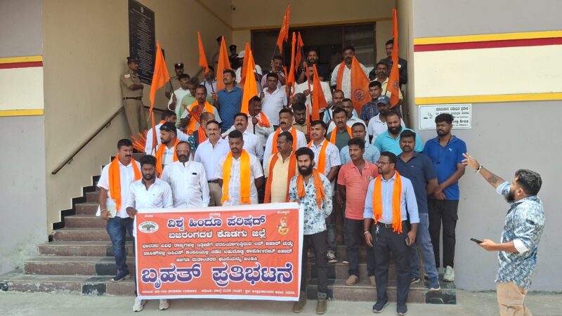 ಮಡಿಕೇರಿ ಏ.23 NEWS DESK : ದೇಶದ ವಿವಿಧ ರಾಜ್ಯಗಳಲ್ಲಿ ನಡೆಯುತ್ತಿರುವ ಮತಾಂತರ ಮತ್ತು ದೌರ್ಜನ್ಯ ಪ್ರಕರಣವನ್ನು ಖಂಡಿಸಿ ವಿಶ್ವ ಹಿಂದೂ ಪರಿಷತ್ ಹಾಗೂ ಬಜರಂಗದಳದ ಜಿಲ್ಲಾ ಘಟಕ ಮಡಿಕೇರಿಯಲ್ಲಿ ಪ್ರತಿಭಟನೆ ನಡೆಸಿತು. ಜಿಲ್ಲಾಧಿಕಾರಿ ಕಚೇರಿ ಎದುರು ಪ್ರತಿಭಟನೆ ನಡೆಸಿದ ಹಿಂದೂ ಸಂಘಟನೆಯ ಕಾರ್ಯಕರ್ತರು ಮತಾಂತರ, ಲವ್ ಜಿಹಾದ್, ಕಾರ್ಪೋರೇಟ್ ಜಿಹಾದ್, ಲ್ಯಾಂಡ್ ಜಿಹಾದ್, ಗೋ ಹತ್ಯೆ ವಿರುದ್ಧ ಸರಕಾರ ಕಠಿಣ ಕ್ರಮ ಕೈಗೊಳ್ಳಬೇಕು. ಸಂವಿಧಾನ ಬಾಹಿರವಾಗಿರುವ ಇಂತಹ ಘಟನೆಗಳ ಕುರಿತು ಉನ್ನತ ಮಟ್ಟದ ತನಿಖೆ ನಡೆಸಬೇಕು ಎಂದು ಪ್ರತಿಭಟನಾಕಾರರು ಆಗ್ರಹಿಸಿದರು. ಕೆಲವು ಜಿಮ್ ಗಳಲ್ಲಿ ಹಿಂದೂ ಹೆಣ್ಣು ಮಕ್ಕಳಿಗೆ ತರಬೇತಿ ನೀಡುವ ನೆಪದಲ್ಲಿ ಲೈಂಗಿಕ ಕಿರುಕುಳ ನೀಡಲಾಗುತ್ತಿದೆ. ಕೆಲವು ಘಟನೆಗಳನ್ನು ವಿಡಿಯೋ ಚಿತ್ರೀಕರಿಸಿ ಮತಾಂತರ, ಗೋಮಾಂಸ ಸೇವನೆ ಸಹಿತ ಭಯೋತ್ಪಾದಕ ಕೃತ್ಯಗಳಿಗೂ ಹಿಂದೂ ಹೆಣ್ಣು ಮಕ್ಕಳನ್ನು ಬಳಸಿಕೊಳ್ಳುವ ಪ್ರಯತ್ನ ನಡೆಸಲಾಗುತ್ತಿದೆ ಎಂದು ಪ್ರತಿಭಟನಾಕಾರರು ಆರೋಪಿಸಿದರು. ಪ್ರತಿಭಟನಾಕಾರರು ಮನವಿ ಪತ್ರವನ್ನು ಜಿಲ್ಲಾಡಳಿತದ ಮೂಲಕ ರಾಜ್ಯ ಮತ್ತು ಕೇಂದ್ರ ಸರಕಾರಗಳಿಗೆ ಸಲ್ಲಿಸಿದರು. ಜಿಲ್ಲಾ ಬಿಜೆಪಿ ಮಾಜಿ ಅಧ್ಯಕ್ಷ ಶಾಂತೆಯಂಡ ರವಿ ಕುಶಾಲಪ್ಪ, ಹಿಂದೂ ಸಂಘಟನೆಗಳ ಪ್ರಮುಖರಾದ ಪುದಿಯೊಕ್ಕಡ ರಮೇಶ್, ವಿನಯ್, ಚೇತನ್, ಗಣೇಶ್ ರೈ, ಸತ್ಯ ಕರ್ಕೆರ, ಬಿಜೆಪಿ ಪದಾಧಿಕಾರಿಗಳಾದ ಬಿ.ಕೆ.ಜಗದೀಶ್, ಮನು ಮಂಜುನಾಥ್, ಡೀನ್ ಬೋಪಣ್ಣ, ಪೂಣಚ್ಚ ಮತ್ತಿತರರು ಪ್ರತಿಭಟನೆಯಲ್ಲಿ ಪಾಲ್ಗೊಂಡಿದ್ದರು.
