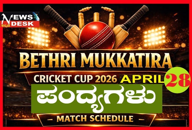 • *ಬೇತ್ರಿ ಮುಕ್ಕಾಟಿರ ಕಪ್ ಕ್ರಿಕೆಟ್ ನಮ್ಮೆ : ಏ.28 ರಂದು ನಡೆಯುವ ಪುರುಷರ ಕ್ವಾರ್ಟರ್ ಫೈನಲ್ಸ್*