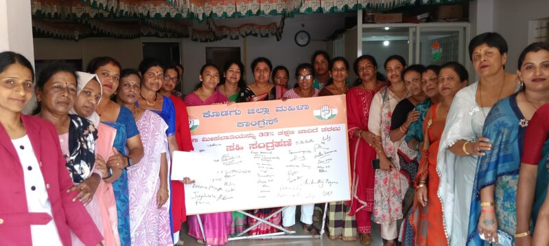 ಮಡಿಕೇರಿ ಏ.27 NEWS DESK : ಮಹಿಳಾ ಮೀಸಲಾತಿಯ “ನಾರಿ ಶಕ್ತಿ ವಂದನ್” ವಿಧೇಯಕವನ್ನು ಪ್ರಸ್ತುತ ಇರುವ ಲೋಕಸಭಾ ಸ್ಥಾನಗಳಿಗೆ ಅನ್ವಯಿಸಿ ಜಾರಿಗೊಳಿಸುವಂತೆ ಕೇಂದ್ರ ಸರ್ಕಾರವನ್ನು ಆಗ್ರಹಿಸುವ ಸಹಿ ಅಭಿಯಾನಕ್ಕೆ ನಗರದ ಜಿಲ್ಲಾ ಕಾಂಗ್ರೆಸ್ ಕಚೇರಿಯಲ್ಲಿ ಚಾಲನೆ ನೀಡಲಾಯಿತು. ಕೊಡಗು ಜಿಲ್ಲಾ ಮಹಿಳಾ ಕಾಂಗ್ರೆಸ್ ಅಧ್ಯಕ್ಷೆ ಪುಷ್ಪಲತಾ ಅವರು, ಜಿಲ್ಲಾ ಕಾಂಗ್ರೆಸ್ ಕಚೇರಿಯಲ್ಲಿ ಆಯೋಜಿತ ಸರಳ ಕಾರ್ಯಕ್ರಮದಲ್ಲಿ, ಬೋರ್ಡ್ನಲ್ಲಿ ಸಹಿ ಮಾಡುವ ಮೂಲಕ ಅಭಿüಯಾನಕ್ಕೆ ಚಾಲನೆಯನ್ನಿತ್ತರು. ಕೇಂದ್ರದ ಮೋದಿ ನೇತೃತ್ವದ ಎನ್ಡಿಎ ಸರ್ಕಾರವು ಮಹಿಳೆಯರಿಗೆ ಮೀಸಲಾತಿ ನೀಡುವ ವಿಧೇಯಕದೊಂದಿಗೆ ಕ್ಷೇತ್ರ ಪುನರ್ವಿಂಗಡಣೆಯನ್ನು ಸೇರ್ಪಡೆಮಾಡಿರುವುದನ್ನು ವಿರೋಧಿಸಿದ ಜಿಲ್ಲಾ ಮಹಿಳಾ ಕಾಂಗ್ರೆಸ್ ಅಧ್ಯಕ್ಷೆ ಪುಷ್ಪಲತಾ, ಪ್ರಸ್ತುತ ಇರುವ 543 ಲೋಕಸಭಾ ಸ್ಥಾನಗಳಿಗೆ ಸಂಬಂಧಿಸಿದಂತೆ ಮಹಿಳಾ ಮೀಸಲಾತಿಯನ್ನು ಅನ್ವಯಿಸಿ ಜಾರಿಗೆ ತರುವಂತೆ ಕೇಂದ್ರವನ್ನು ಒತ್ತಾಯಿಸಿದರು. ಸಹಿ ಅಭಿಯಾನದಲ್ಲಿ ಮಹಿಳಾ ಕಾಂಗ್ರೆಸ್ ಜಿಲ್ಲಾ ಉಪಾಧ್ಯಕ್ಷರಾದ ಶೀಲಾ ಡಿಸೋಜ, ಮಹಿಳಾ ಕಾಂಗ್ರೆಸ್ ಸದಸ್ಯರು ಹಾಗೂ ಜಿಪಂ ಮಾಜಿ ಸದಸ್ಯರಾದ ಸುನೀತ, ಮಹಿಳಾ ಕಾಂಗ್ರೆಸ್ ಜಿಲ್ಲಾ ಪ್ರಧಾನ ಕಾರ್ಯದರ್ಶಿ ರುಬೀನಾ ಎಂ.ಎ., ಮಡಿಕೇರಿ ತಾಲ್ಲೂಕು ಗ್ಯಾರಂಟಿ ಅನುಷ್ಟಾನ ಸಮಿತಿ ಸದಸ್ಯರಾದ ಹೊಟ್ಟೆಯಂಡ ಫ್ಯಾನ್ಸಿ ಬೆಳ್ಯಪ್ಪ, ಕುಶಾಲನಗರ ವಲಯ ಅಧ್ಯಕ್ಷರಾದ ಕೆ.ಆರ್.ಸವಿತಾ, ಪ್ರಮುಖರಾದ ಮುಕ್ಕಾಟಿರ ಕಾವೇರಮ್ಮ, ಲೀಲಾ ಶೇಷಮ್ಮ ಸೇರಿದಮತೆ ಹಲ ಪ್ರಮುಖರು ಪಾಲ್ಗೊಂಡಿದ್ದರು.